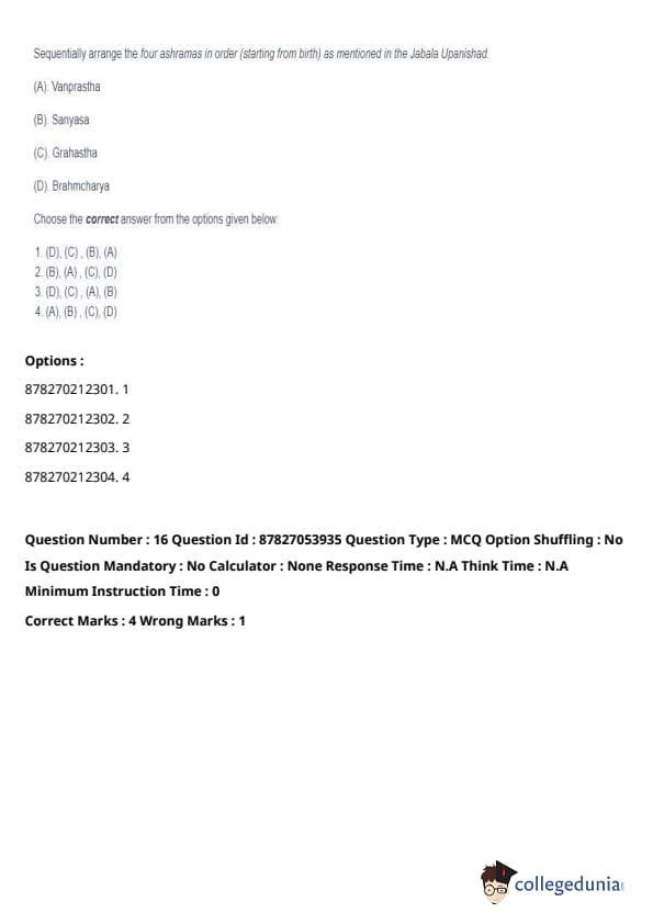 Sequentially arrange the four ashramas in order (starting from birth) as mentioned in the Jabala Upanishad: