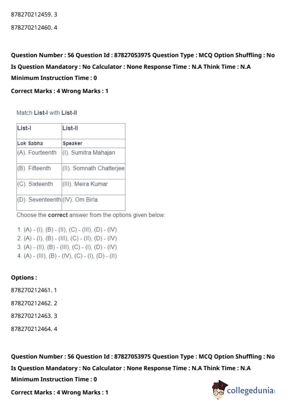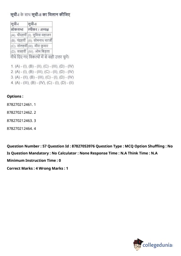 | List - I (Lok Sabha) | List - II (Speaker) |