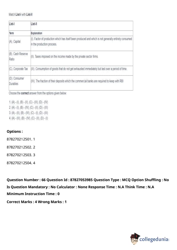 | (D) Consumer Durables | (IV) The fraction of their deposits which the commercial banks are required to keep with RBI. |