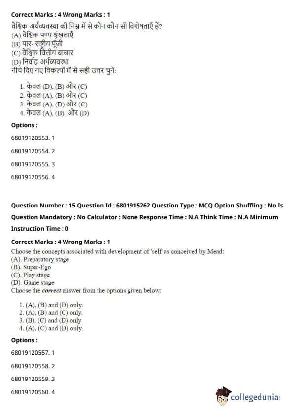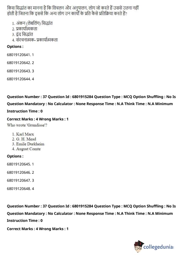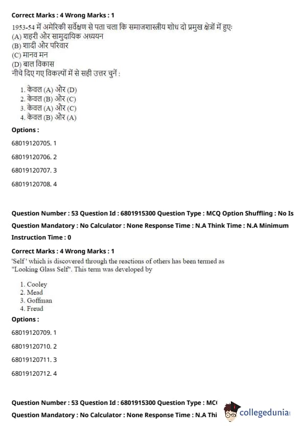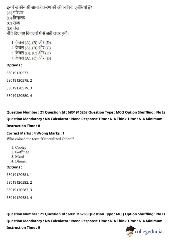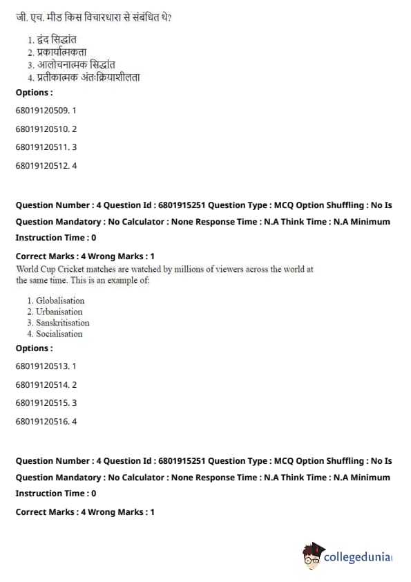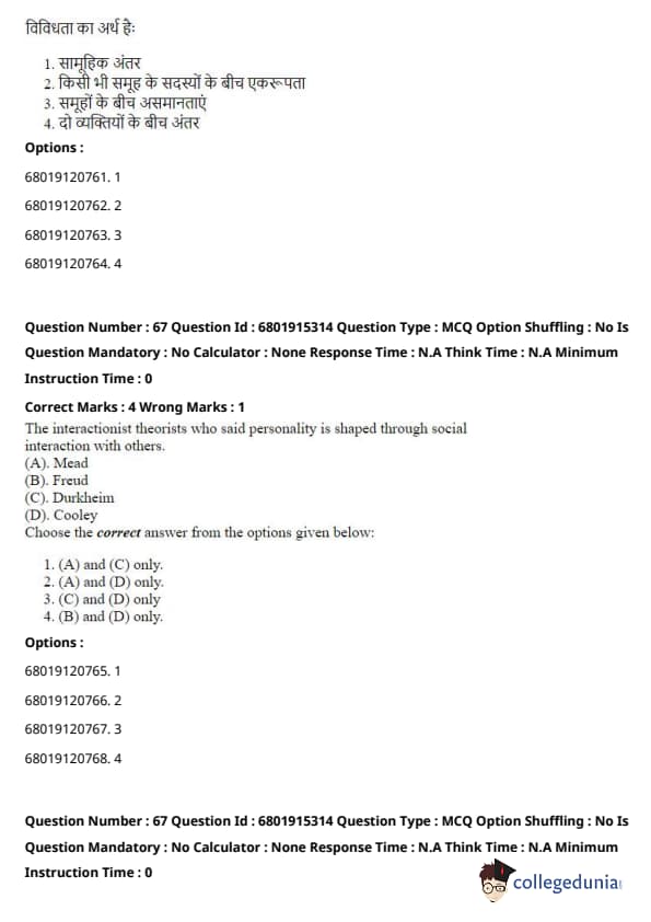Step 3: Mead’s ideas contrast with those in Conflict Theory (which focuses on power struggles and inequalities in society), Functionalism (which examines the stability and functioning of society as a whole), and Critical Theory (which critiques societal structures from a Marxist perspective). Mead’s work is firmly within the Symbolic Interactionism school of thought, which focuses on the roles of social interaction and symbols in society. Quick Tip: Symbolic Interactionism emphasizes the importance of symbols and face-to-face interactions in shaping individual identities and societal norms. It's central to understanding how social meanings are created and transmitted.
