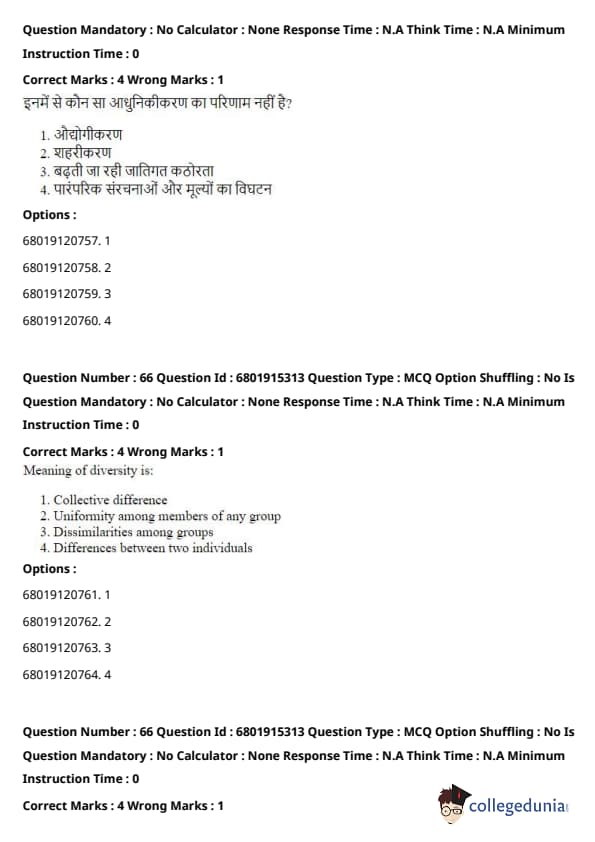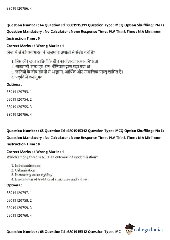 However, increasing caste rigidity is typically contrary to the process of modernisation. In many cases, modernisation and urbanisation result in greater social mobility and the weakening of traditional caste-based structures. Quick Tip: Modernisation often involves changes that challenge traditional hierarchies, encouraging more equal opportunities and social fluidity.