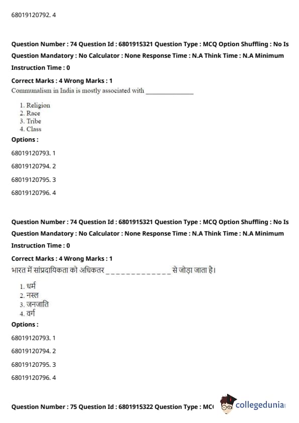 Communalism in India refers primarily to religious divisions and conflicts. It is associated with the belief that different religious communities, particularly Hindus and Muslims, should be kept separate or that one community is superior to the other. This ideological stance often leads to communal violence and a breakdown of social harmony. Quick Tip: Understanding communalism is crucial for addressing religious tensions and fostering social unity in multi-religious societies.