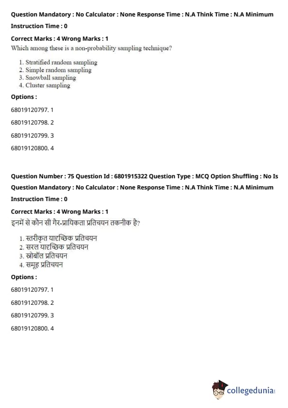 - Generalisation can be drawn based on small proportion of the population (Option 4): This is the fundamental principle behind sampling — generalising results from the sample to the broader population. Quick Tip: Sampling techniques are used to reduce costs and time when studying large populations. The key is ensuring the sample is representative of the population.
