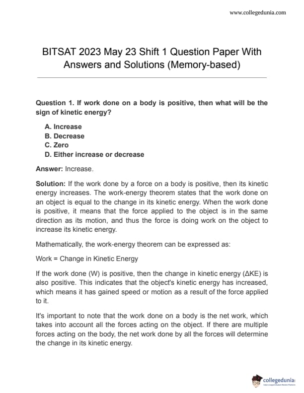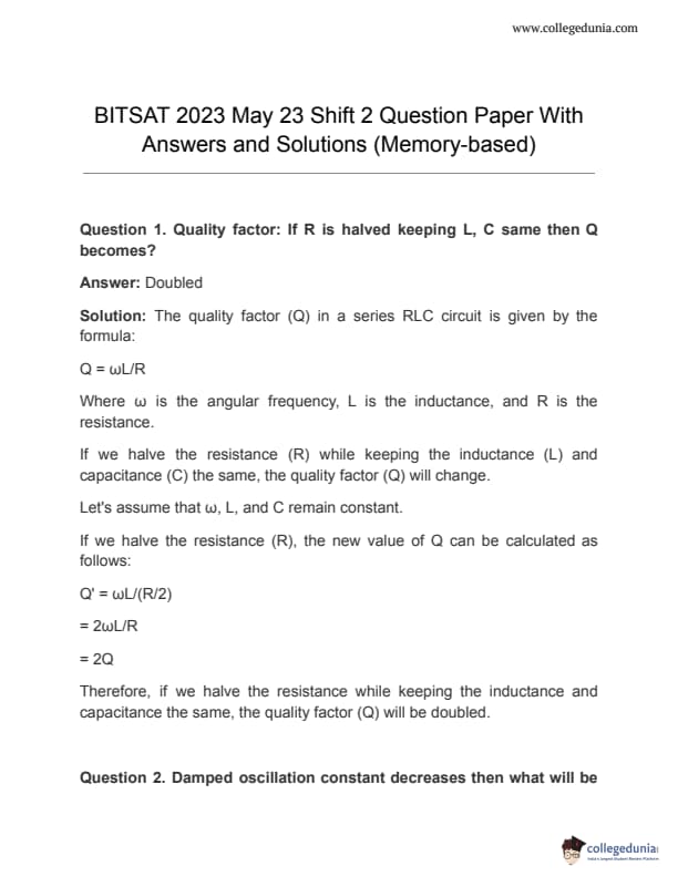 | BITSAT 2023 Question Paper May 23 Shift 1 | Download PDF | Download PDF |