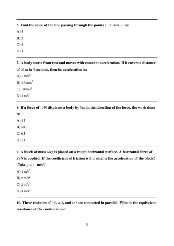 | Marking Scheme | +3 for each correct answer, -1 for each incorrect answer |