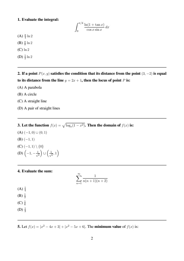 | Mathematics | Moderate to Tough |