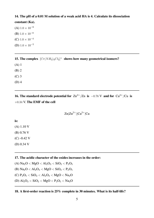 | Chemistry | Easy to Moderate |
