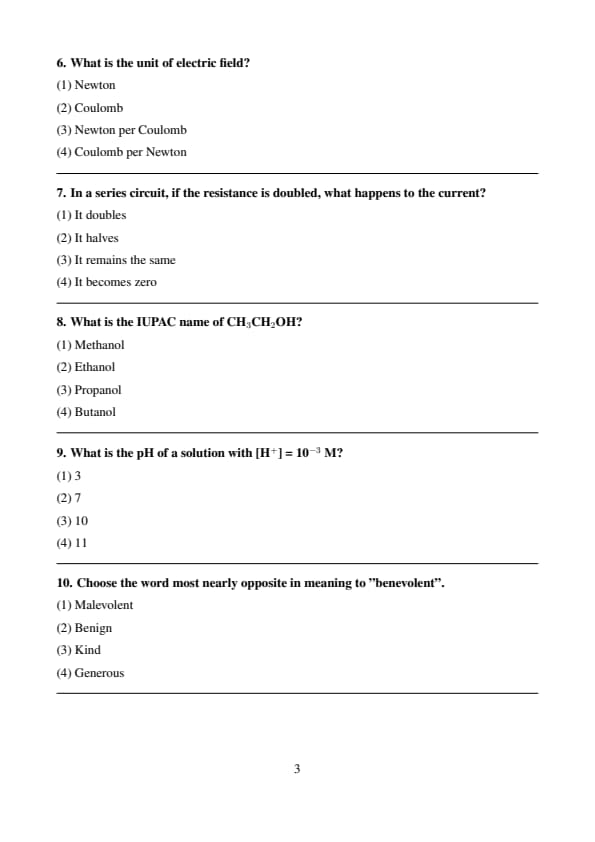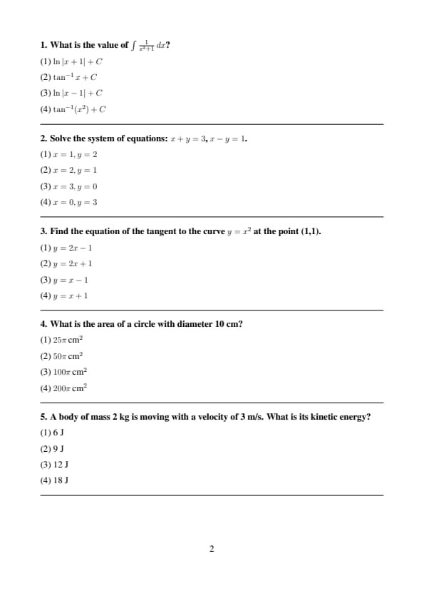 | Physics | Moderate | A mix of theory and numericals from topics like mechanics and optics |