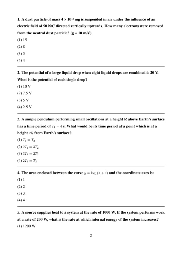 A dust particle of mass 4 × 10⁻¹² mg is suspended in air under the influence of an electric field of 50 N/C directed vertically upwards. How many electrons were removed from the neutral dust particle? (g = 10 m/s²)
