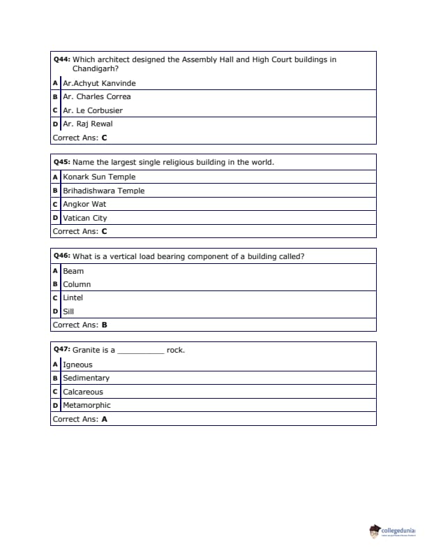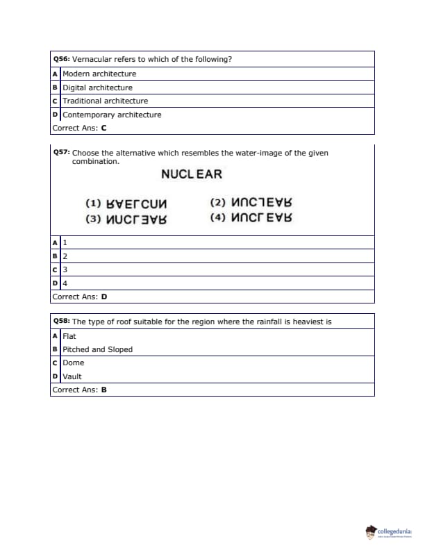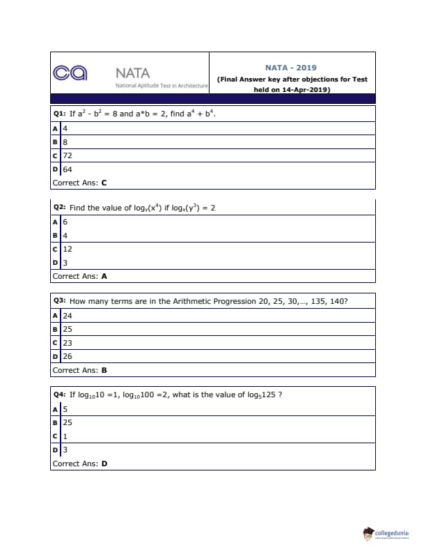 NATA 2019 Aptitude & Maths Question paper with answer key pdf conducted on April 14, 2019 is available for download. The exam was successfully organized by Council of Architecture (COA). The question paper comprised a total of 60 questions divided among two sections.