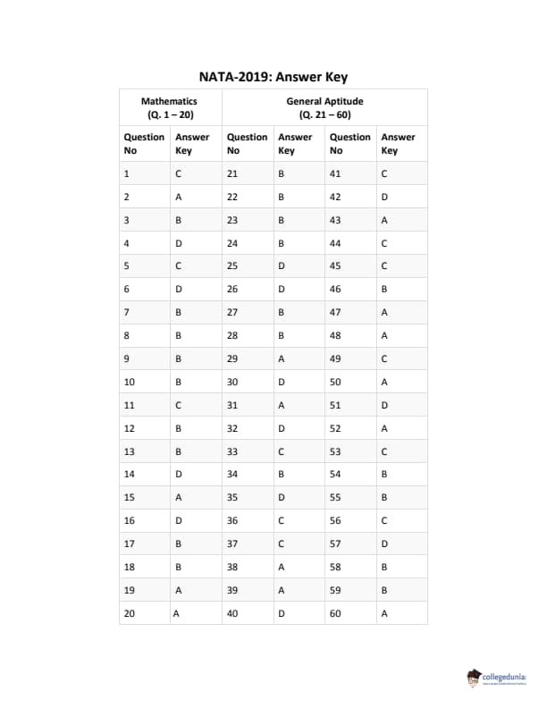 | NATA 2019 Aptitude & Maths Question Paper PDF | NATA 2019 Aptitude & Maths Answer Key PDF |