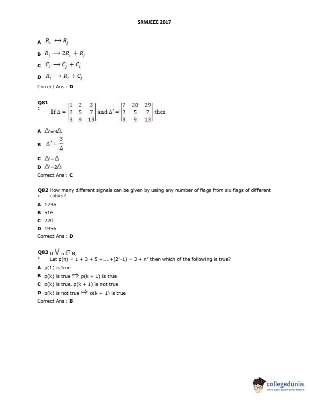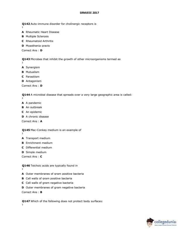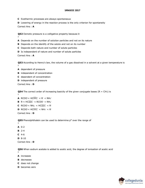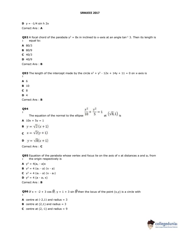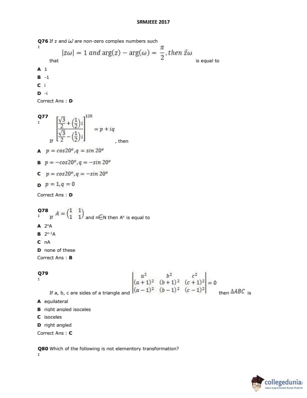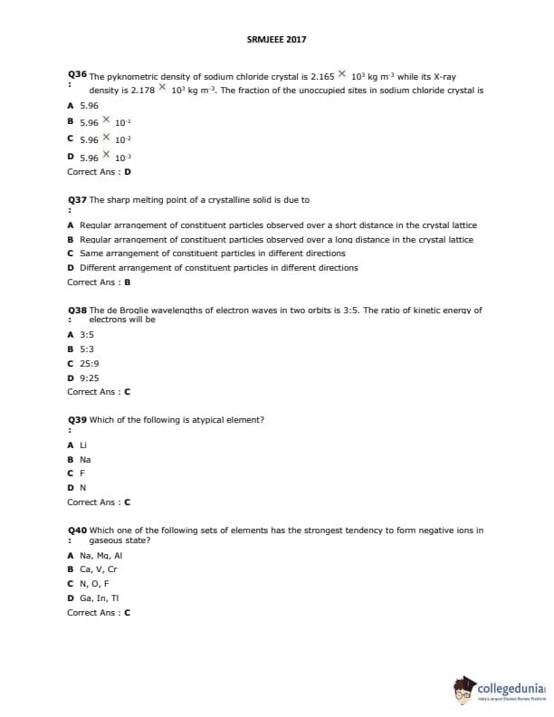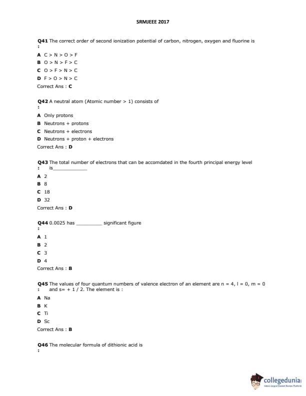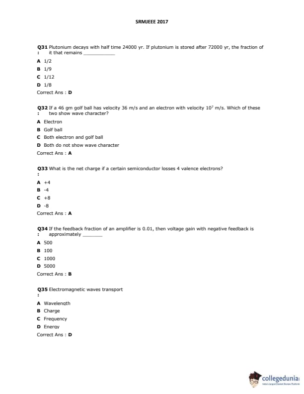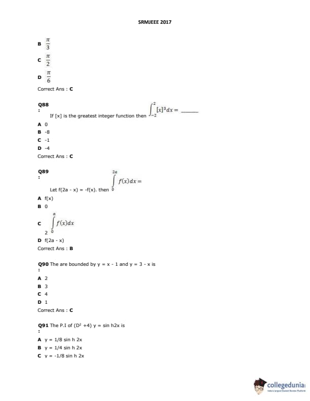 SRMJEEE 2017 Question paper with answer key pdf is available for download. The exam was successfully organized by SRM University. The question paper comprised a total of 155 questions.