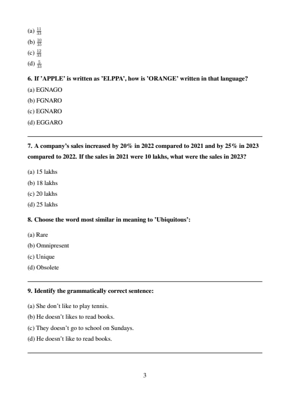 | Section | Total Questions | Marks per Question | Negative Marking | Total Marks |
