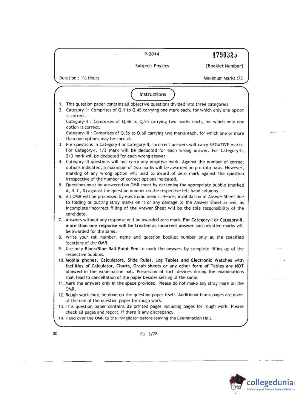 | WBJEE 2014 Physics Question Paper PDF | WBJEE 2014 Physics Answer Key PDF |