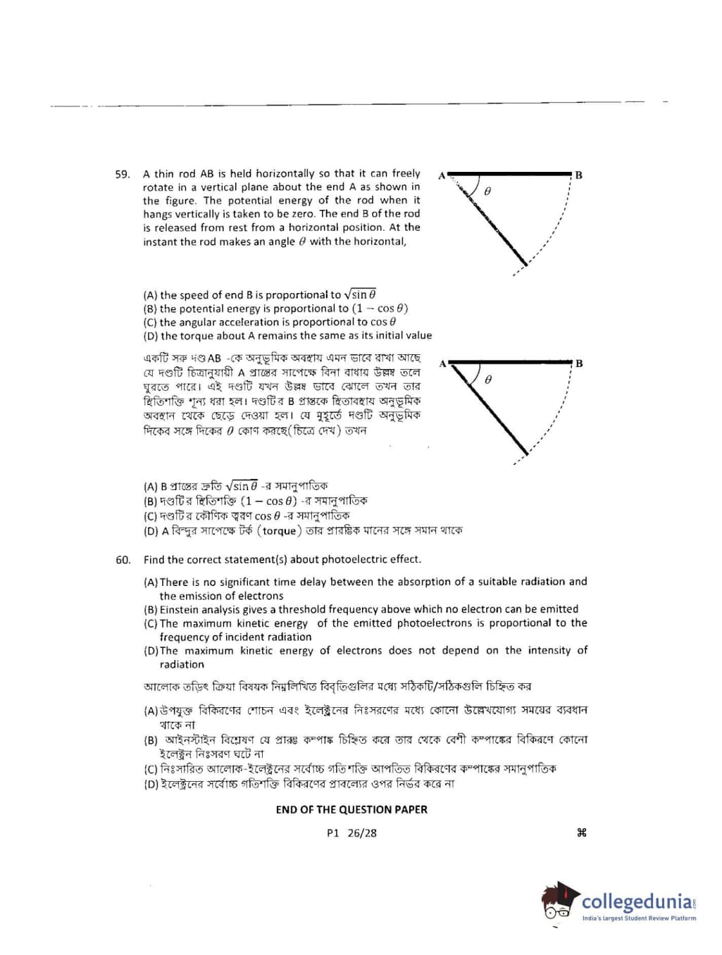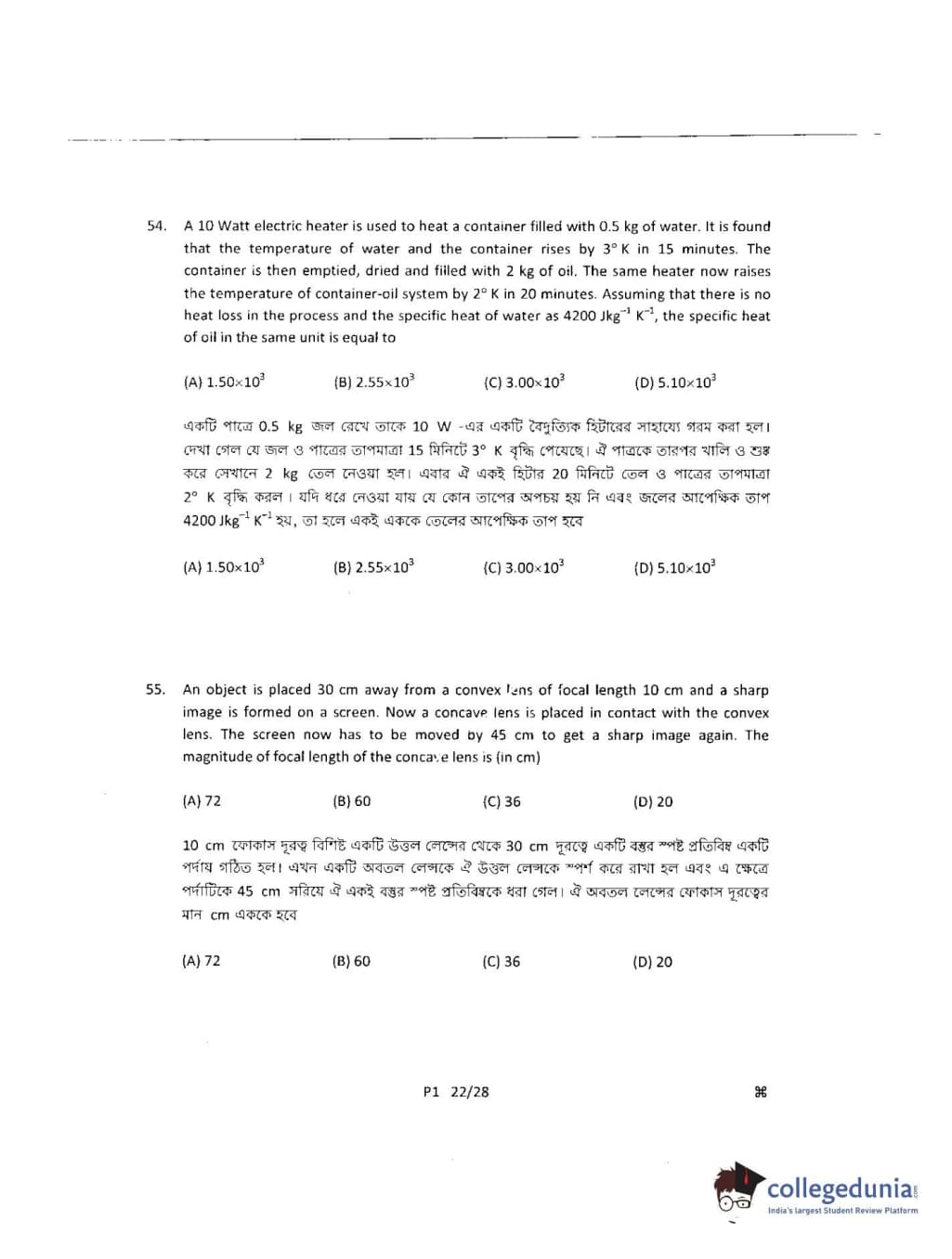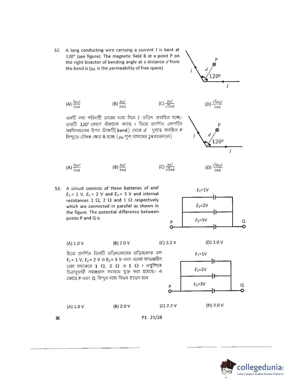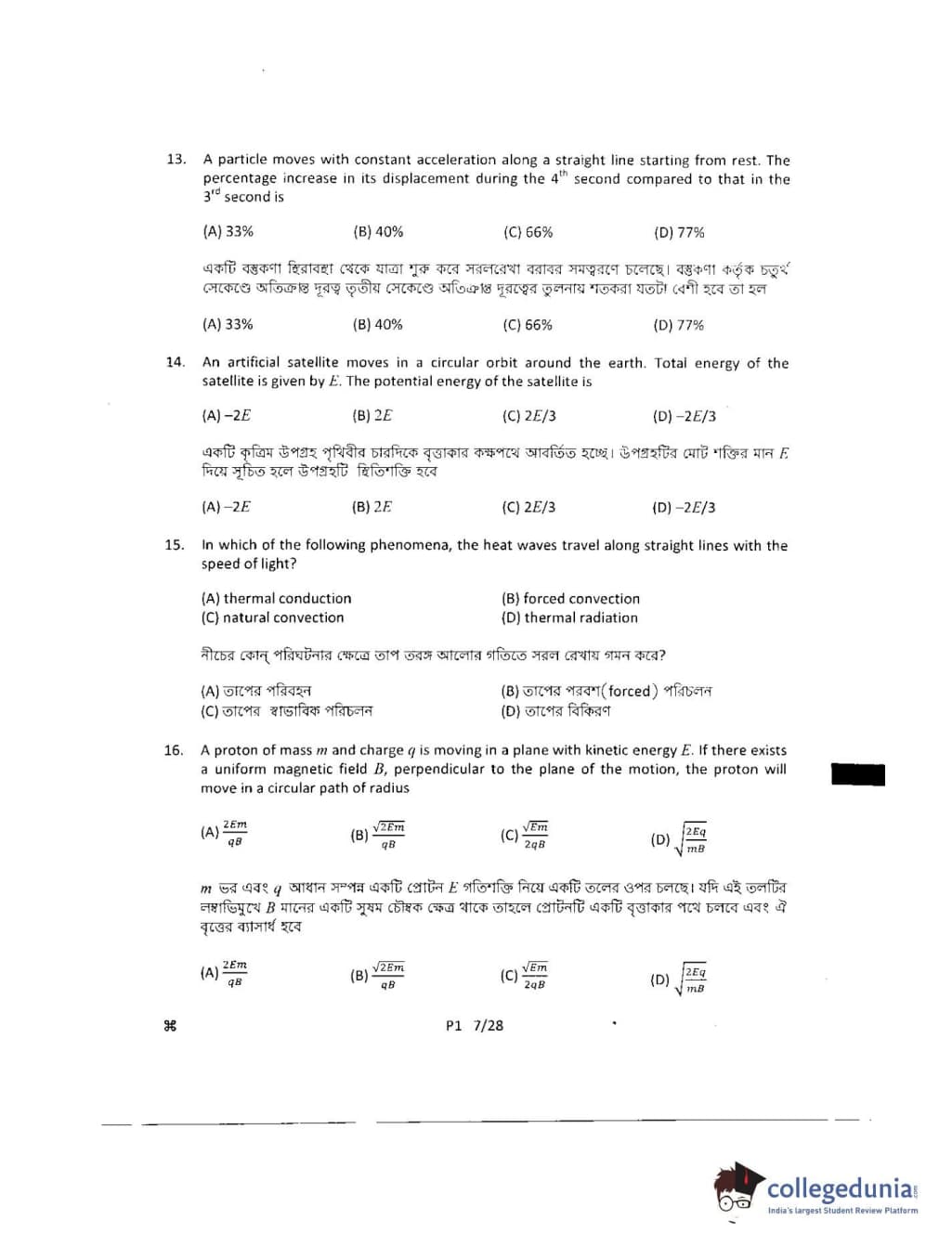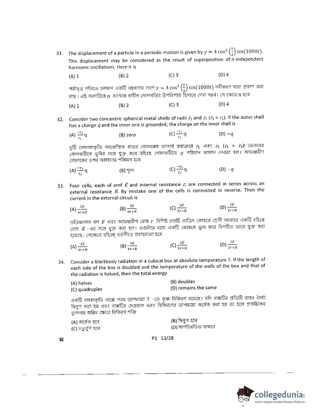 WBJEE 2014 Physics Question Paper with Answer Key PDF for Afternoon Session