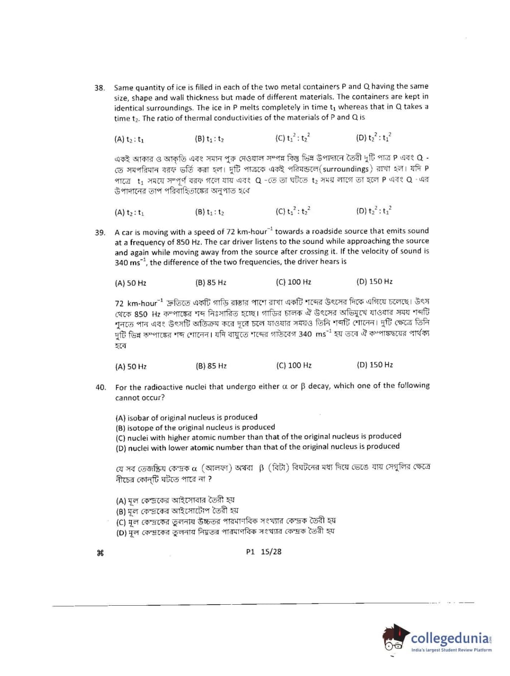 Collegedunia has provided WBJEE Previous Year Question paper pdf with answer key in the links given below:
