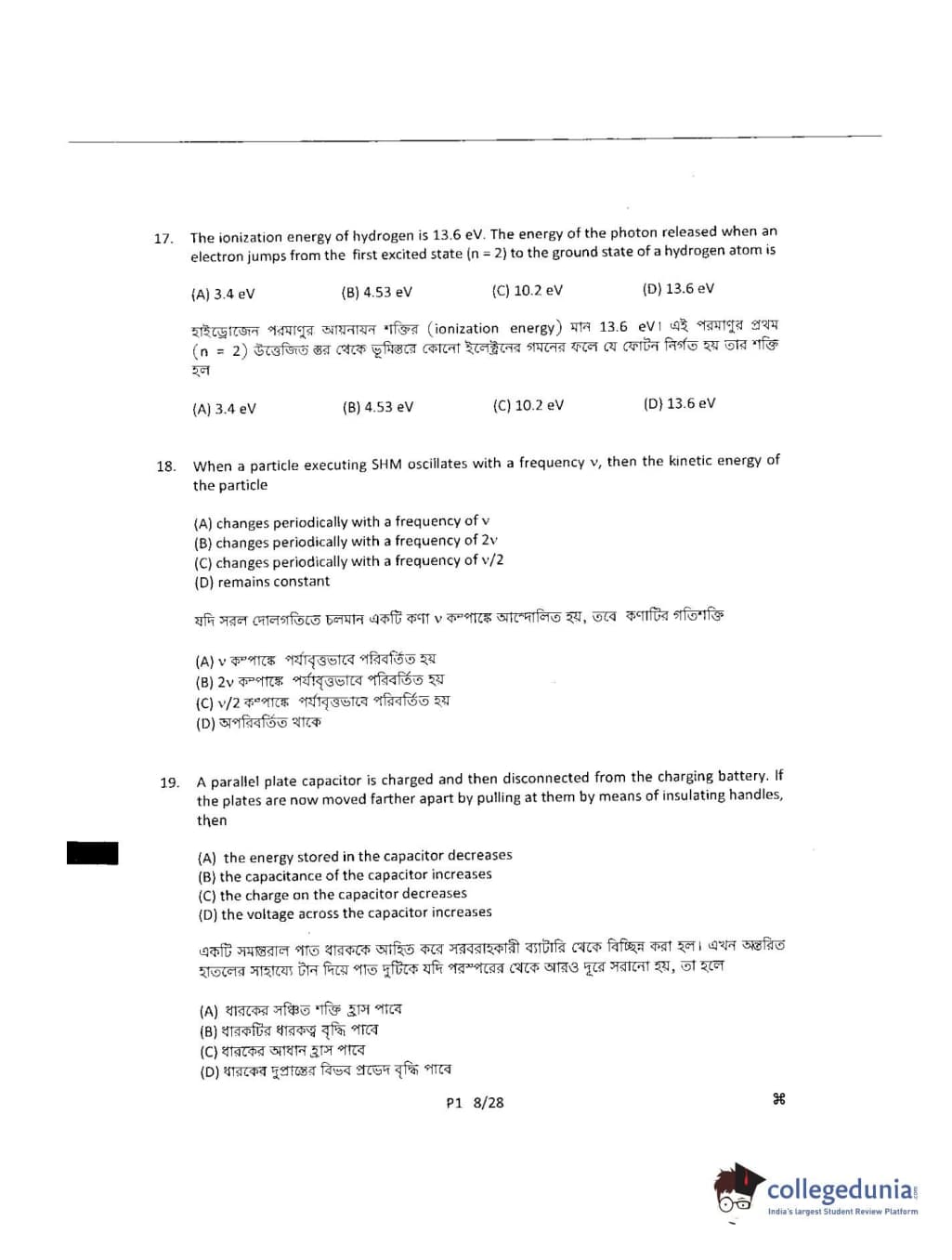 | WBJEE 2019 Question Paper | WBJEE 2018 Question Paper | WBJEE 2017 Question Paper |
