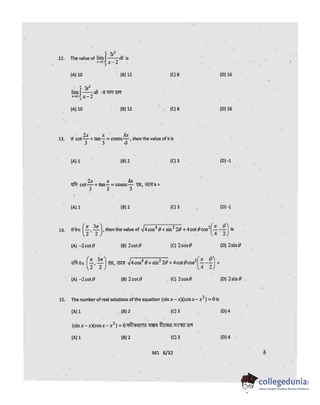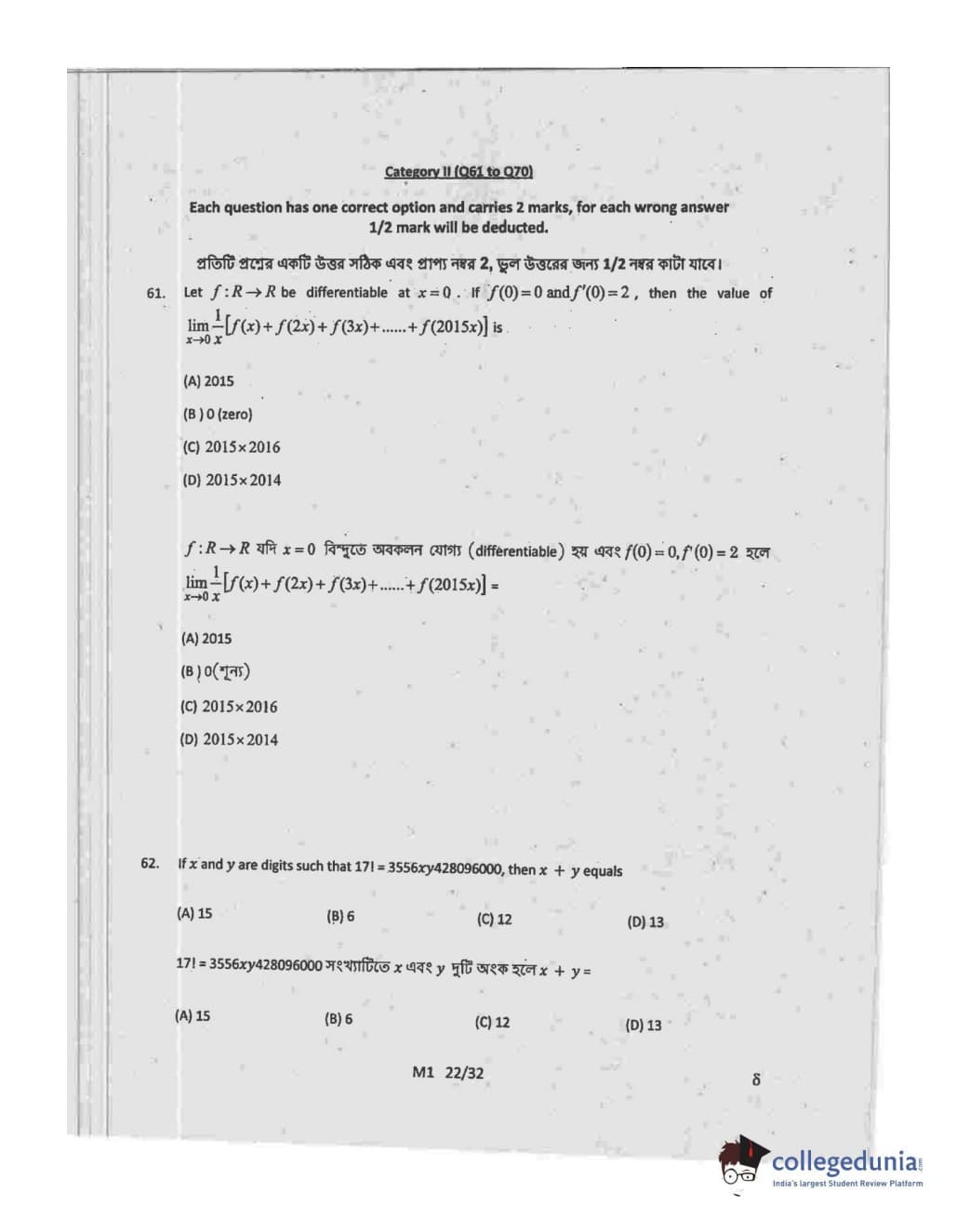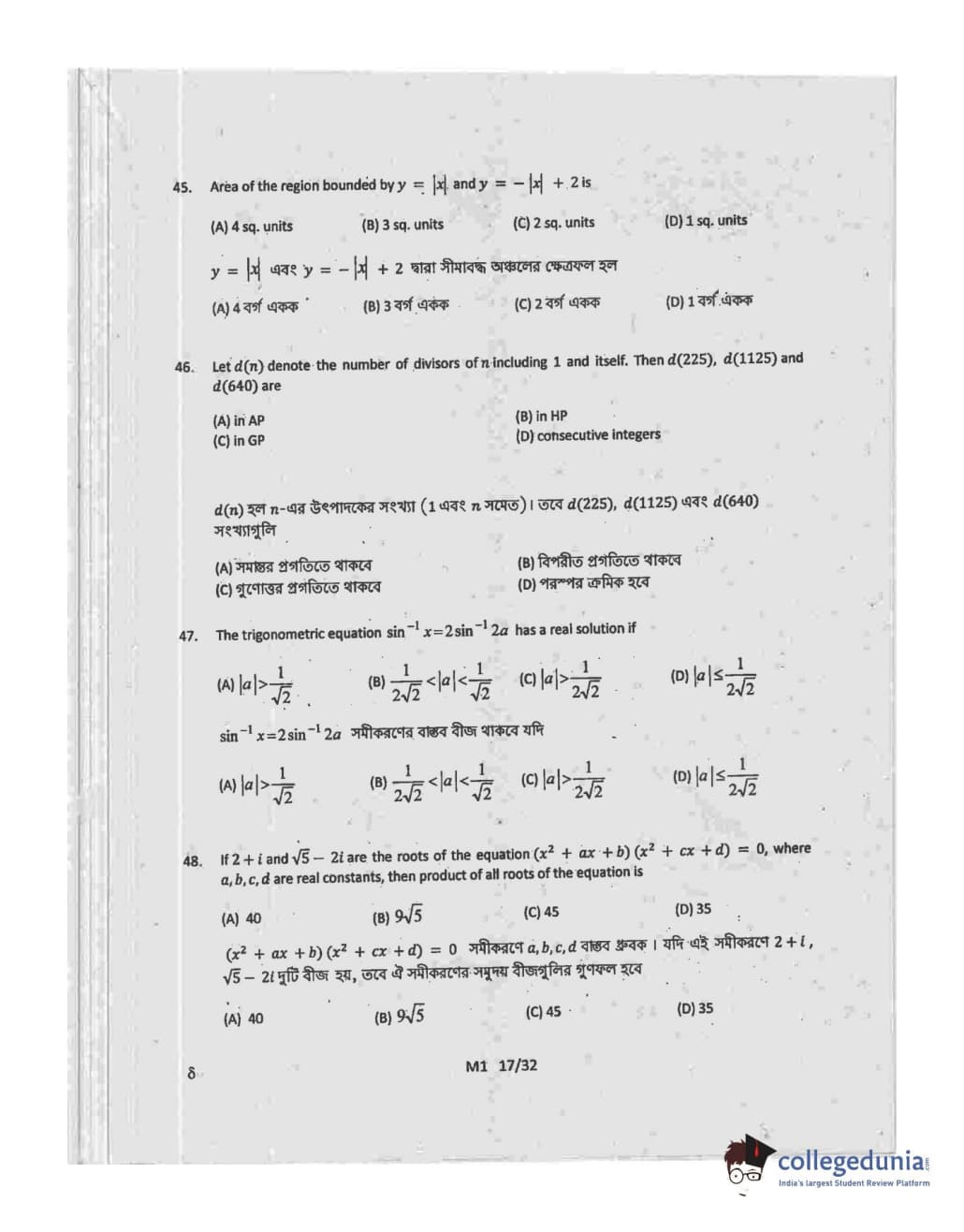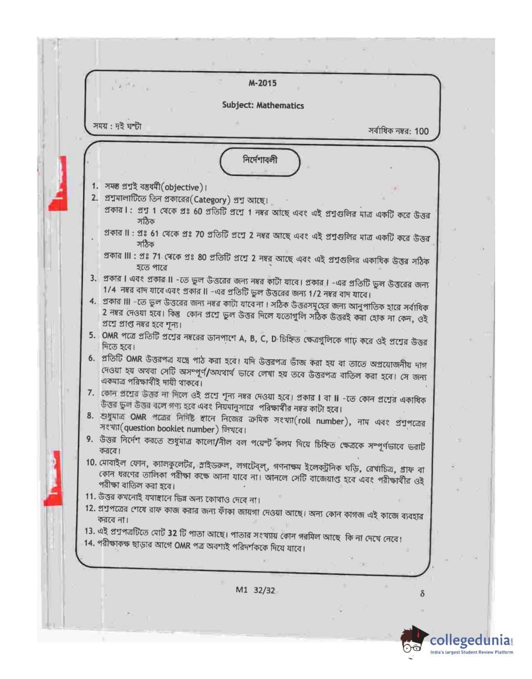 WBJEE 2015 Mathematics Question paper with answer key pdf conducted on May-06 in Forenoon Session is available for download. The exam was successfully organized by West Bengal Joint Entrance Examination Board (WBJEEB). The question paper comprised a total of 75 questions.