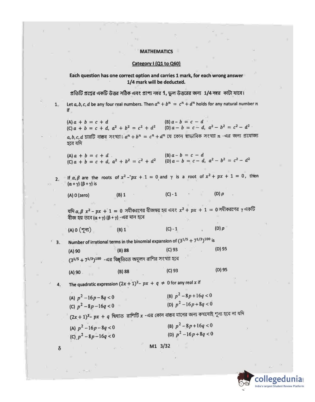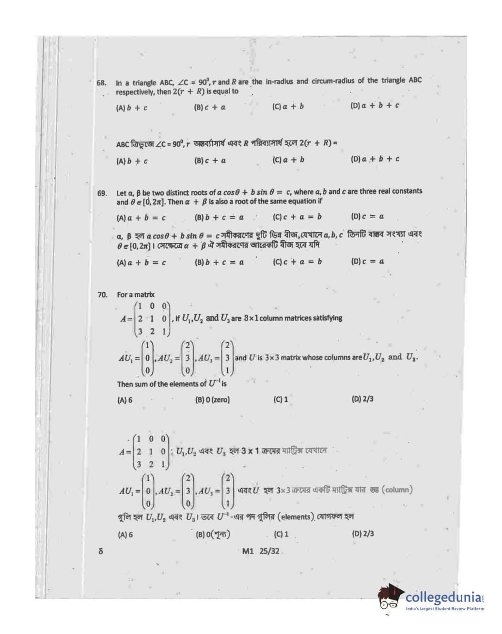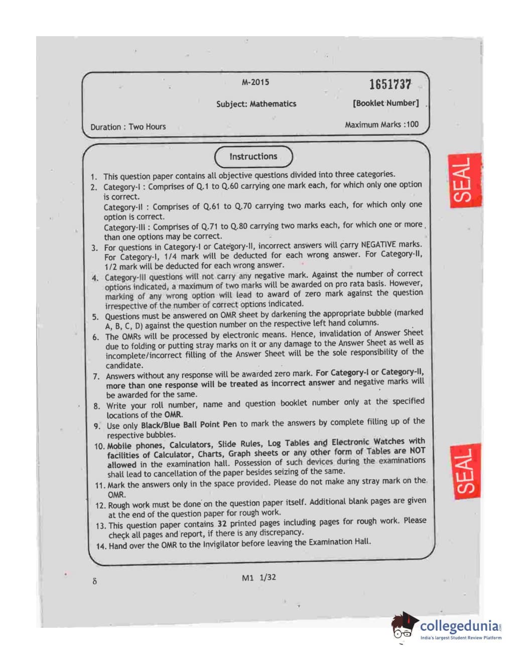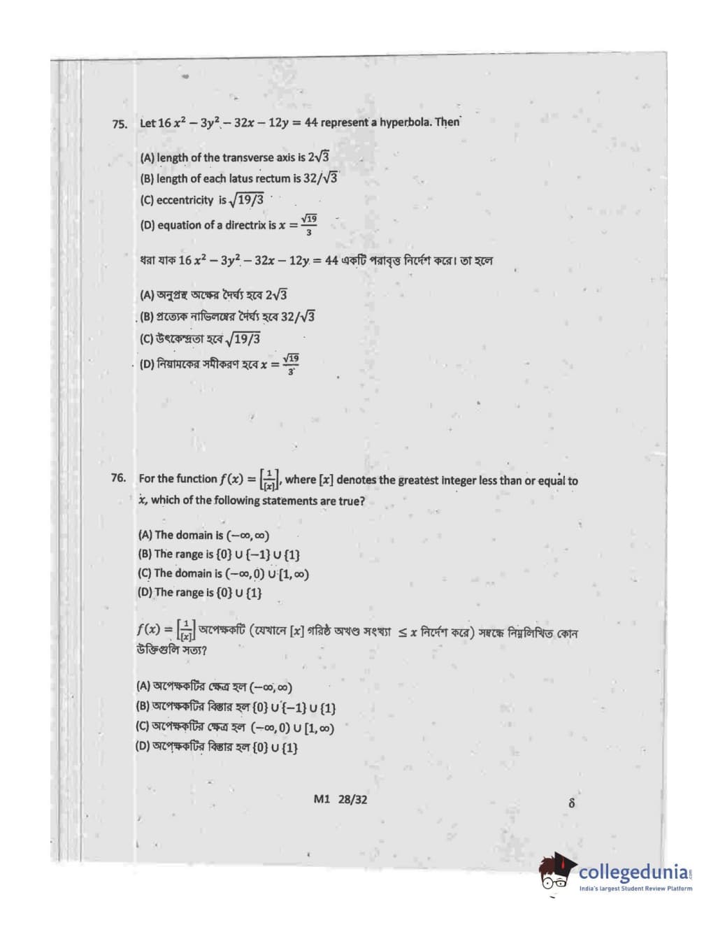 WBJEE 2015 Mathematics Question paper with answer key pdf conducted on May-06 in Forenoon Session is available for download. The exam was successfully organized by West Bengal Joint Entrance Examination Board (WBJEEB). The question paper comprised a total of 75 questions.