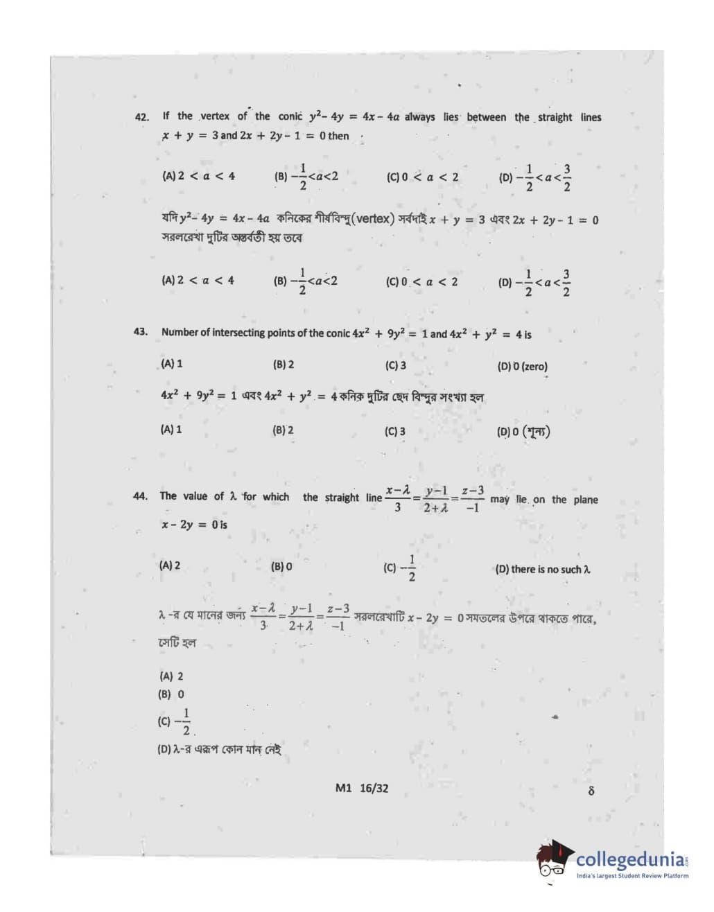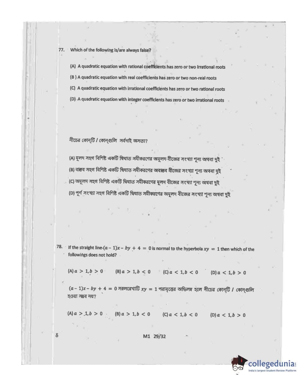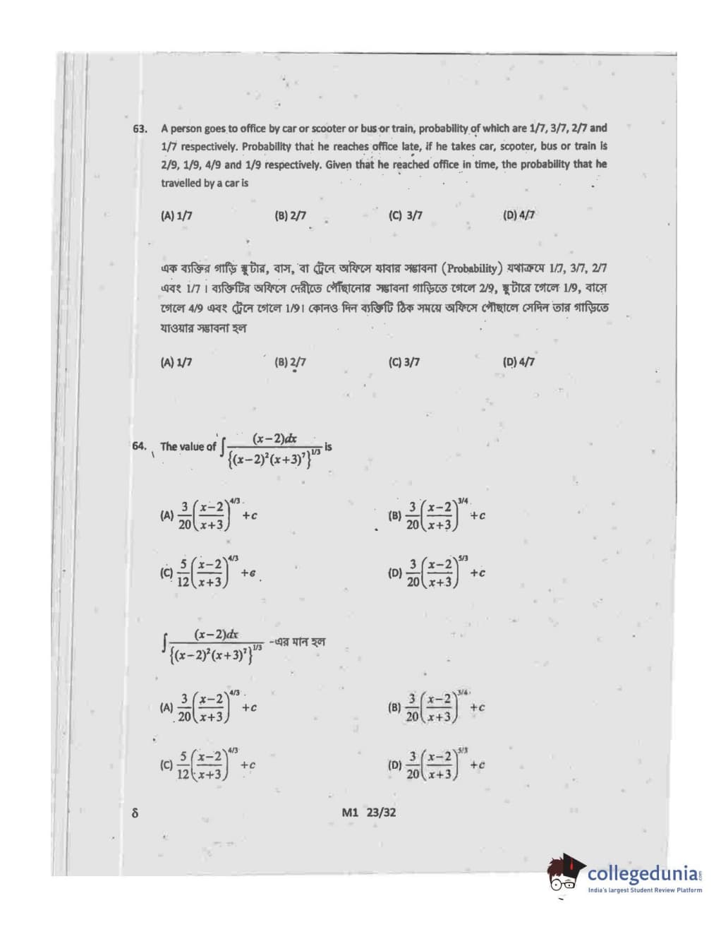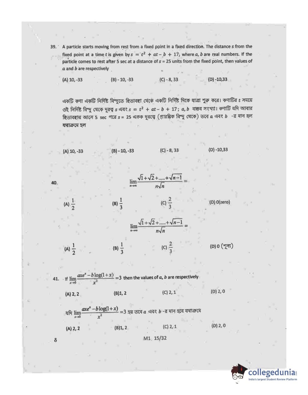 Collegedunia has provided WBJEE Previous Year Question paper pdf with answer key in the links given below: