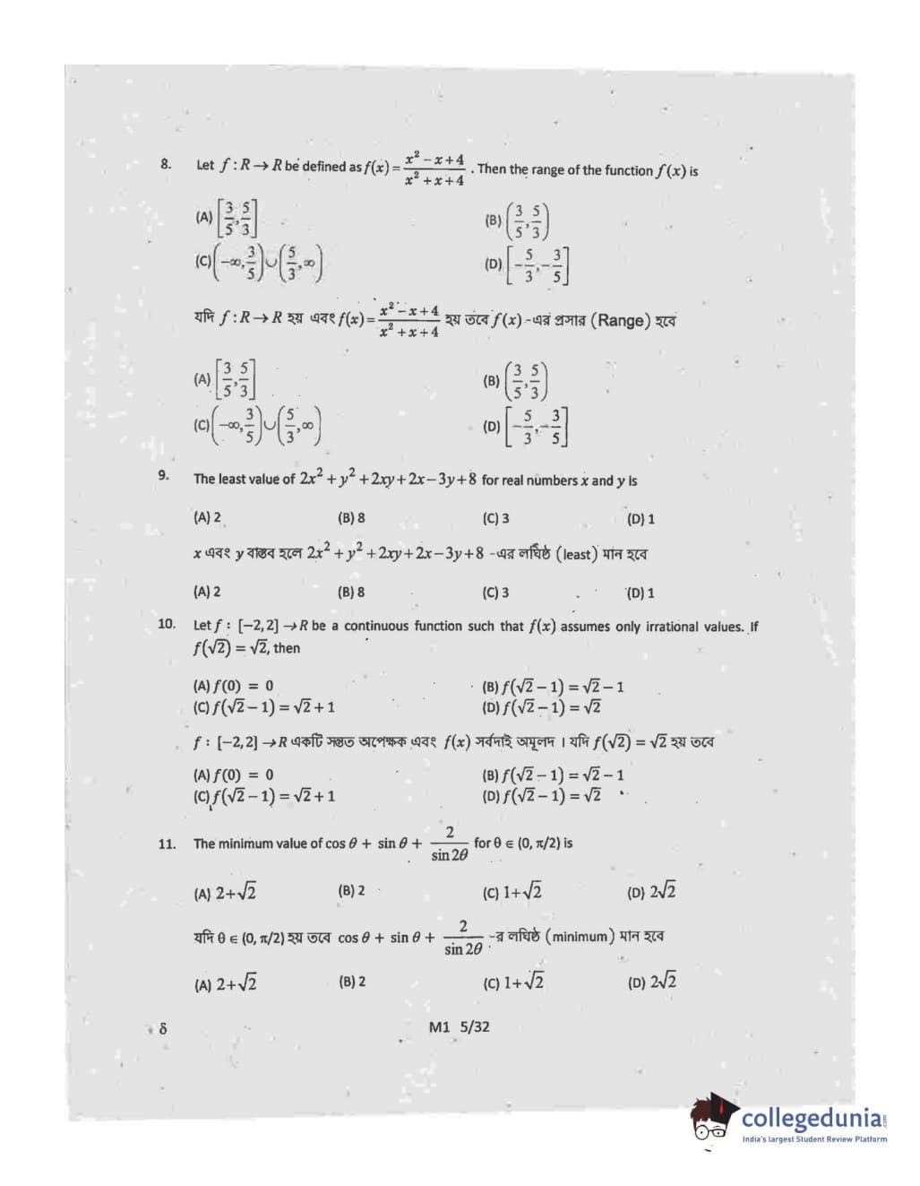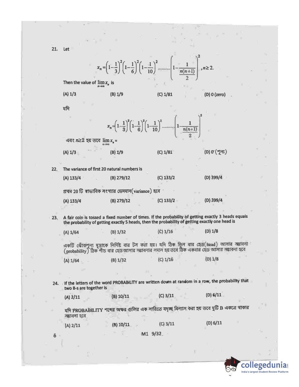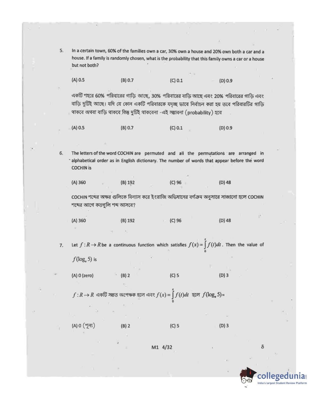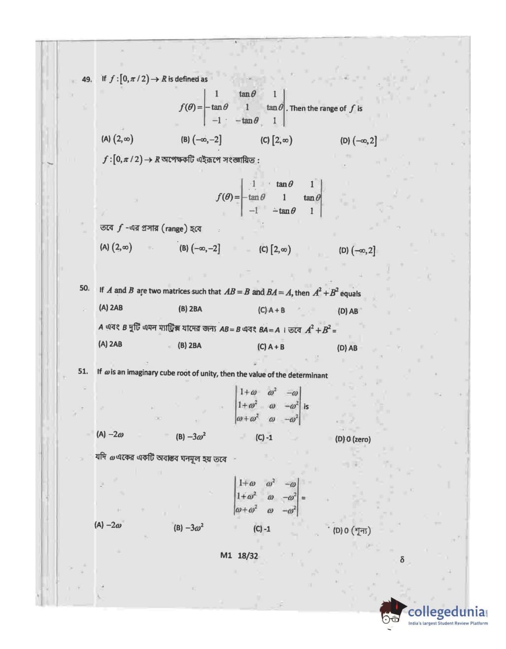 Collegedunia has provided WBJEE Previous Year Question paper pdf with answer key in the links given below:
