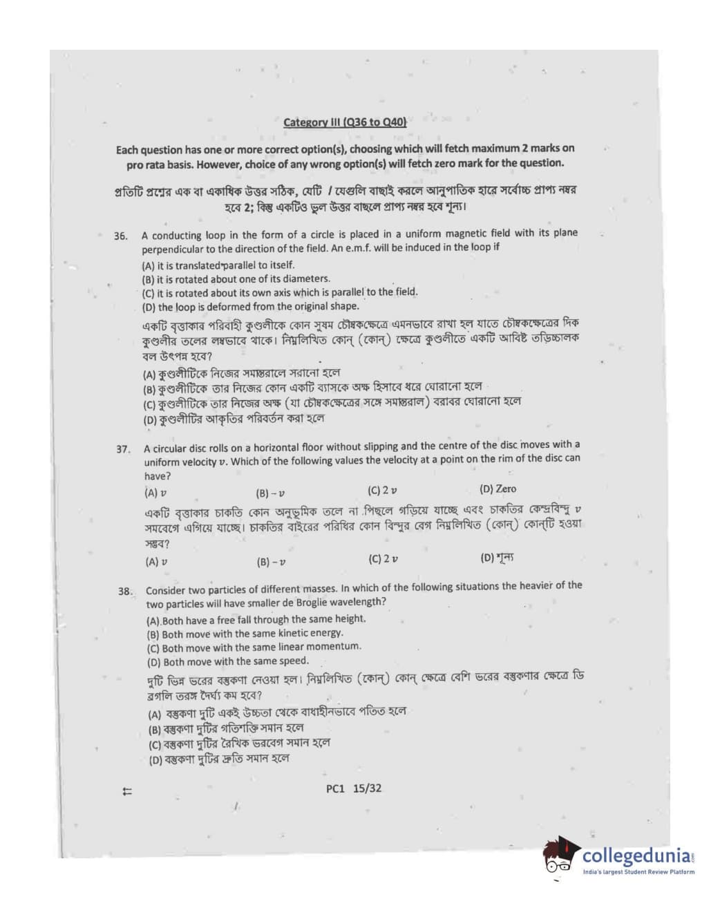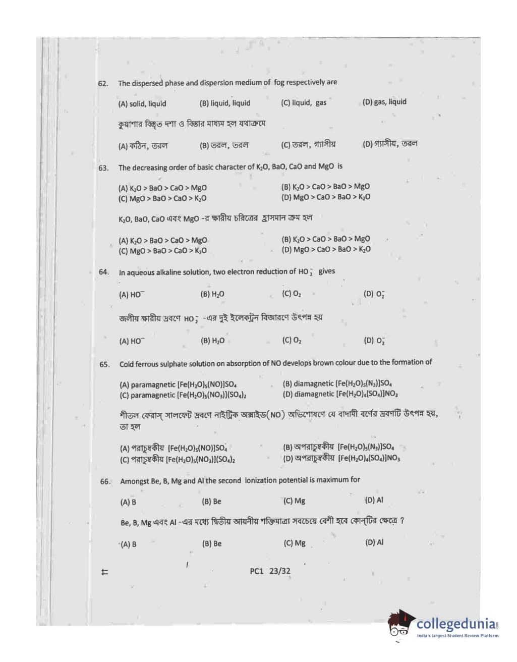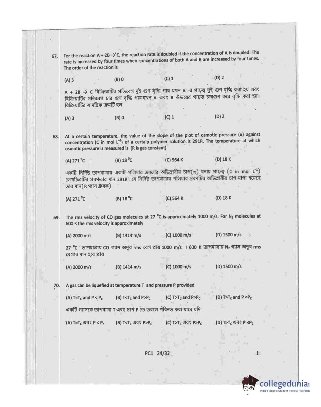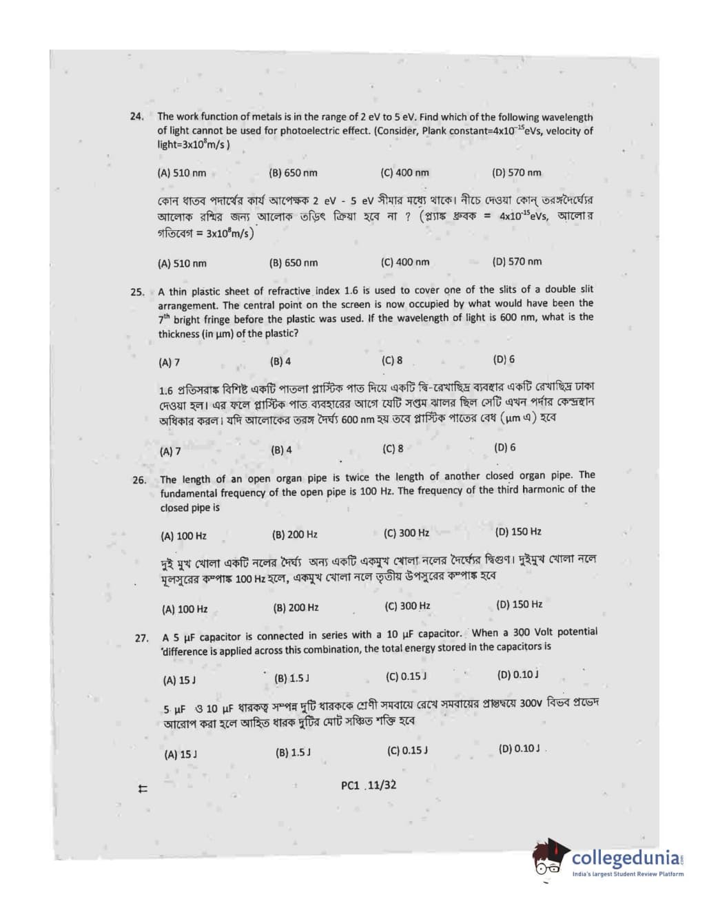 Collegedunia has provided WBJEE Previous Year Question paper pdf with answer key in the links given below: