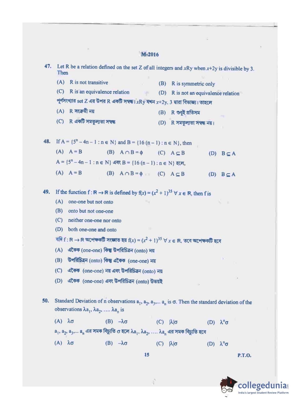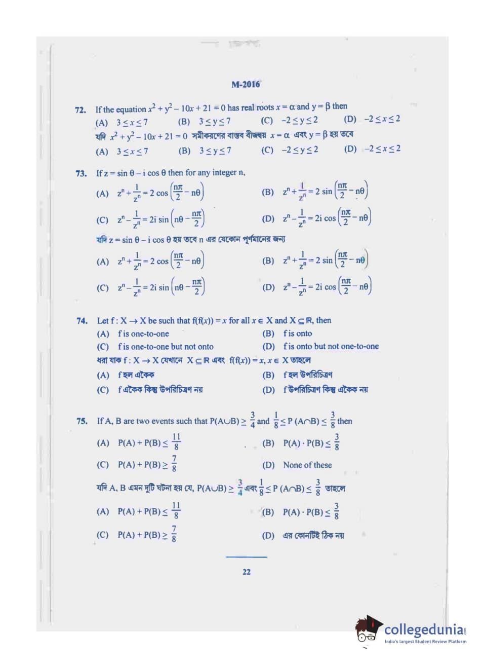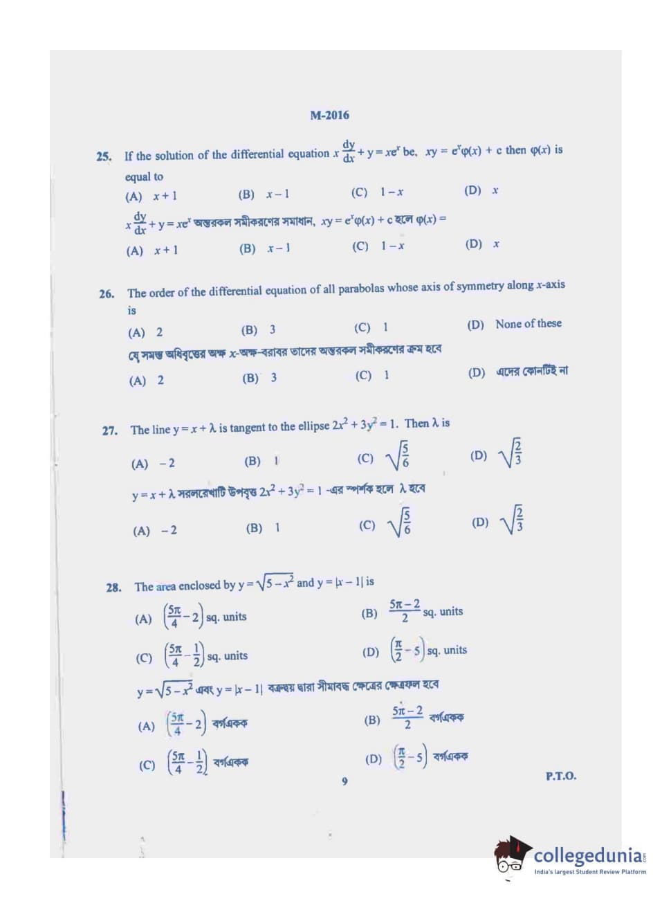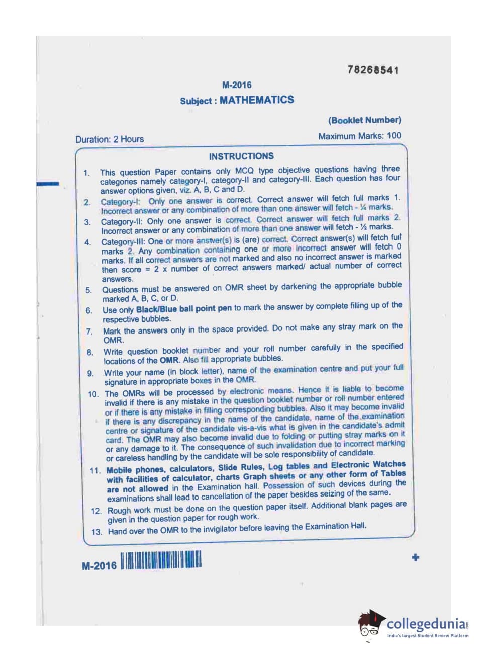 WBJEE 2016 Mathematics Question paper with answer key pdf conducted on May-17 in Forenoon Session is available for download. The exam was successfully organized by West Bengal Joint Entrance Examination Board (WBJEEB). In terms of difficulty level, WBJEE was of Easy level. The question paper comprised a total of 75 questions.