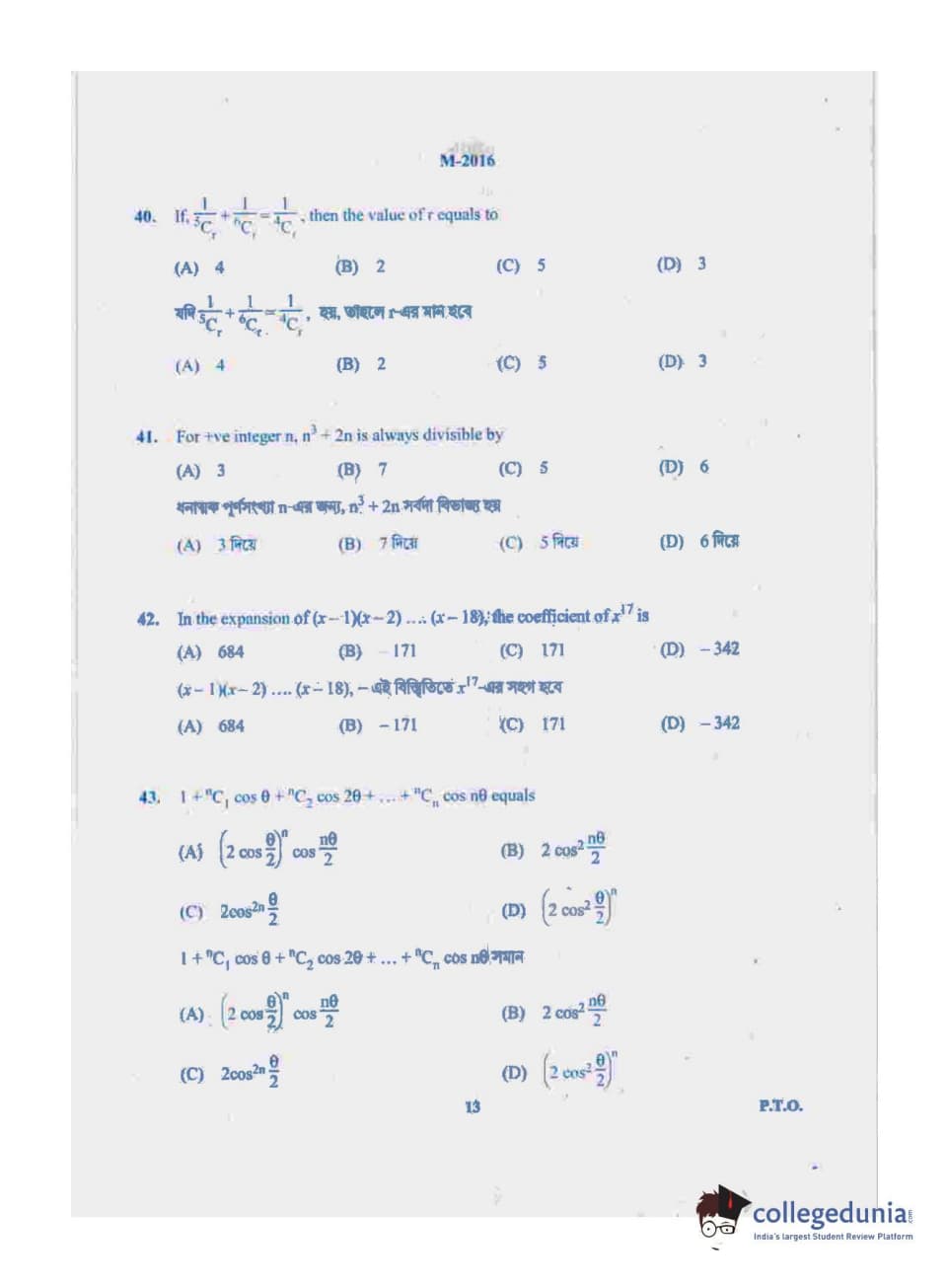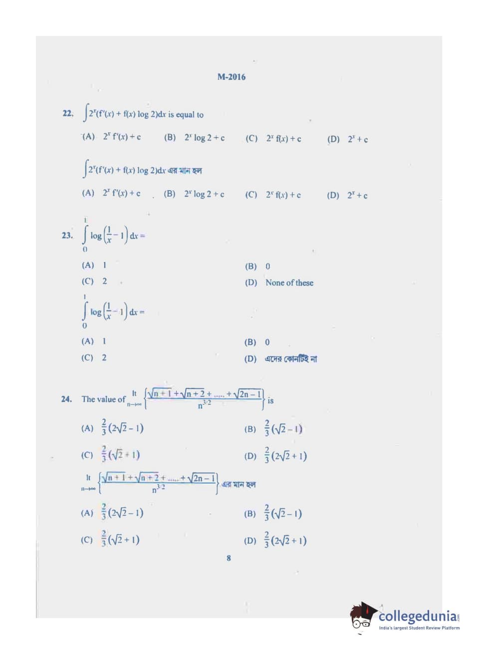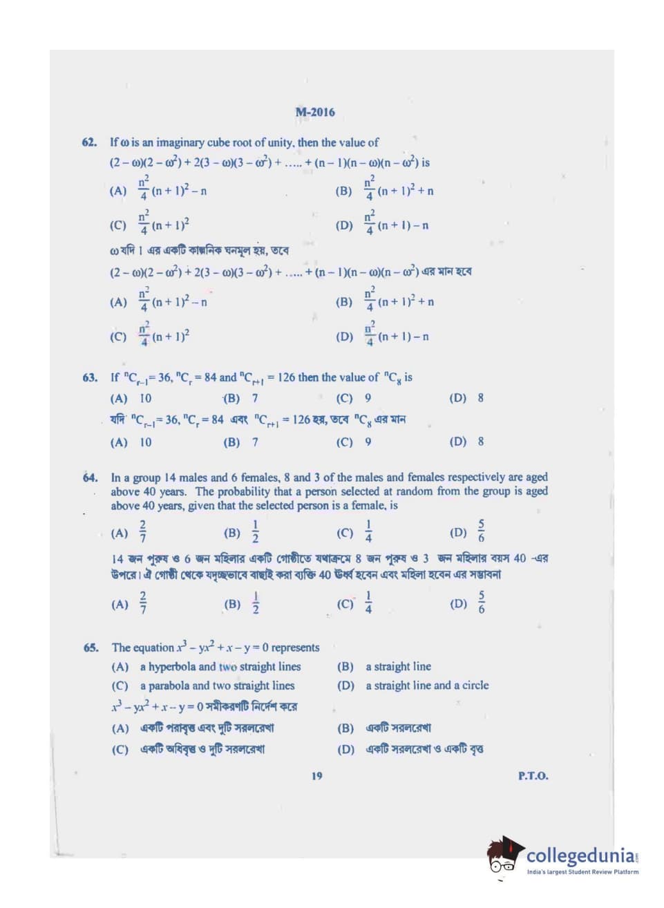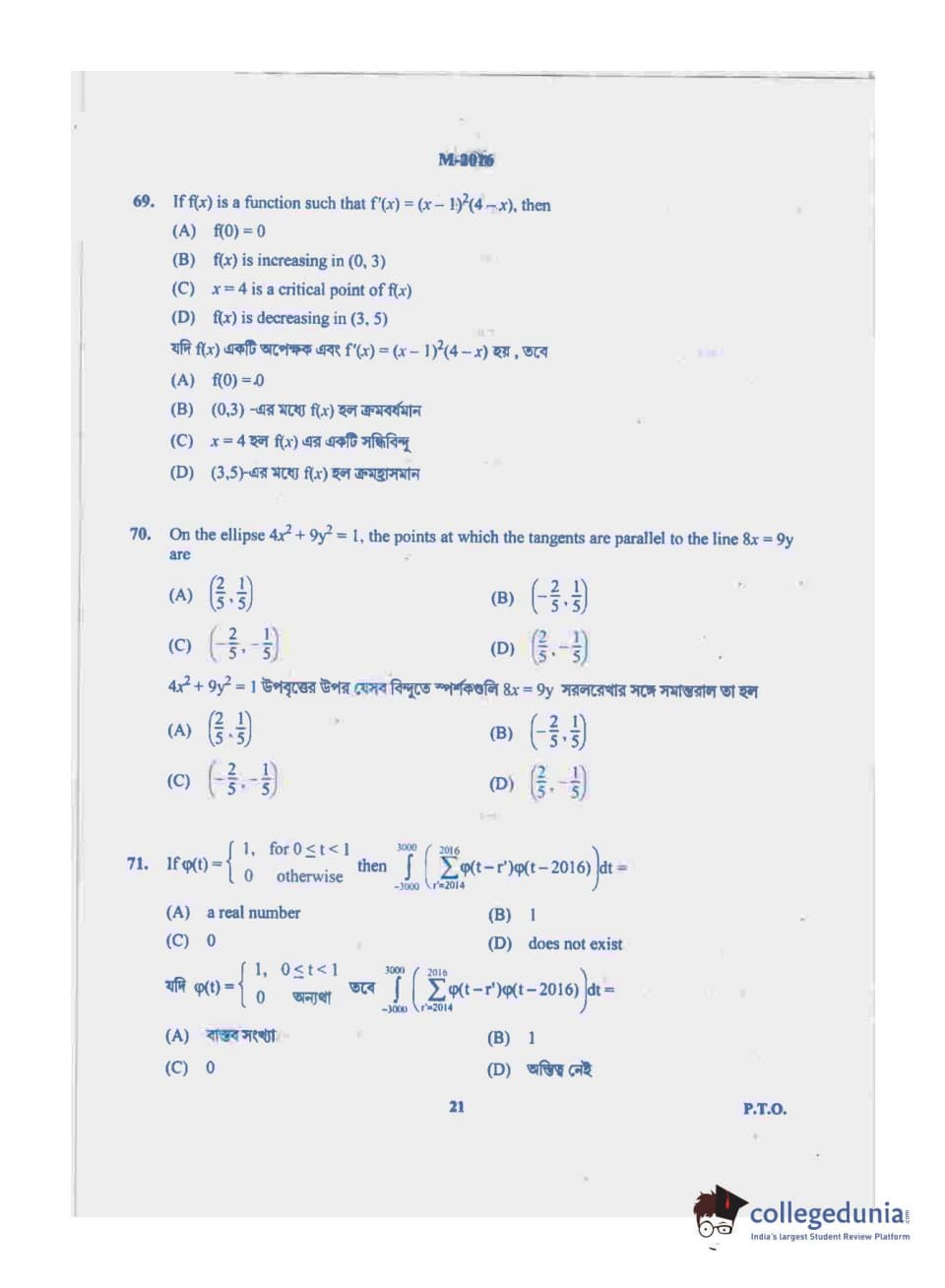 | WBJEE 2019 Question Paper | WBJEE 2018 Question Paper | WBJEE 2017 Question Paper |