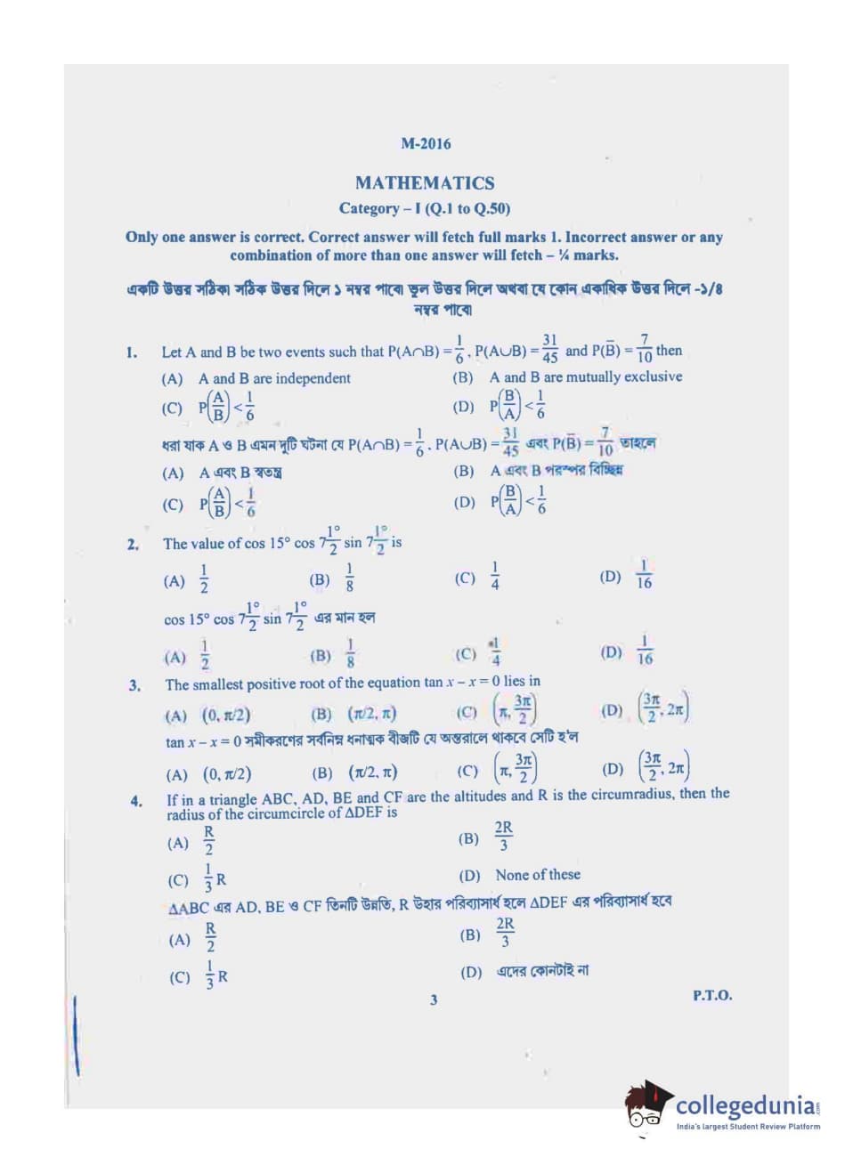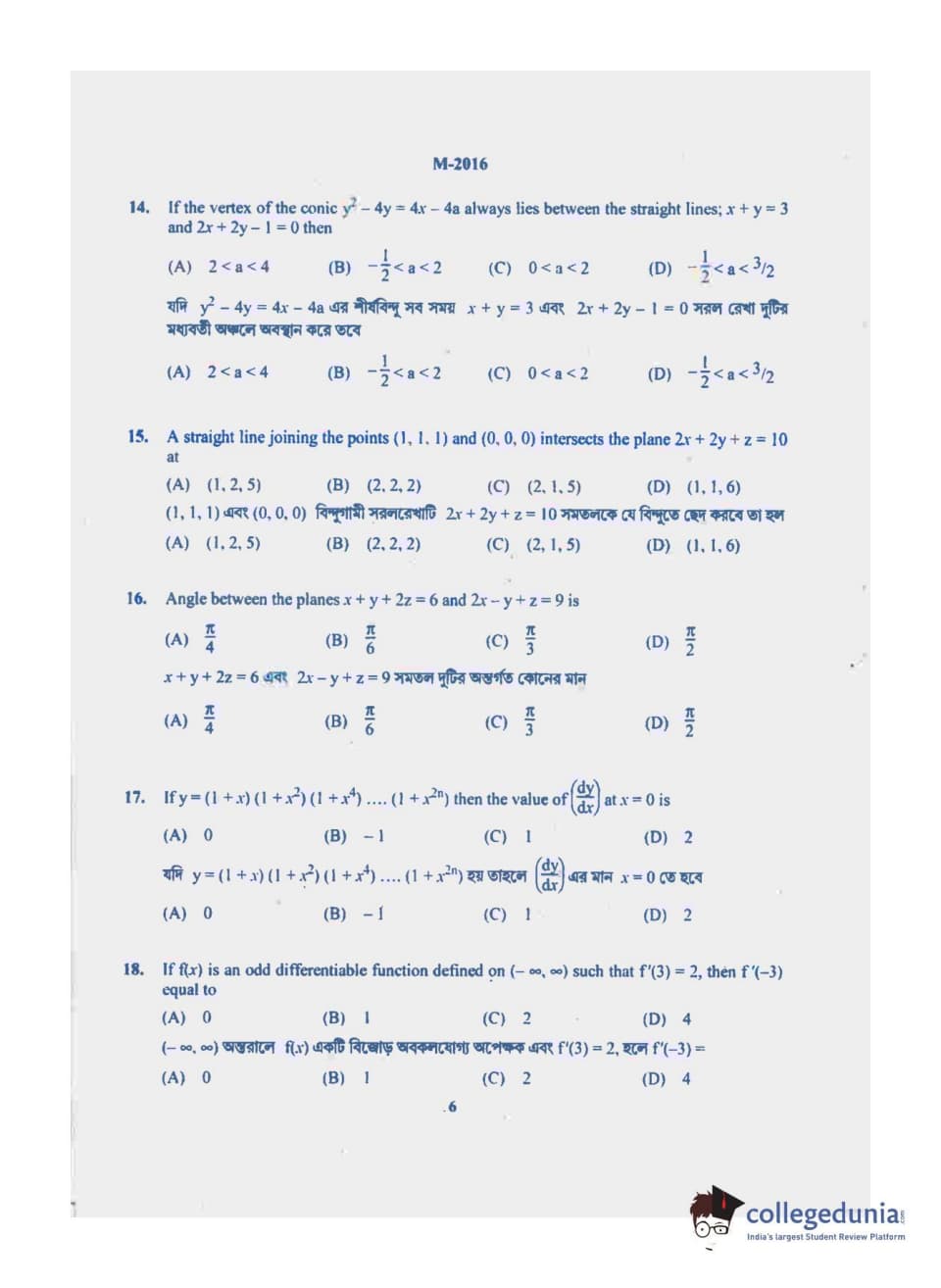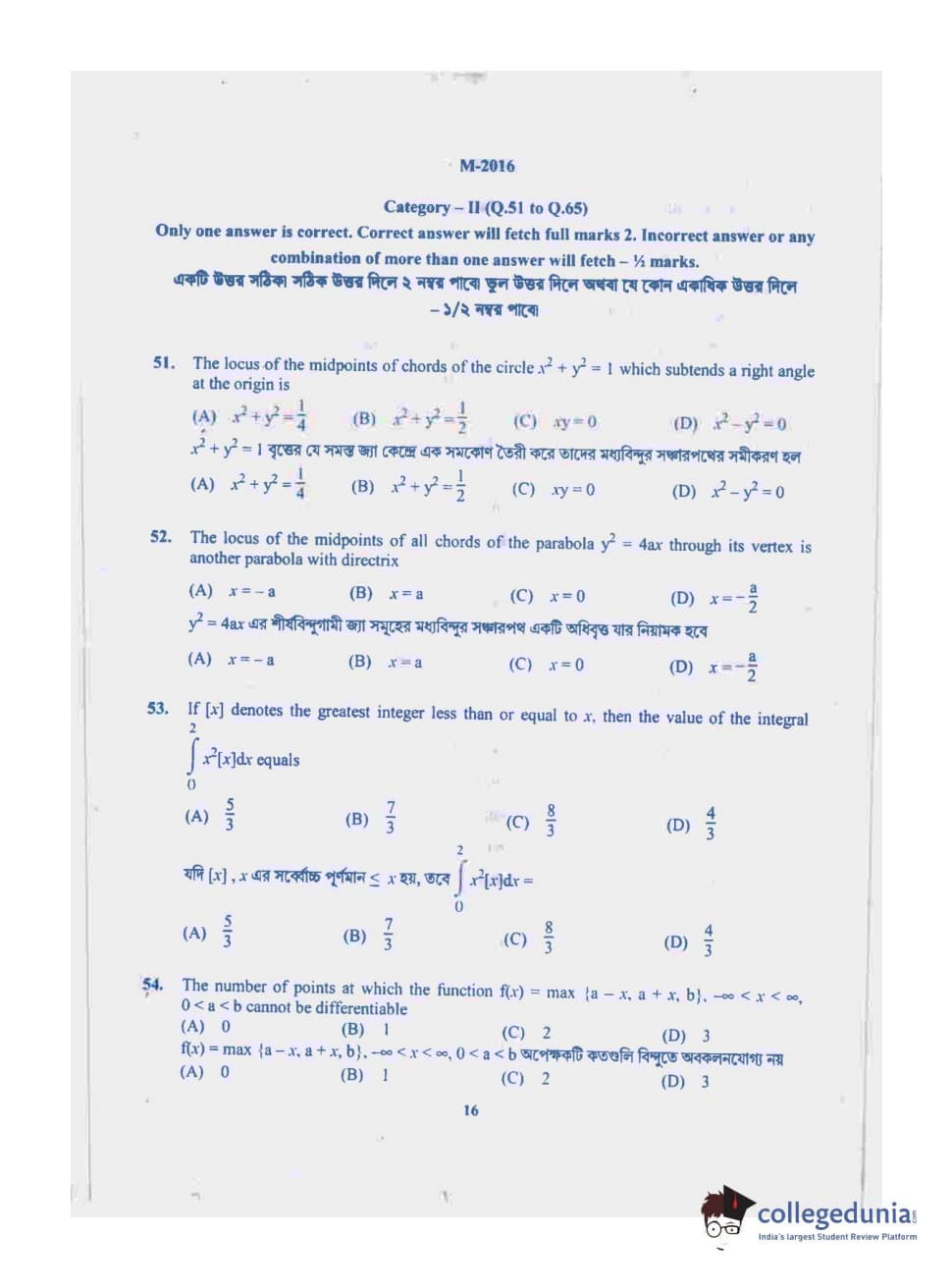 | WBJEE 2016 Mathematics Question Paper PDF | WBJEE 2016 Mathematics Answer Key PDF |