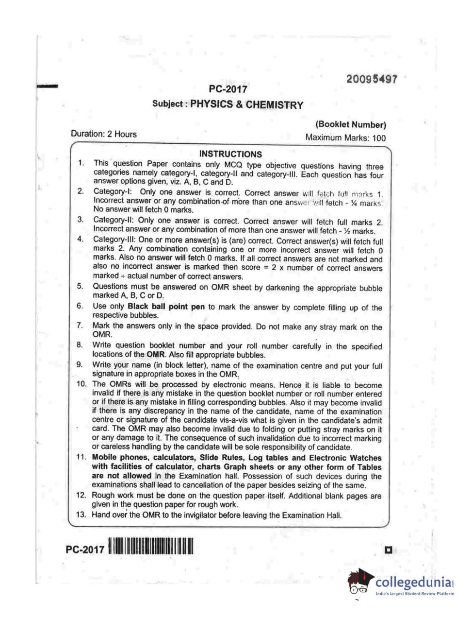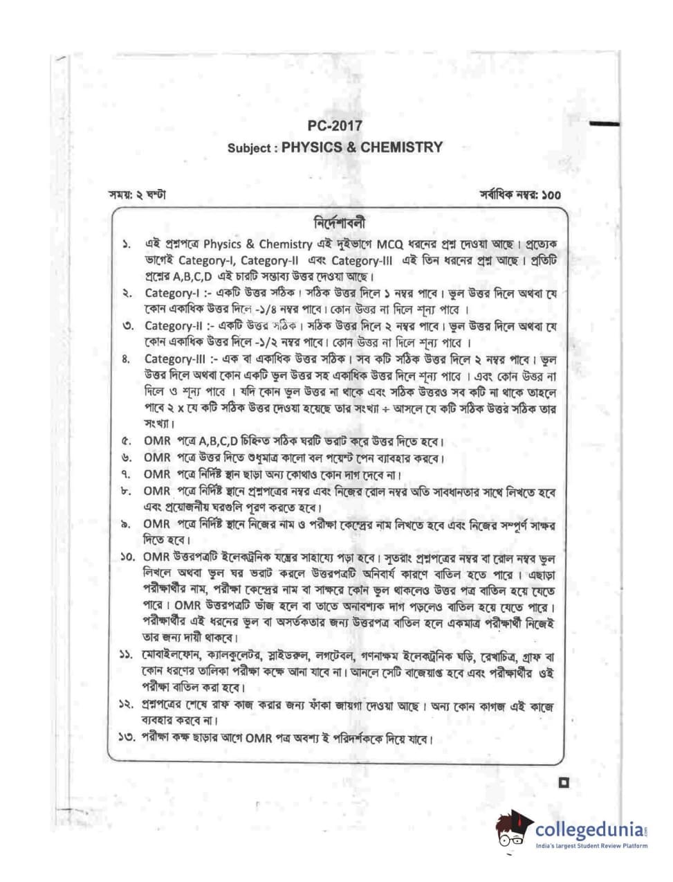 | WBJEE 2017 Physics & Chemistry Question Paper PDF | WBJEE 2017 Physics & Chemistry Answer Key PDF |