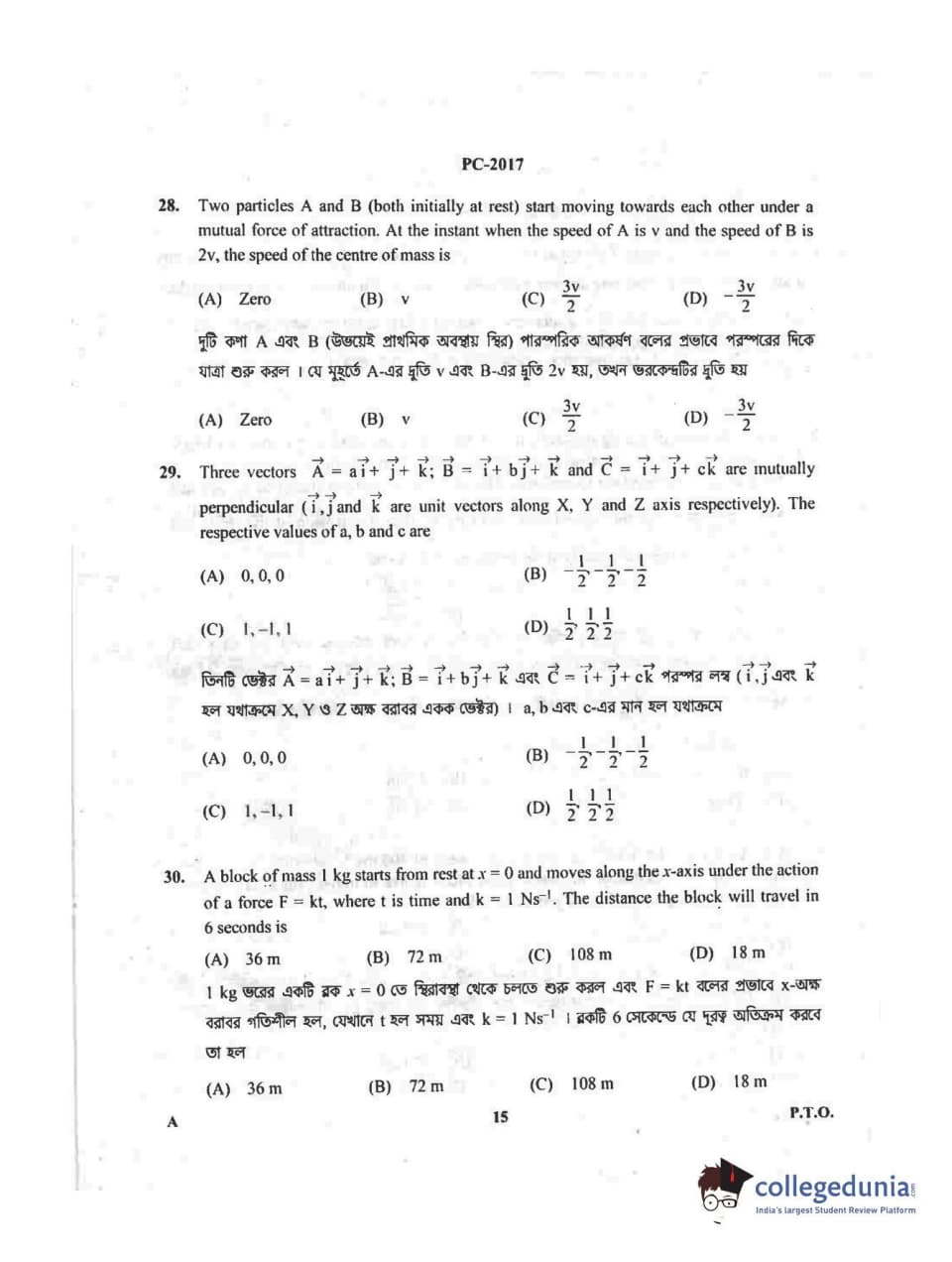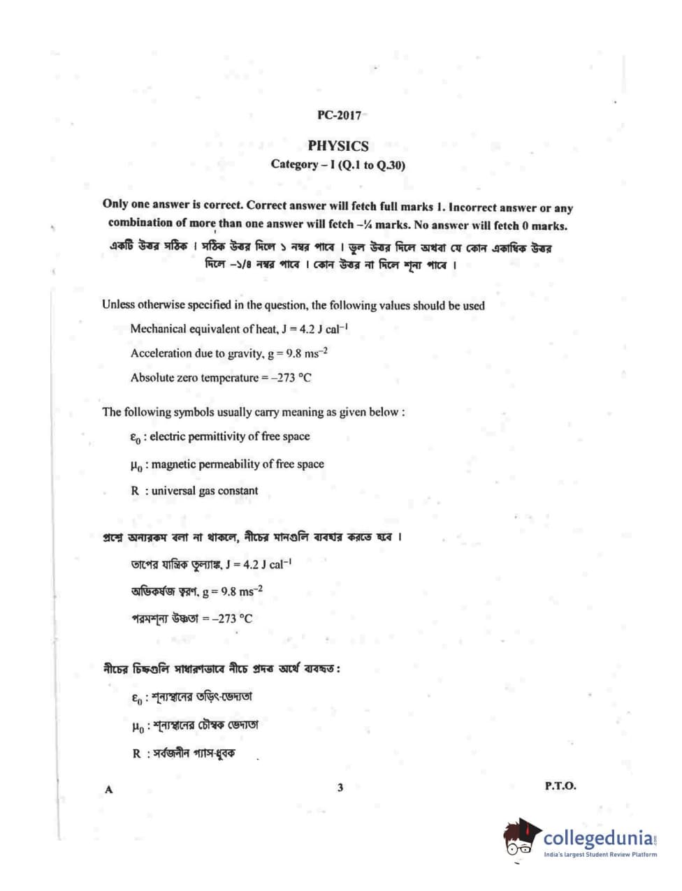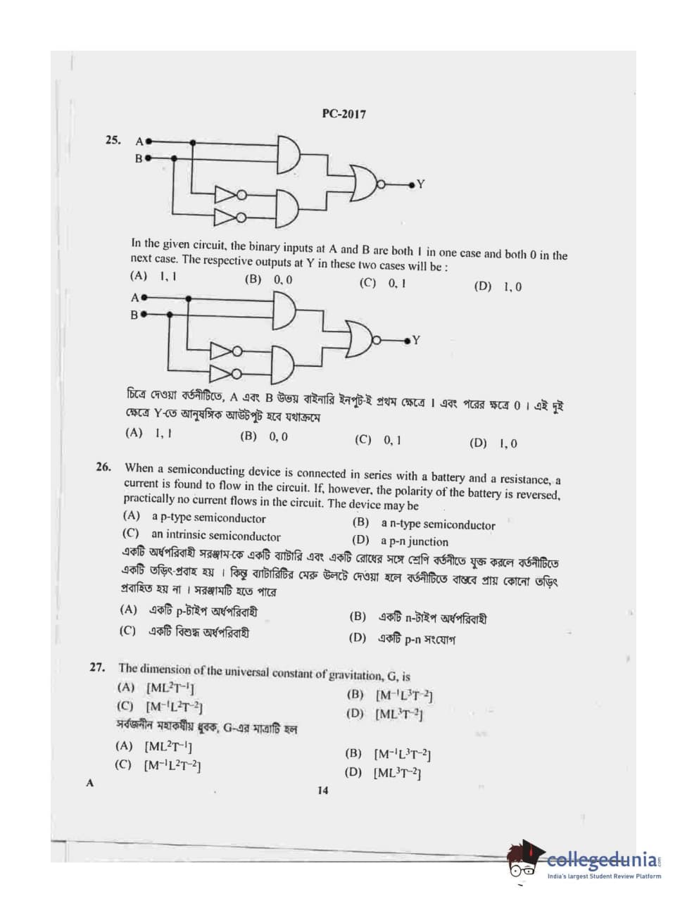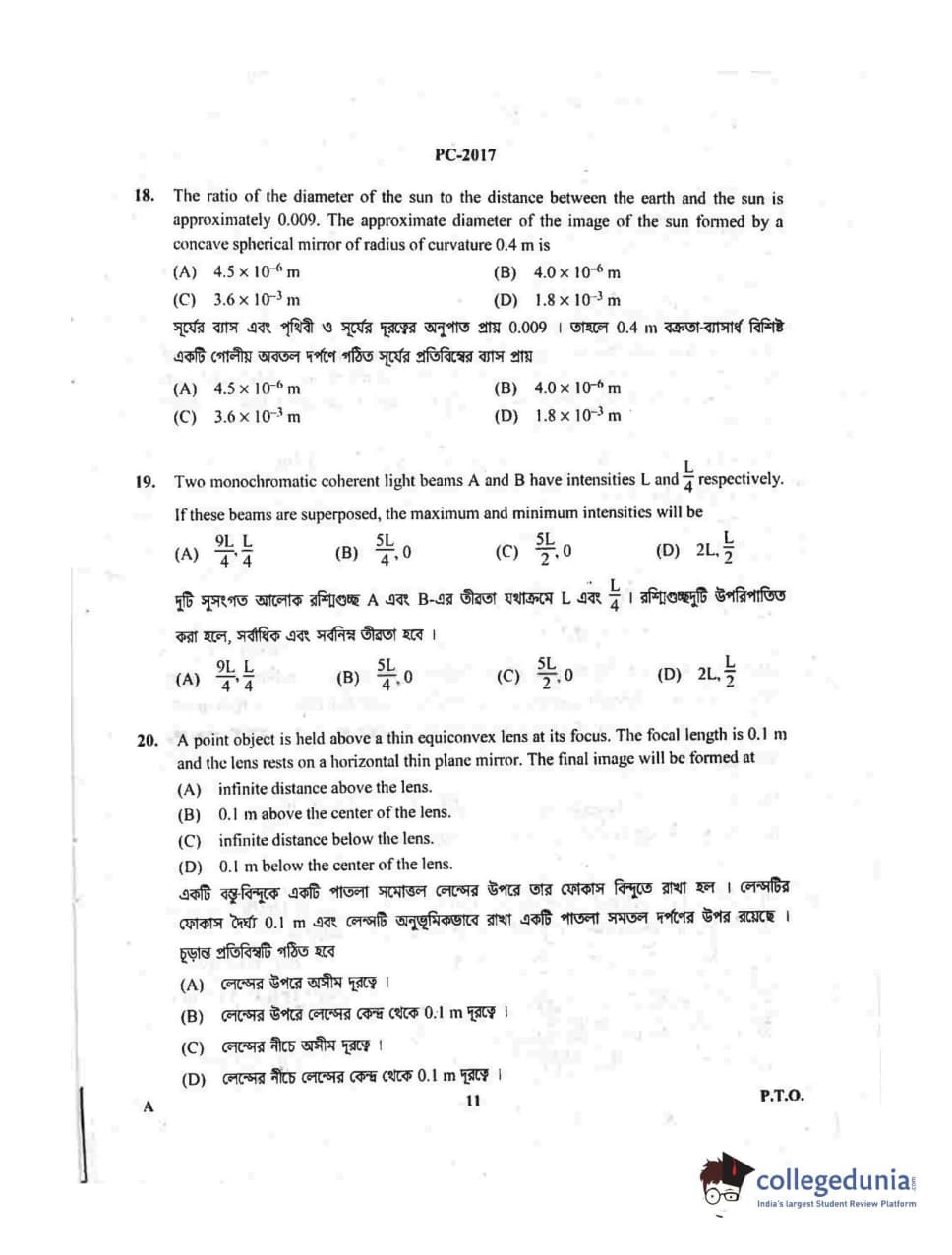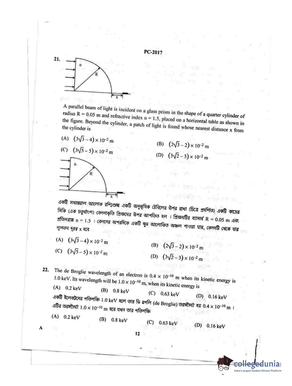 WBJEE 2017 Physics & Chemistry Question Paper with Answer Key PDF for Afternoon Session