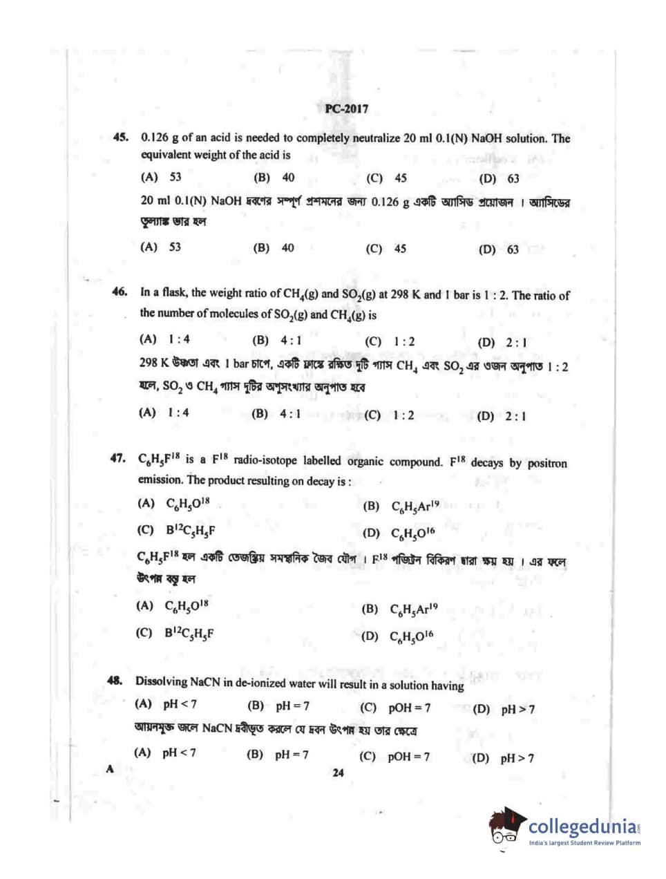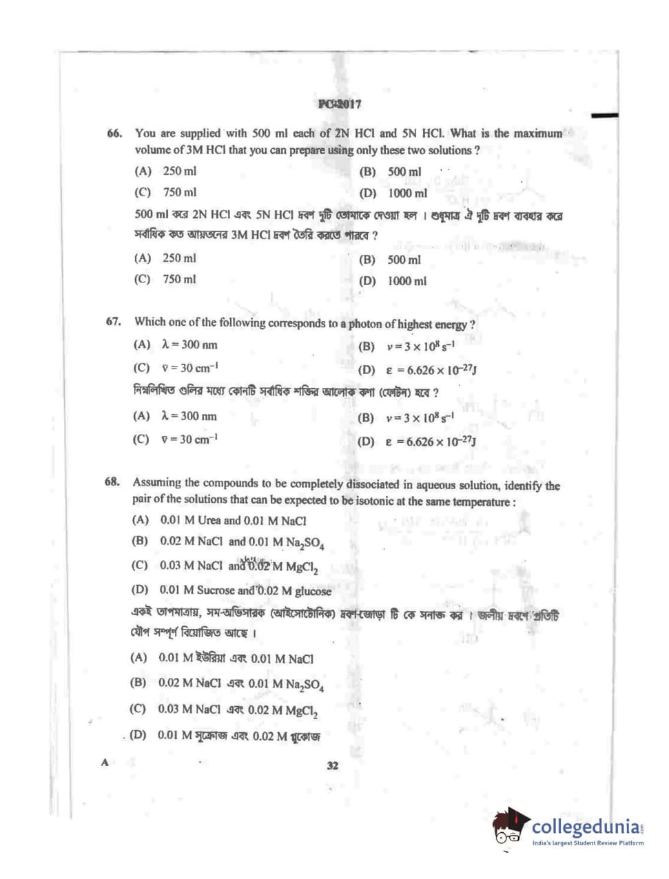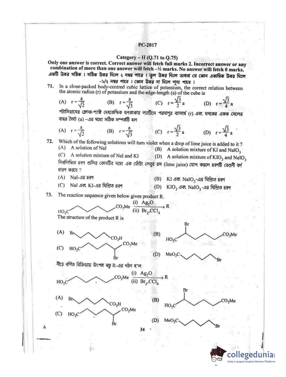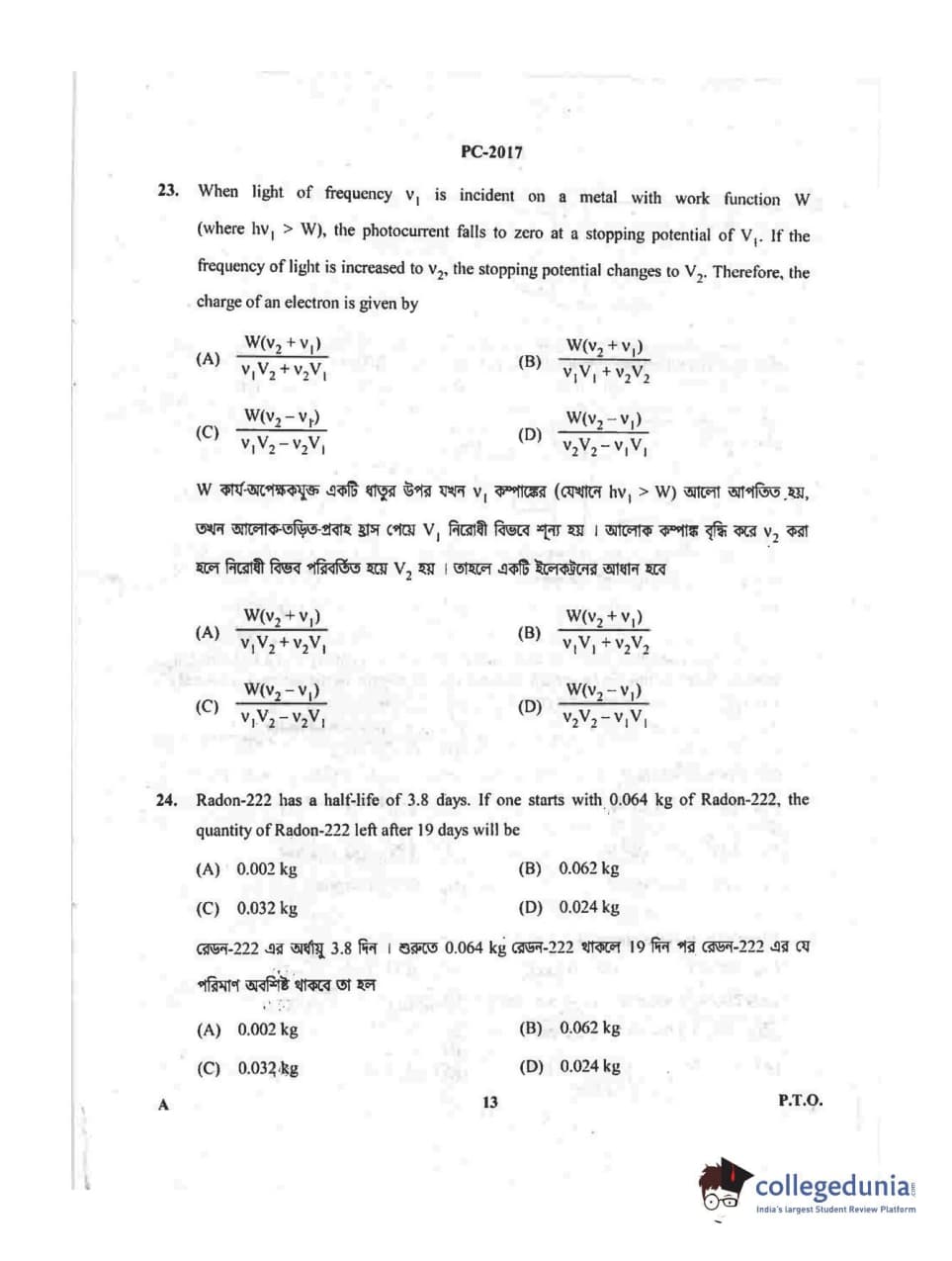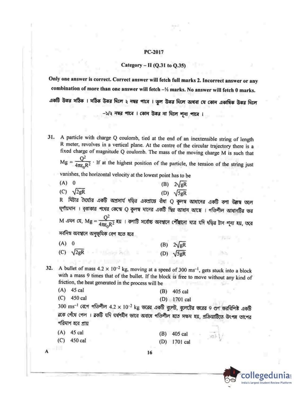 WBJEE 2017 Physics & Chemistry Question Paper with Answer Key PDF for Afternoon Session