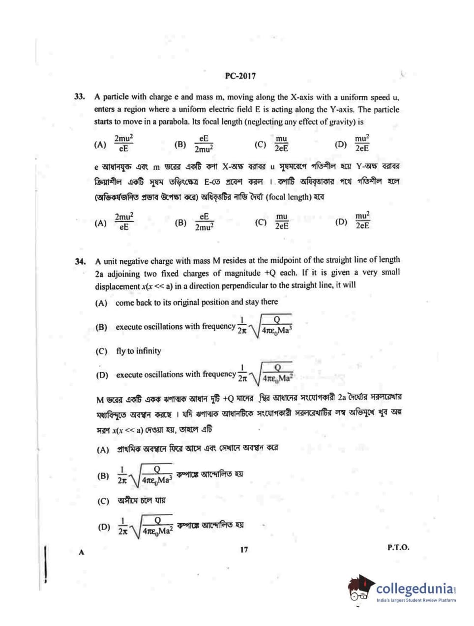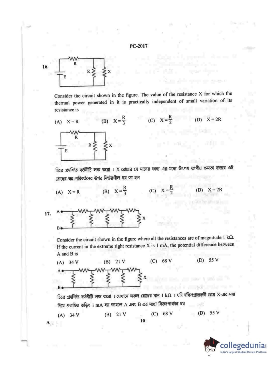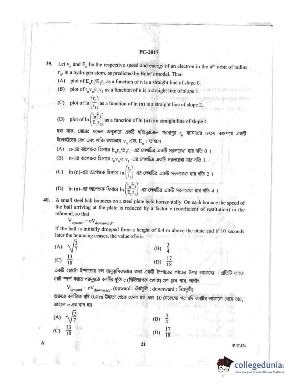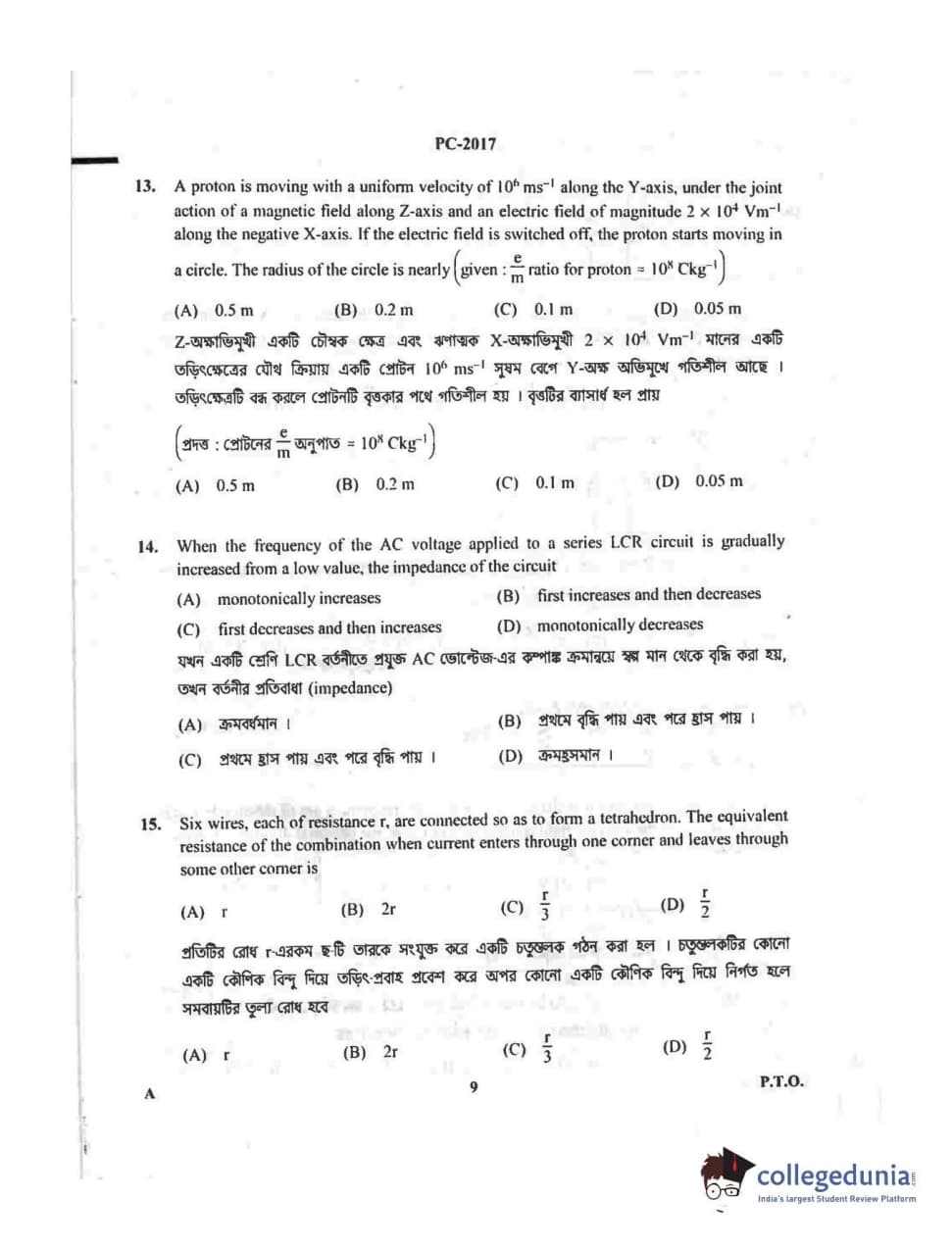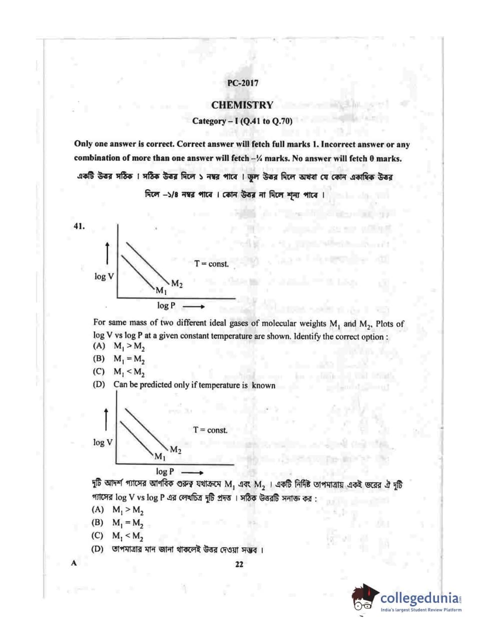 WBJEE 2017 Physics & Chemistry Question Paper with Answer Key PDF for Afternoon Session
