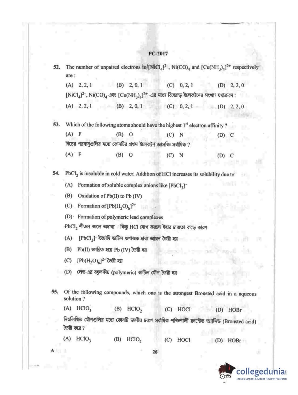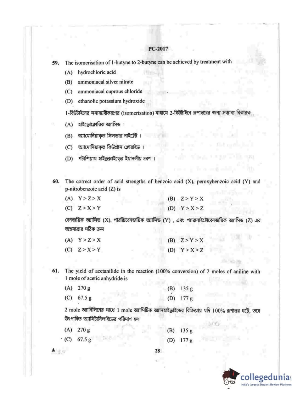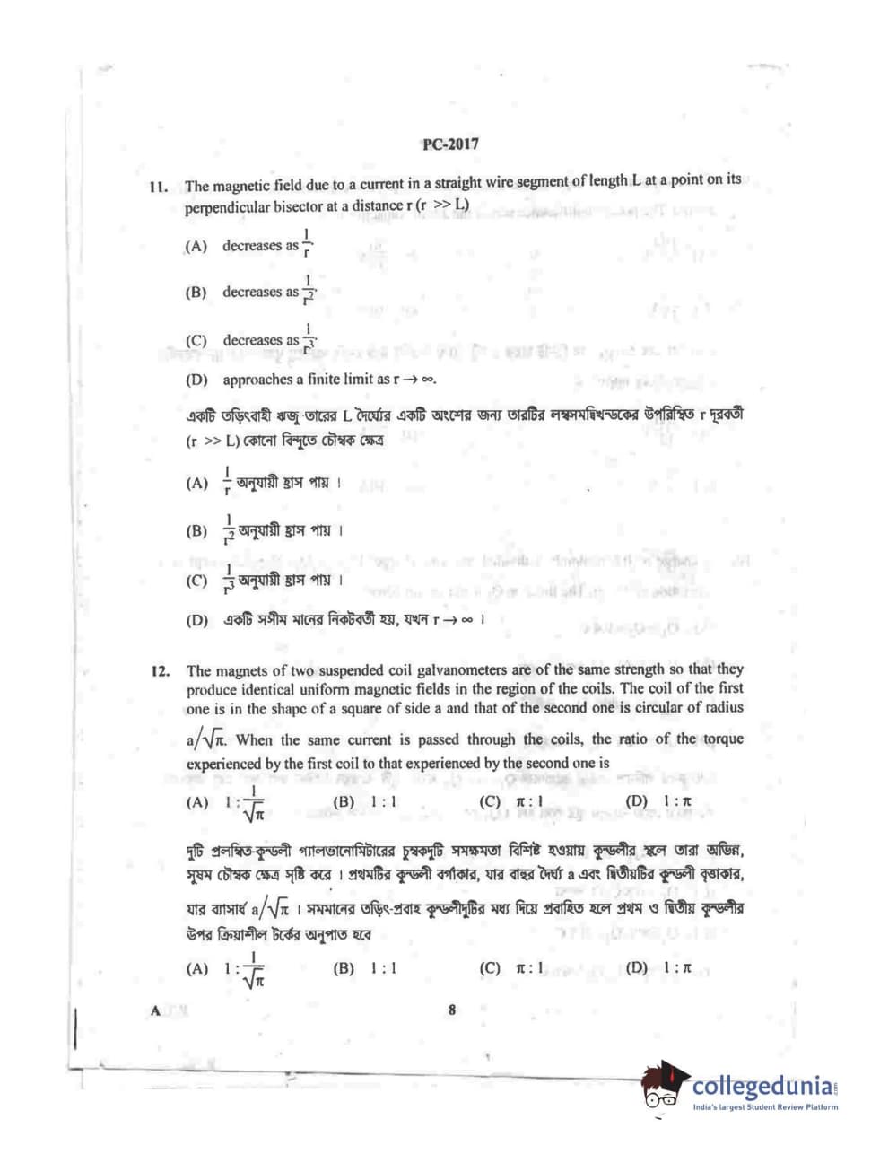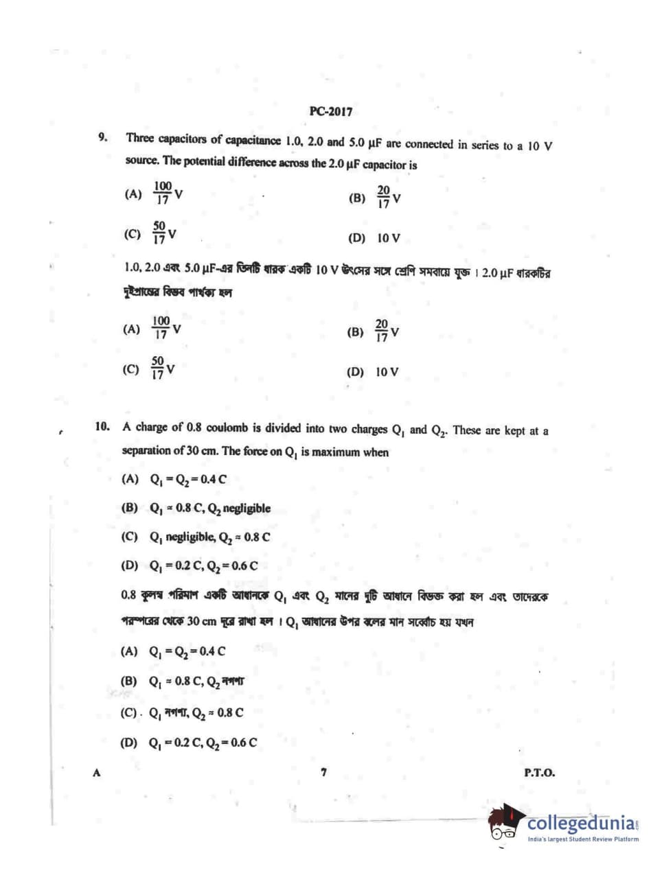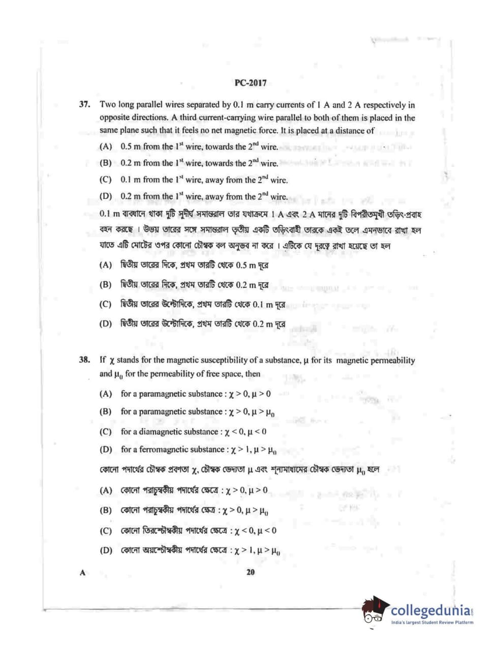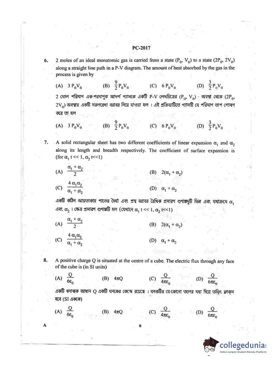 WBJEE 2017 Physics & Chemistry Question Paper with Answer Key PDF for Afternoon Session
