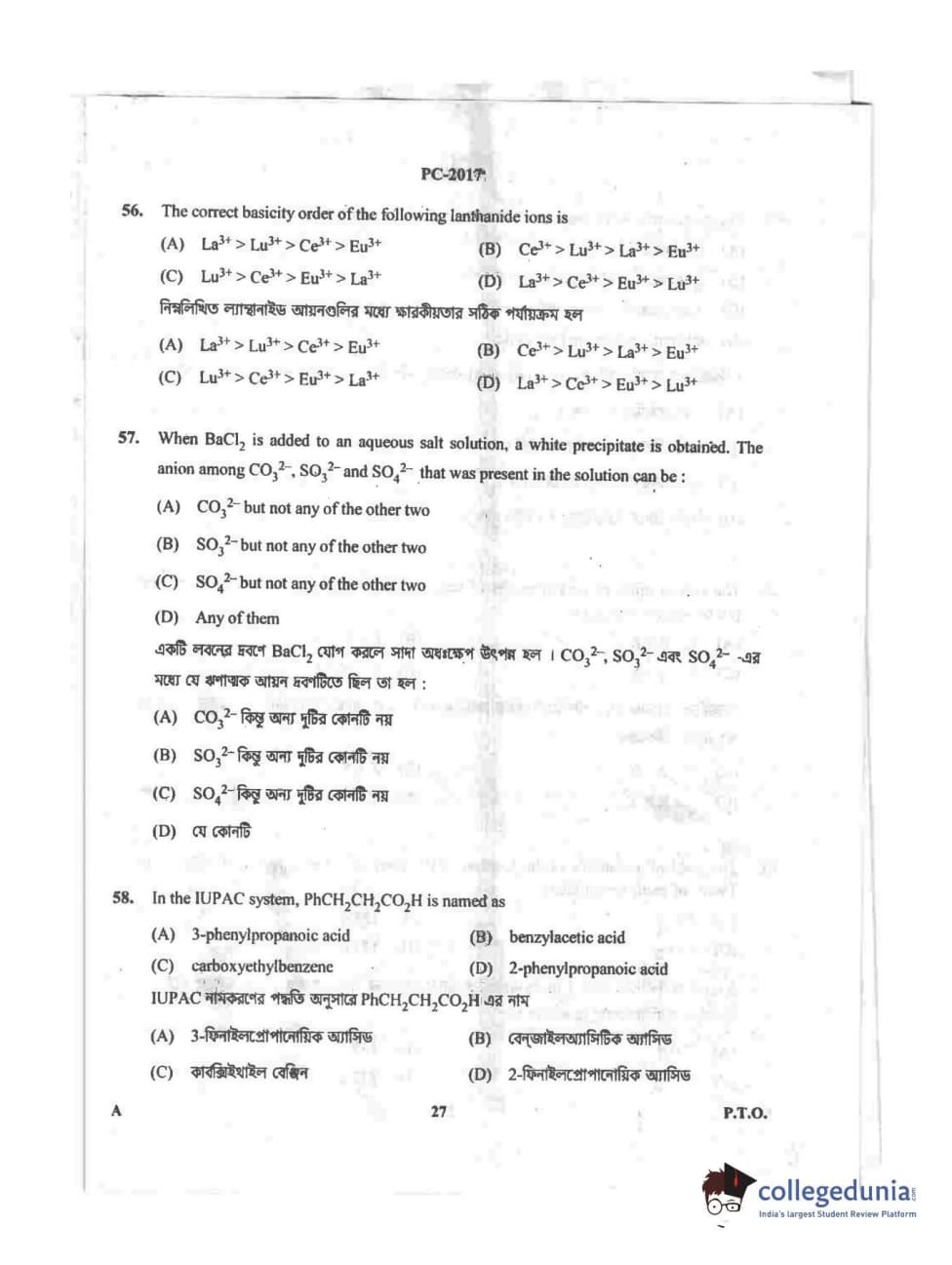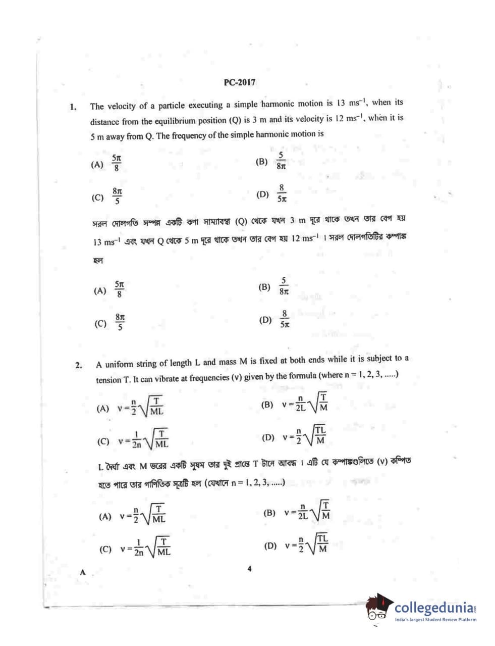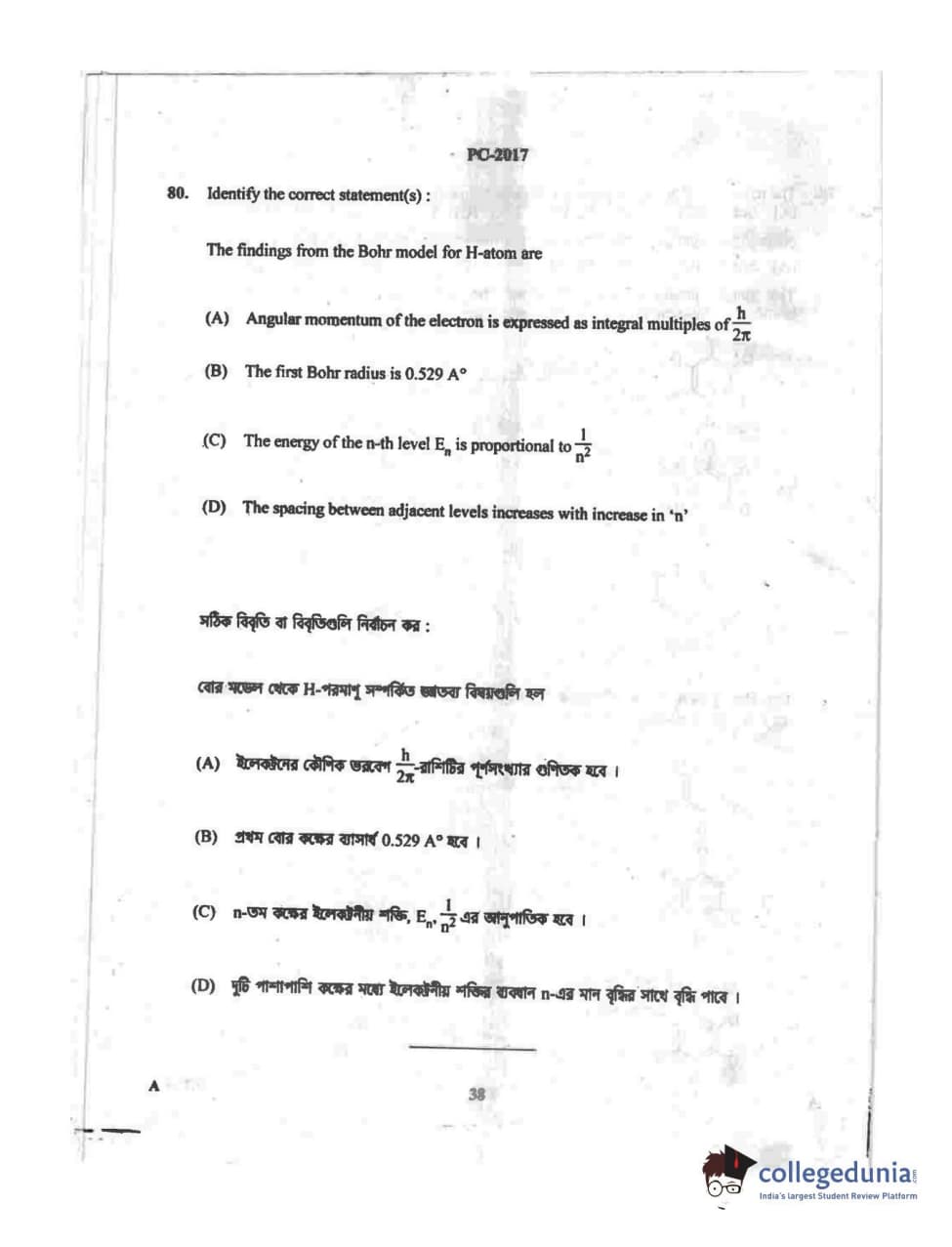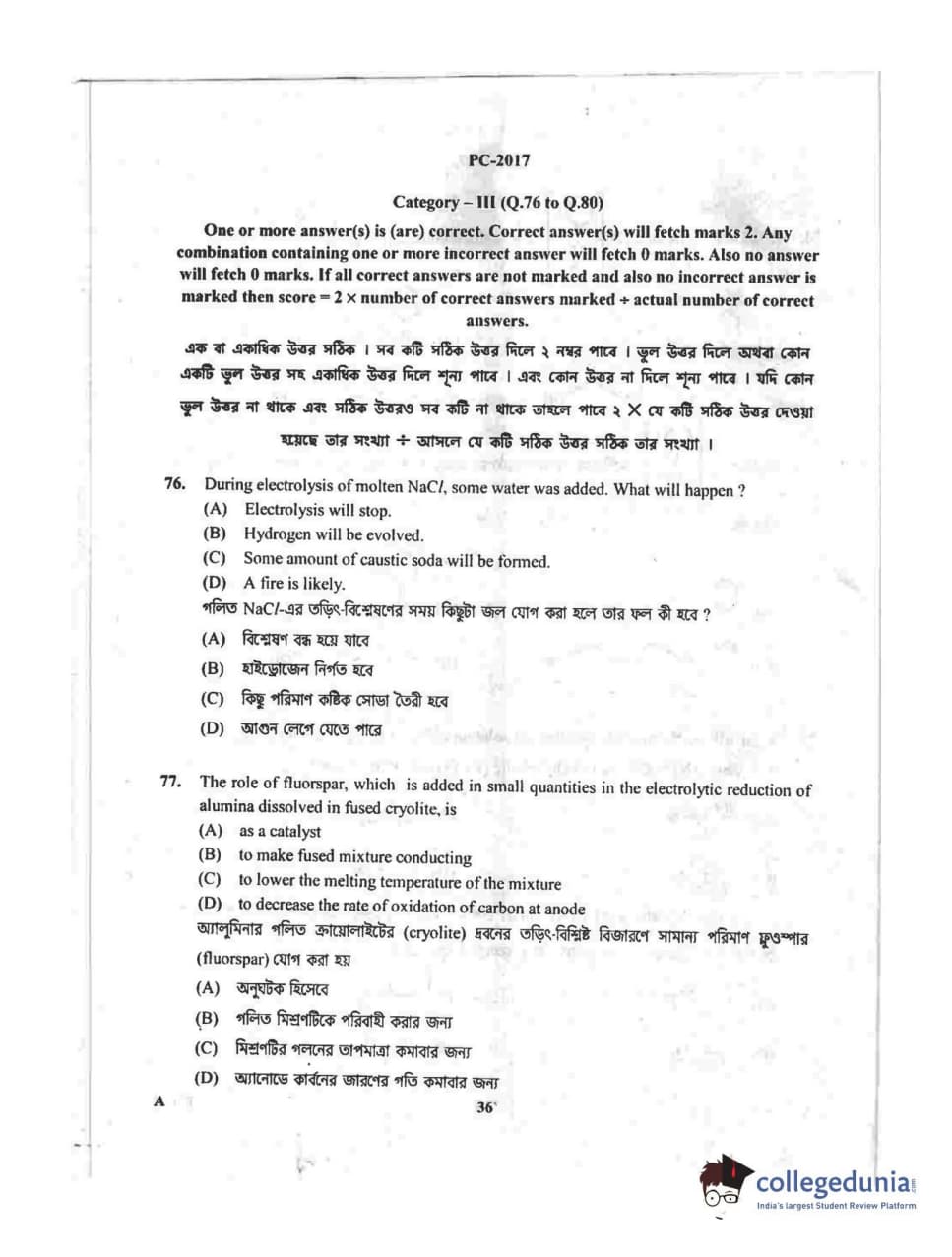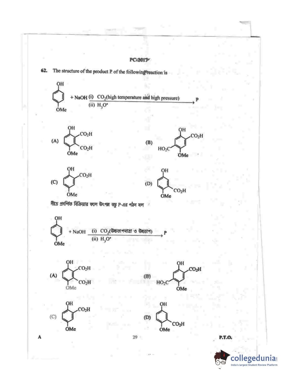 WBJEE 2017 Physics & Chemistry Question Paper with Answer Key PDF for Afternoon Session