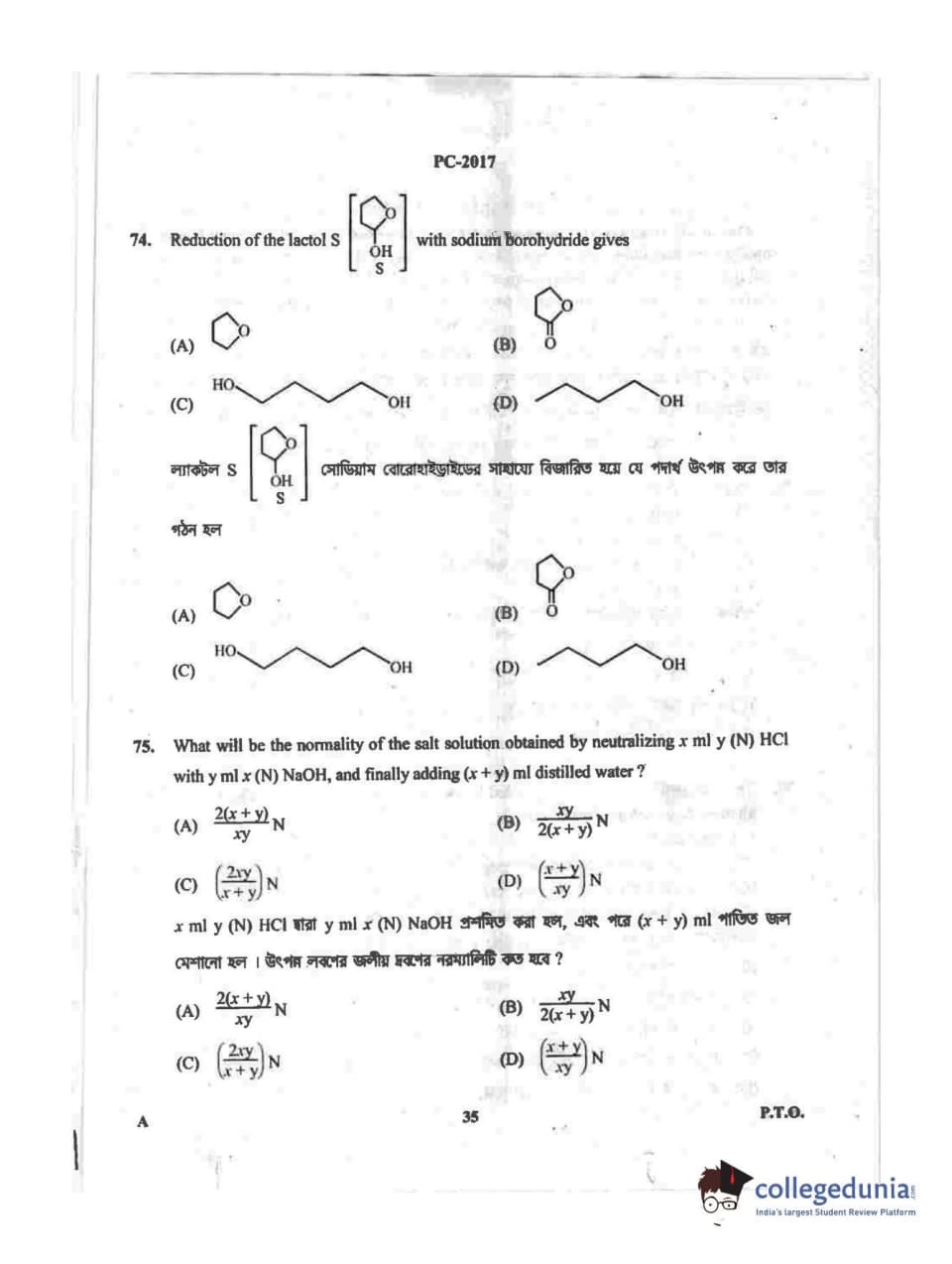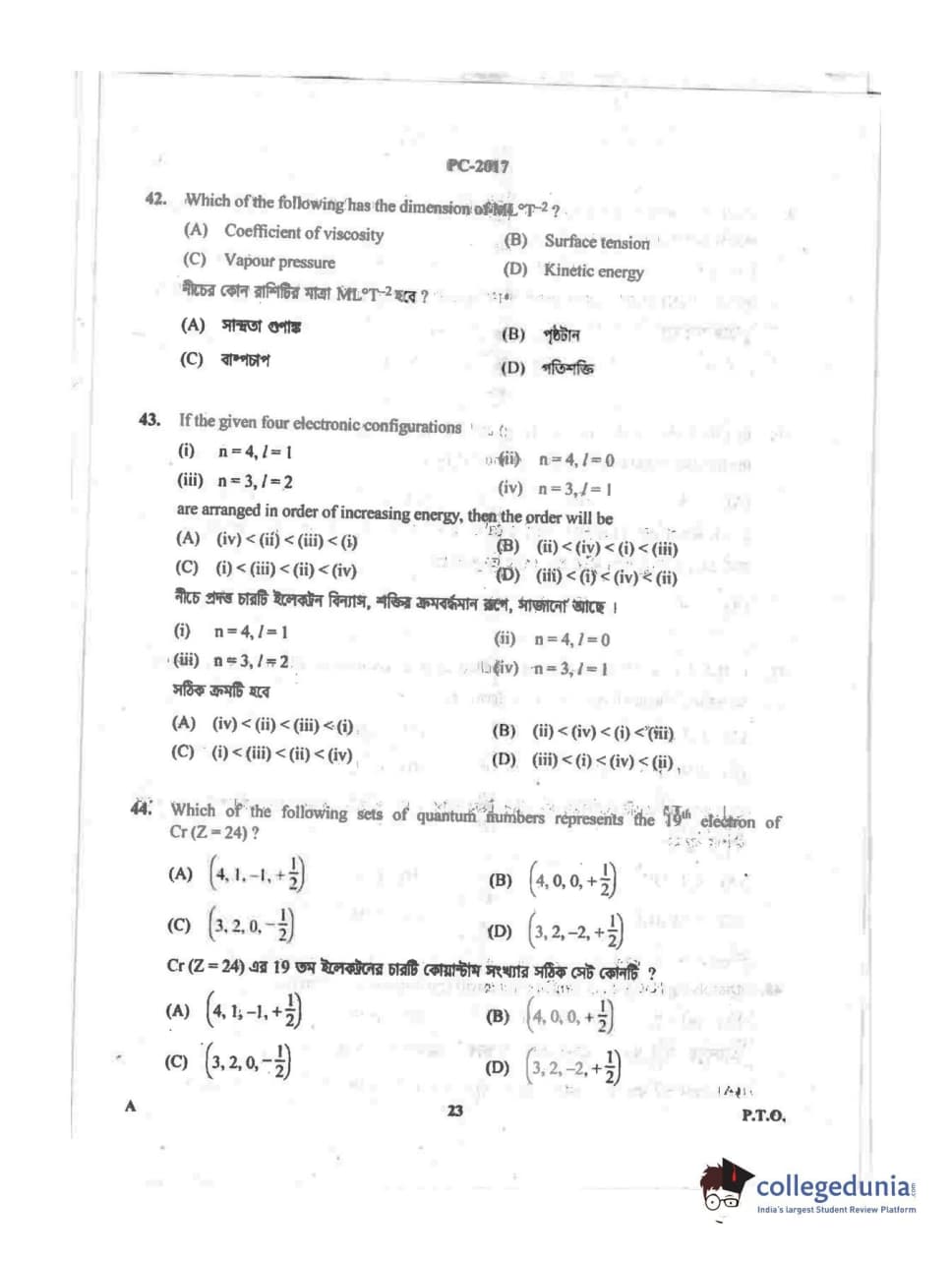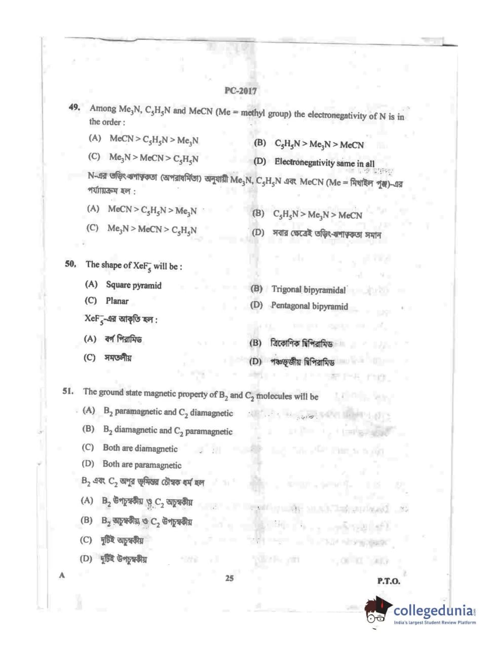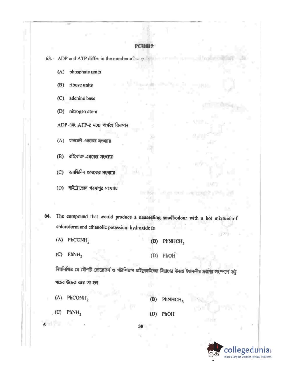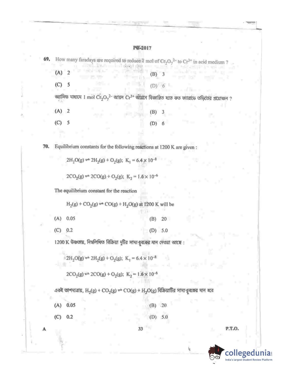 WBJEE 2017 Physics & Chemistry Question Paper with Answer Key PDF for Afternoon Session