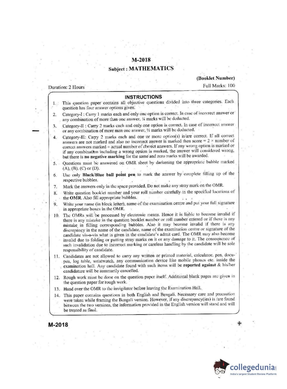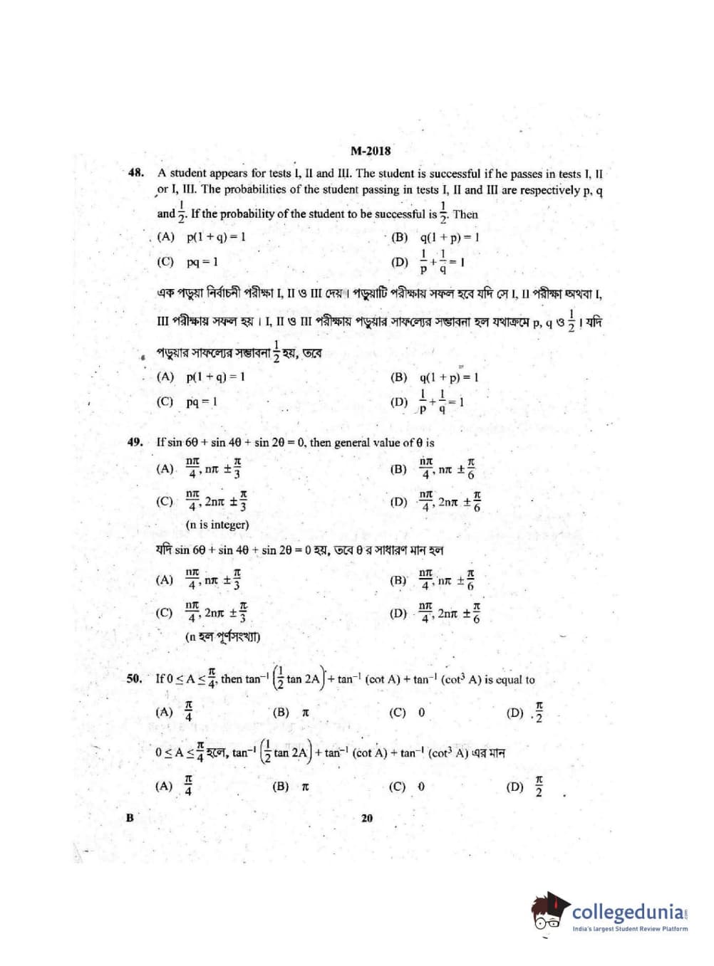 | WBJEE 2018 Mathematics Question Paper PDF | WBJEE 2018 Mathematics Answer Key PDF |
