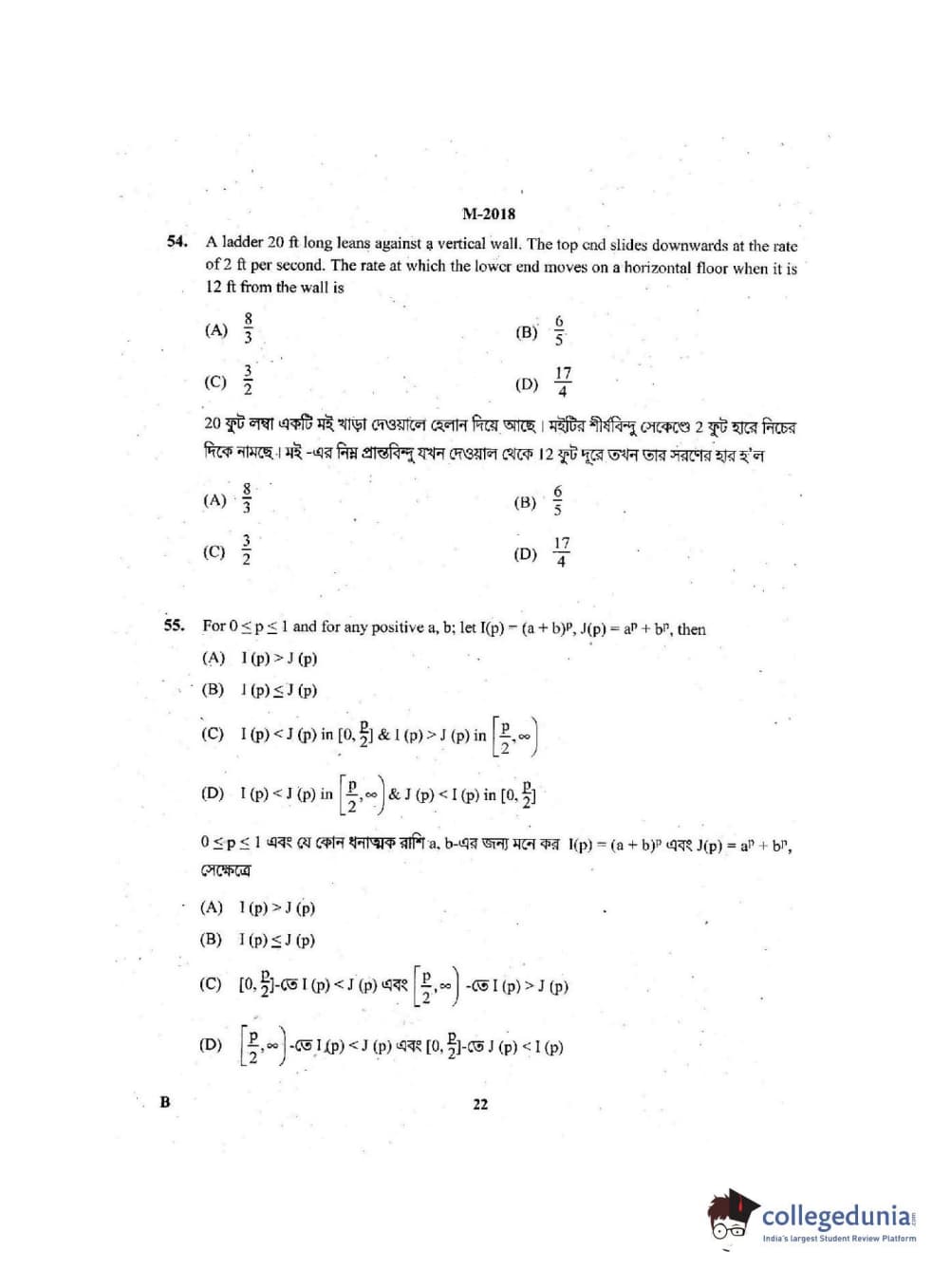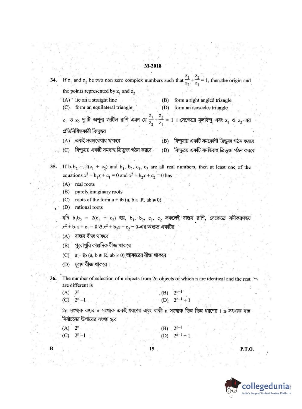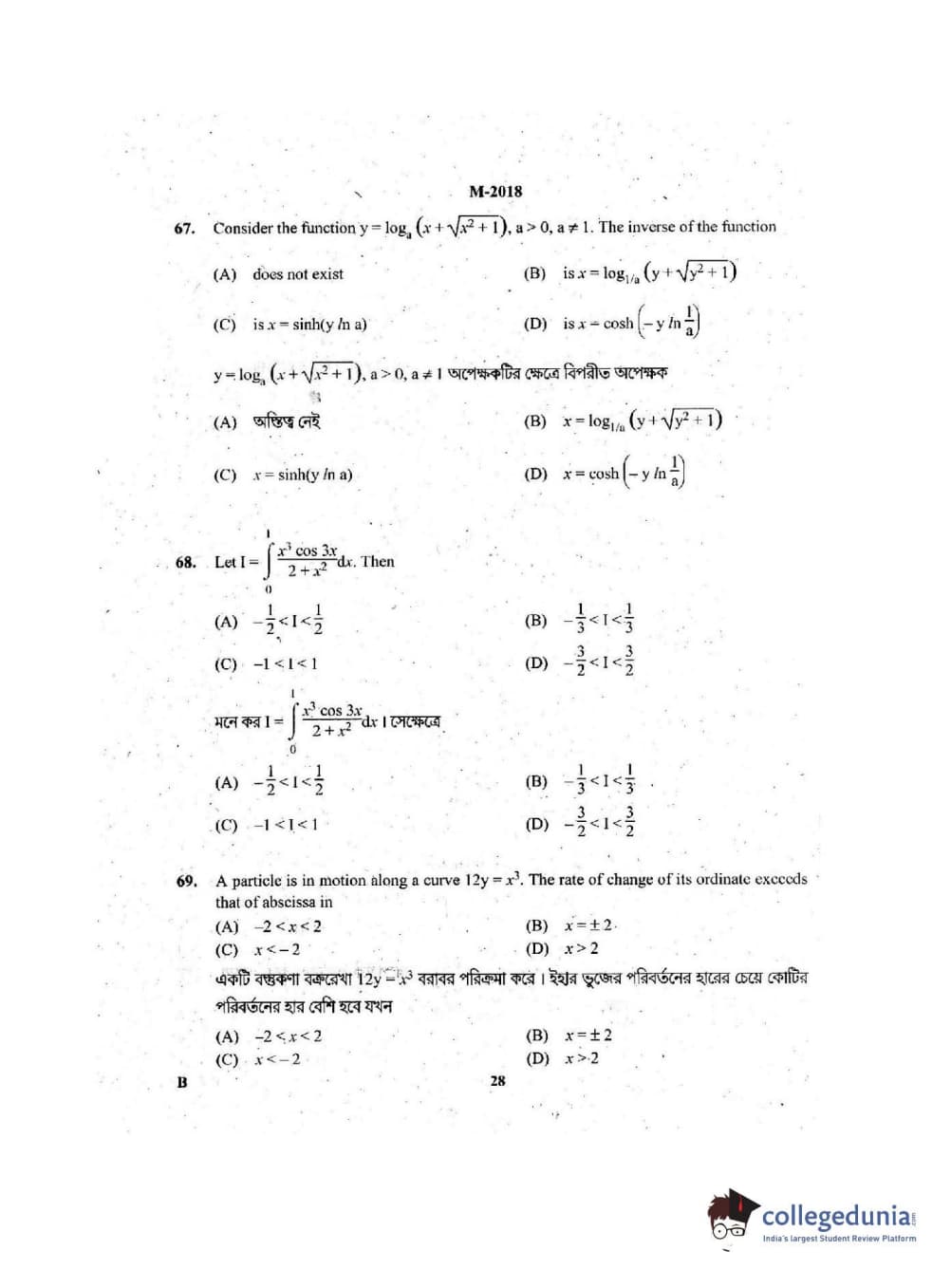 Collegedunia has provided WBJEE Previous Year Question paper pdf with answer key in the links given below: