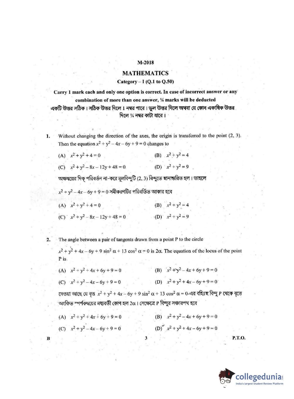 | WBJEE 2019 Question Paper | WBJEE 2018 Question Paper | WBJEE 2017 Question Paper |