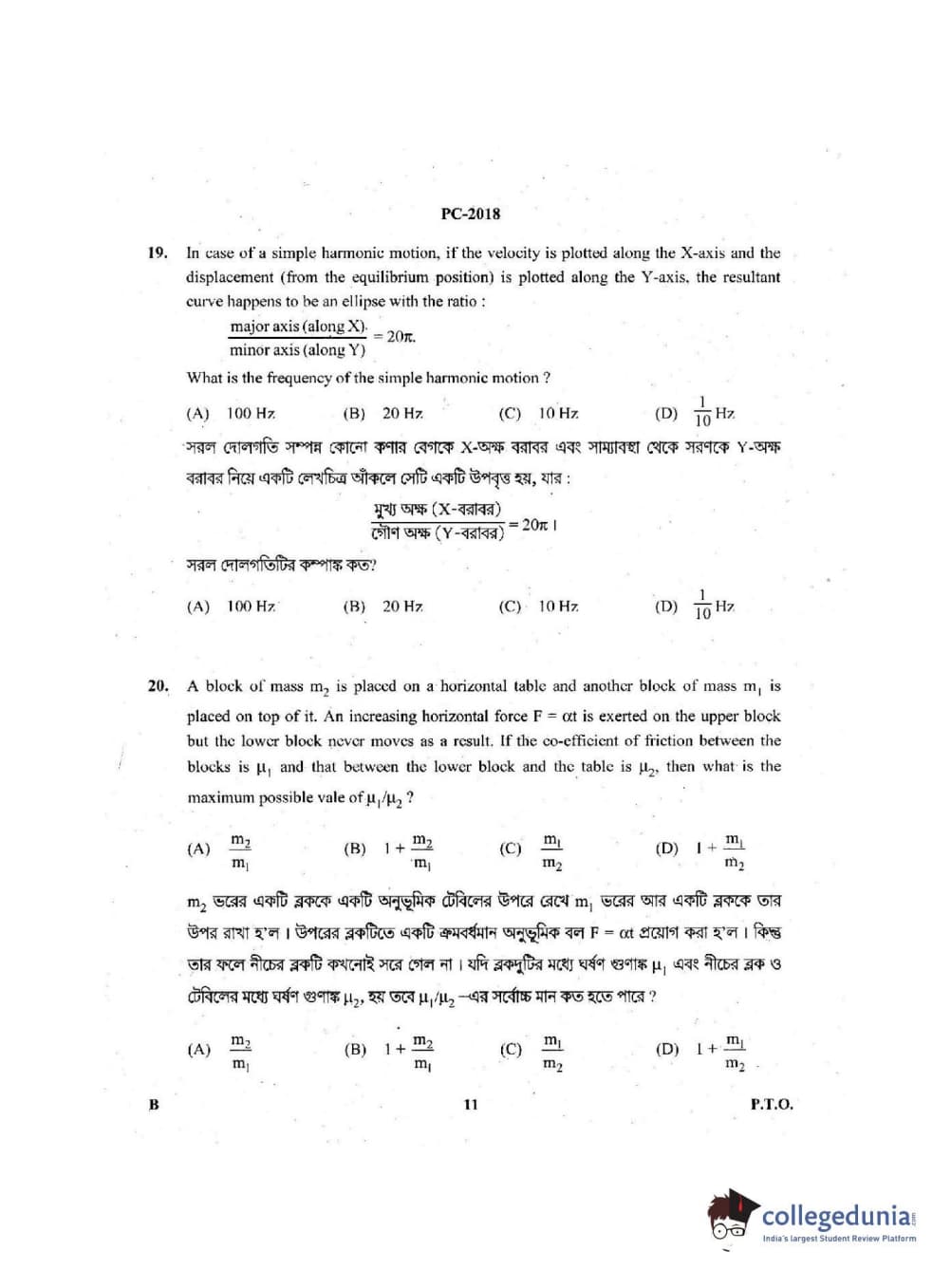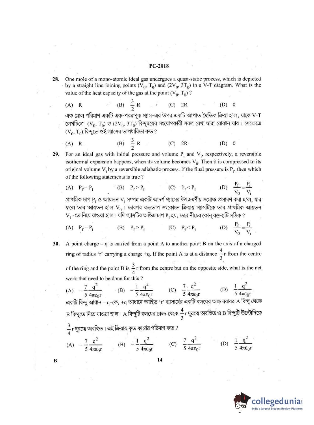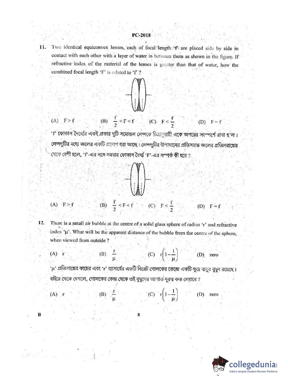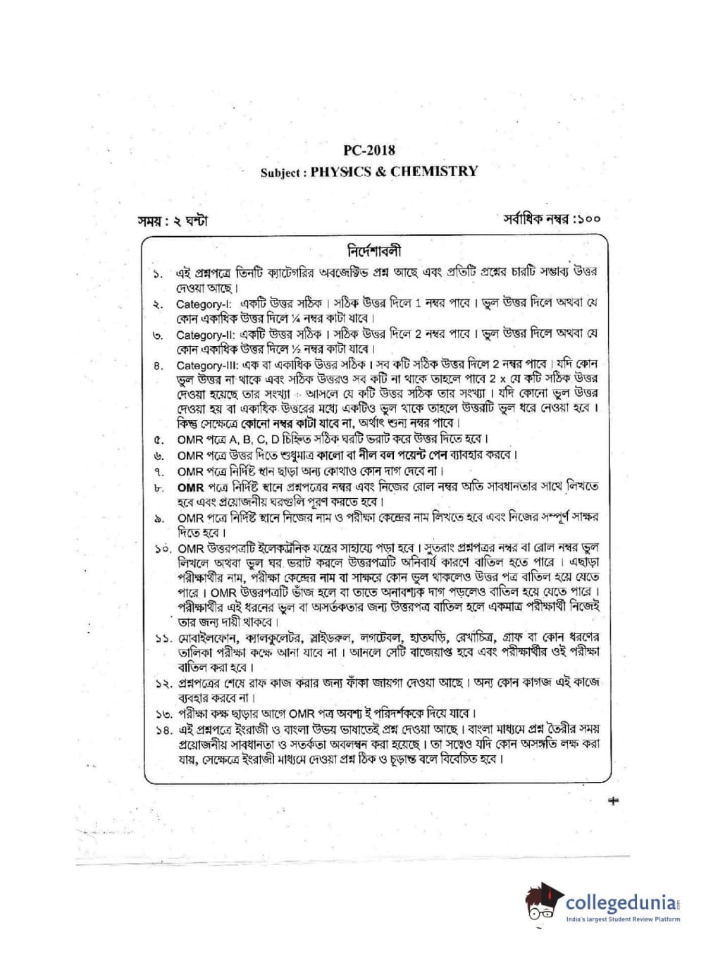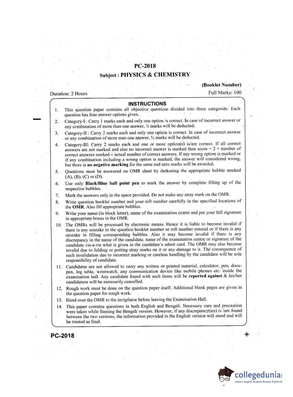 WBJEE 2018 Physics & Chemistry Question Paper with Answer Key PDF for Afternoon Session