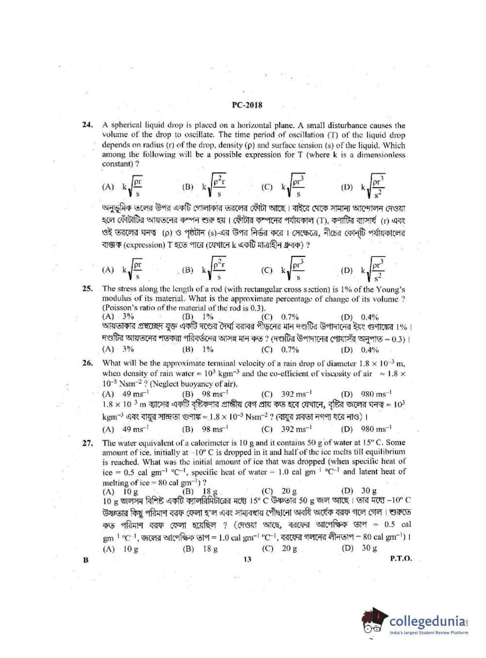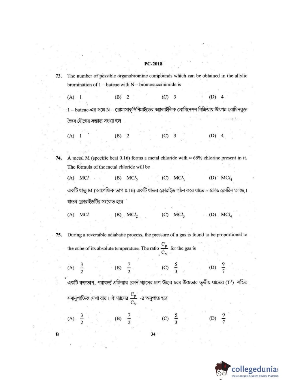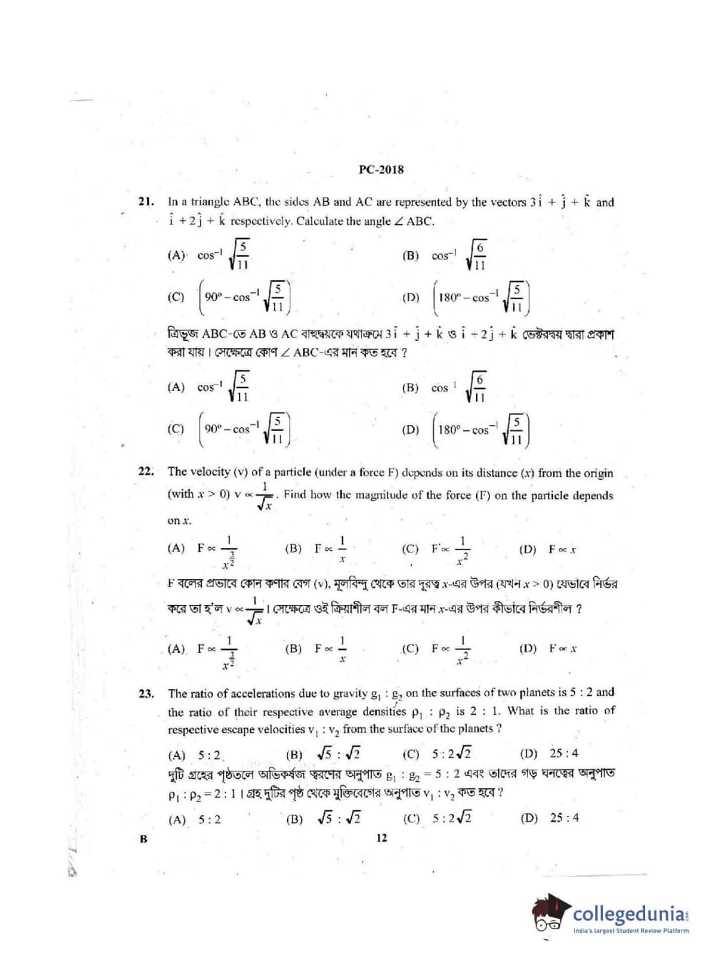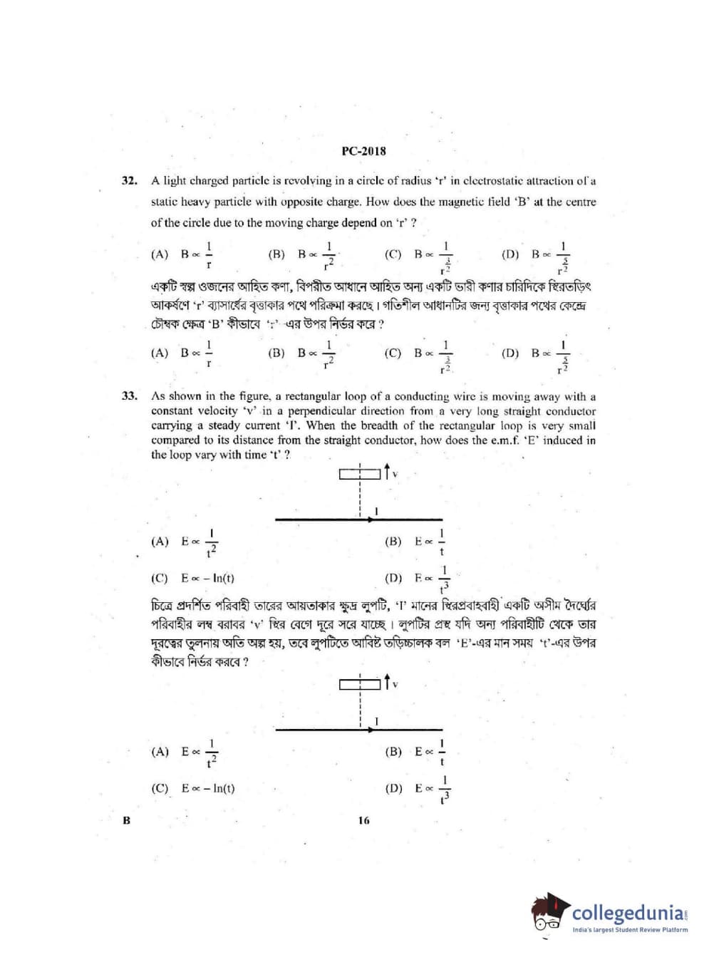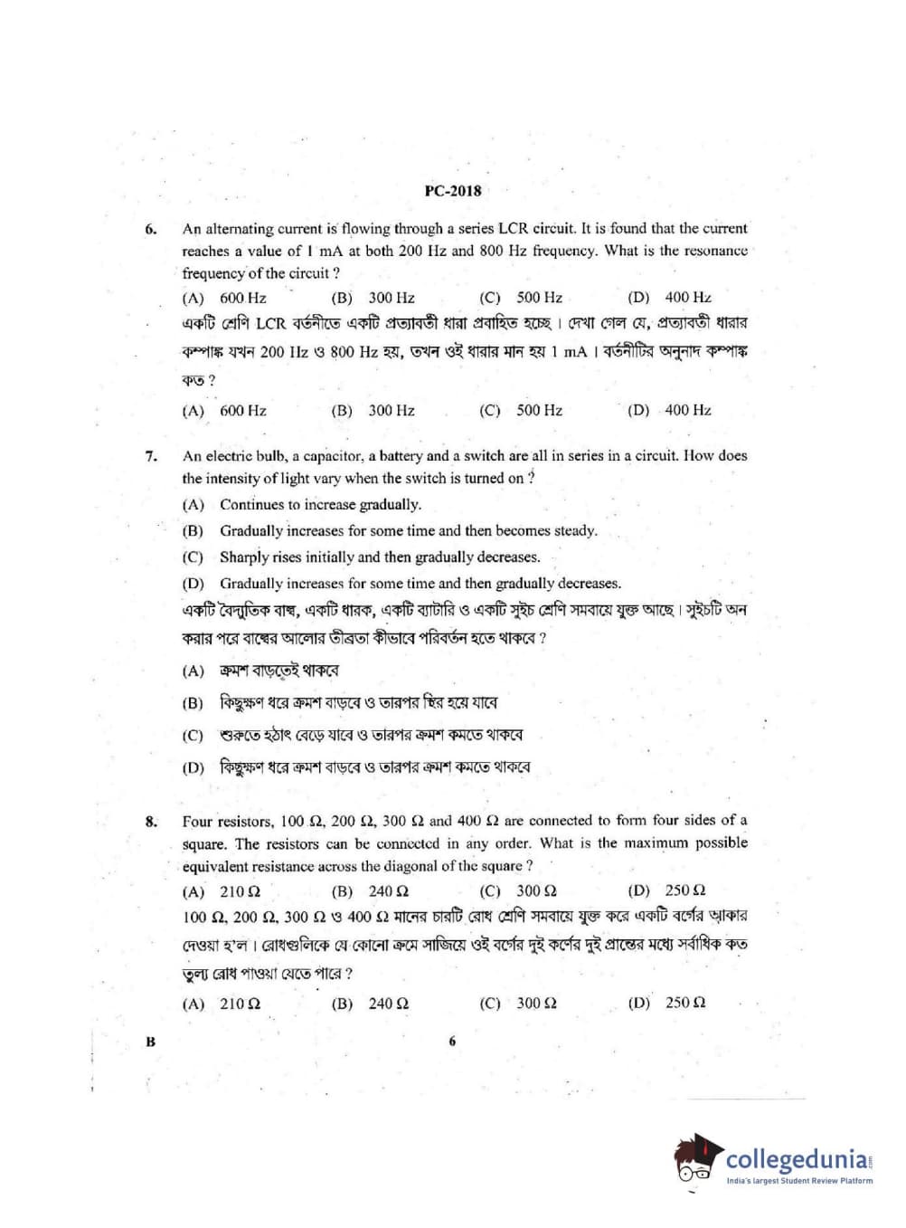 WBJEE 2018 Physics & Chemistry Question Paper with Answer Key PDF for Afternoon Session