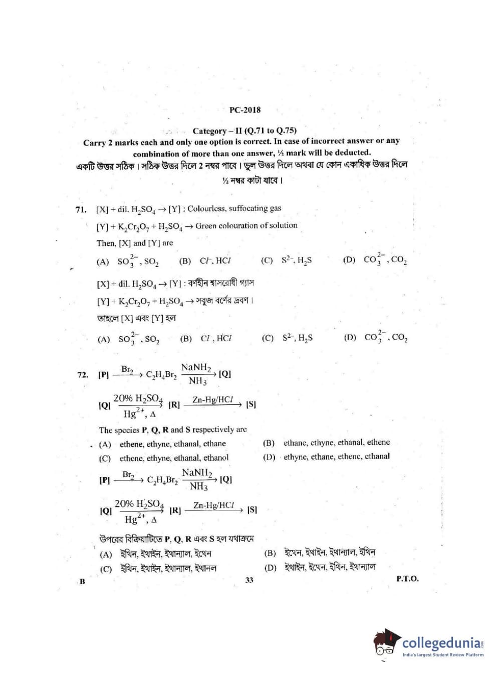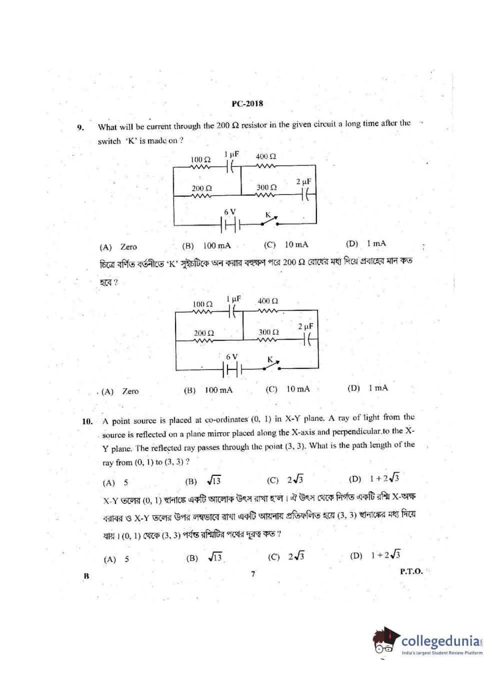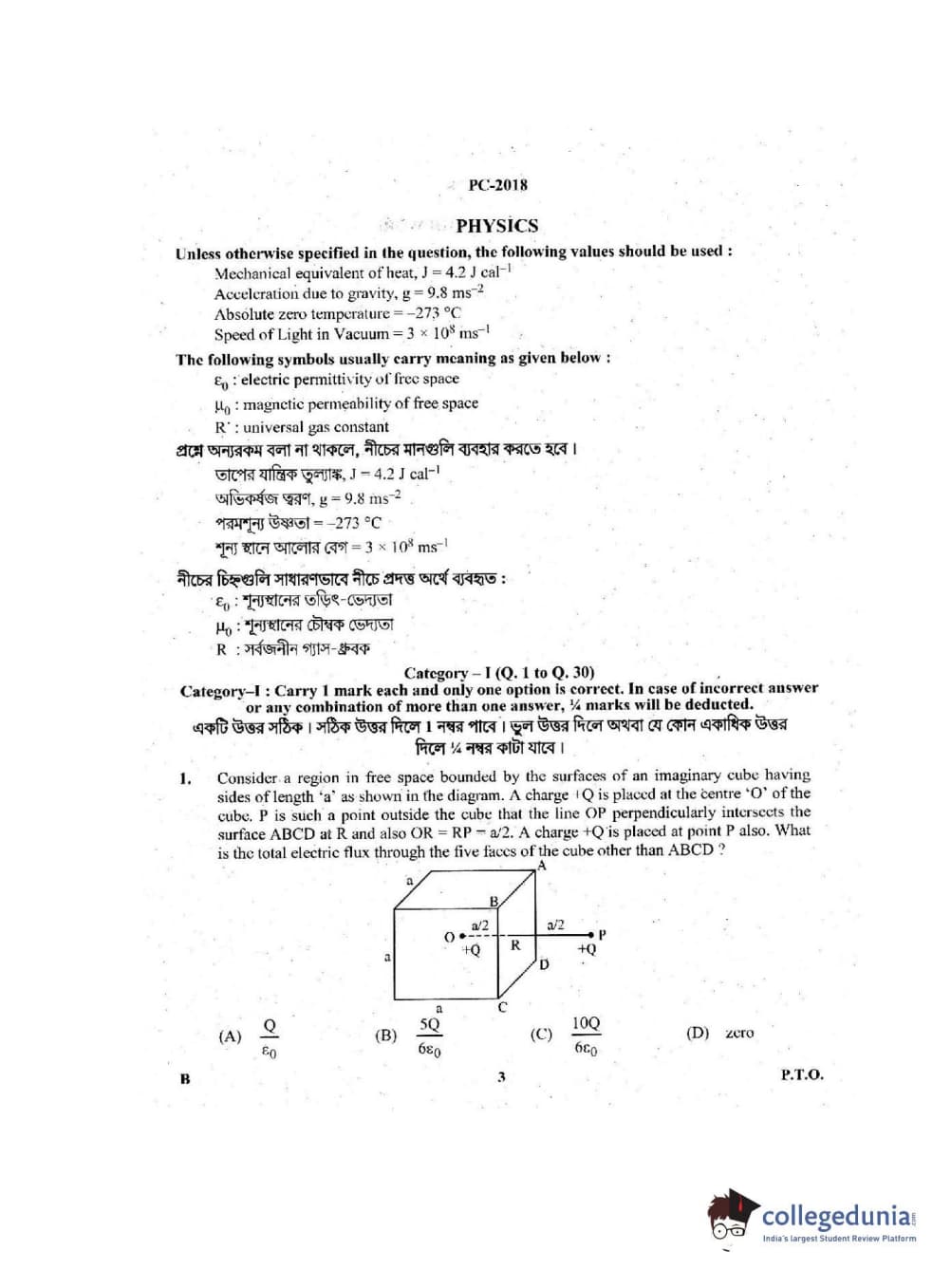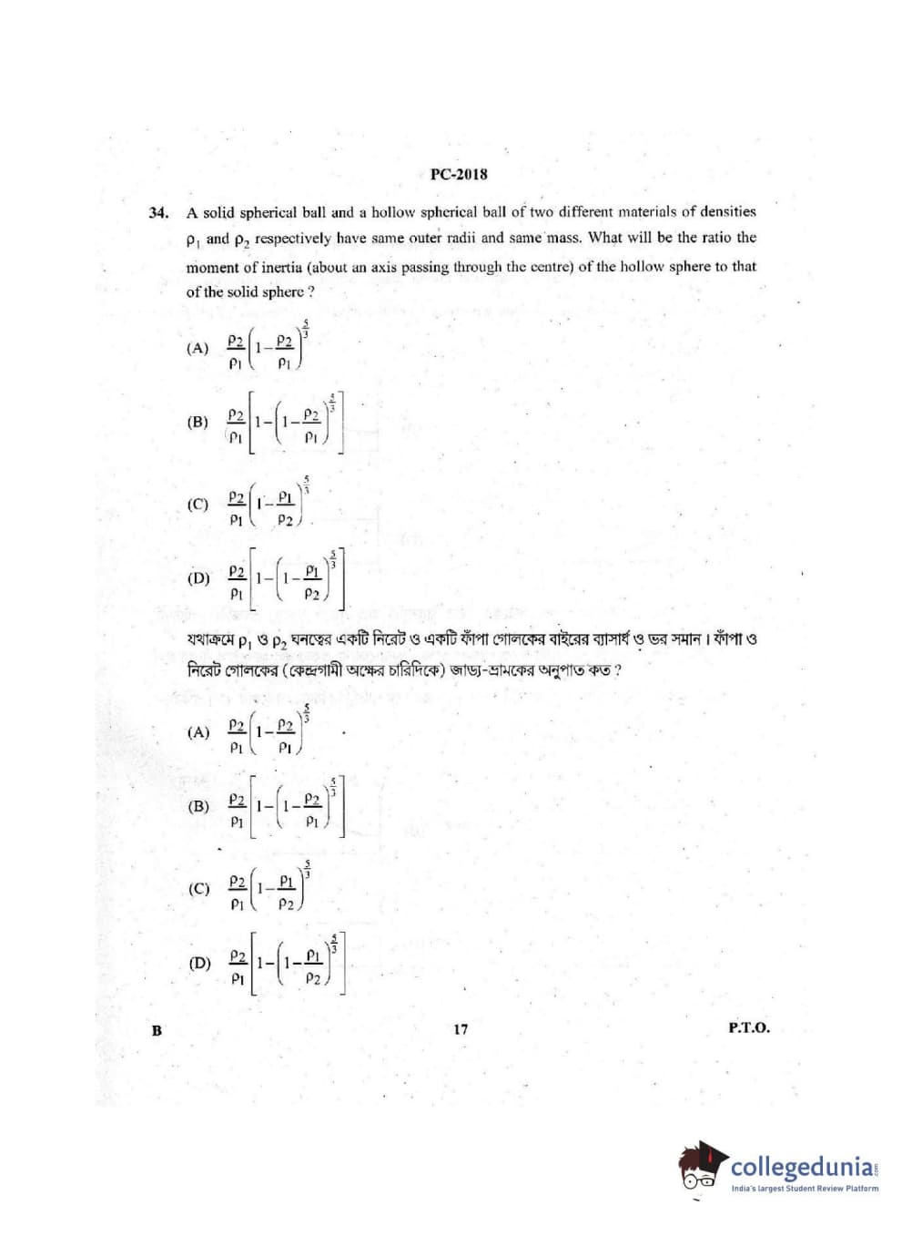 WBJEE 2018 Physics & Chemistry Question Paper with Answer Key PDF for Afternoon Session