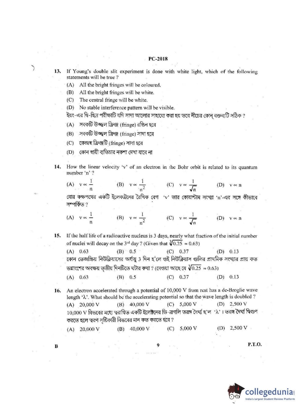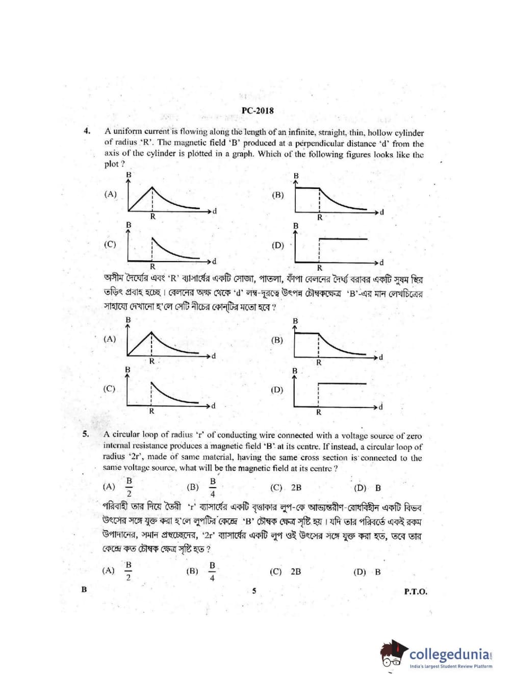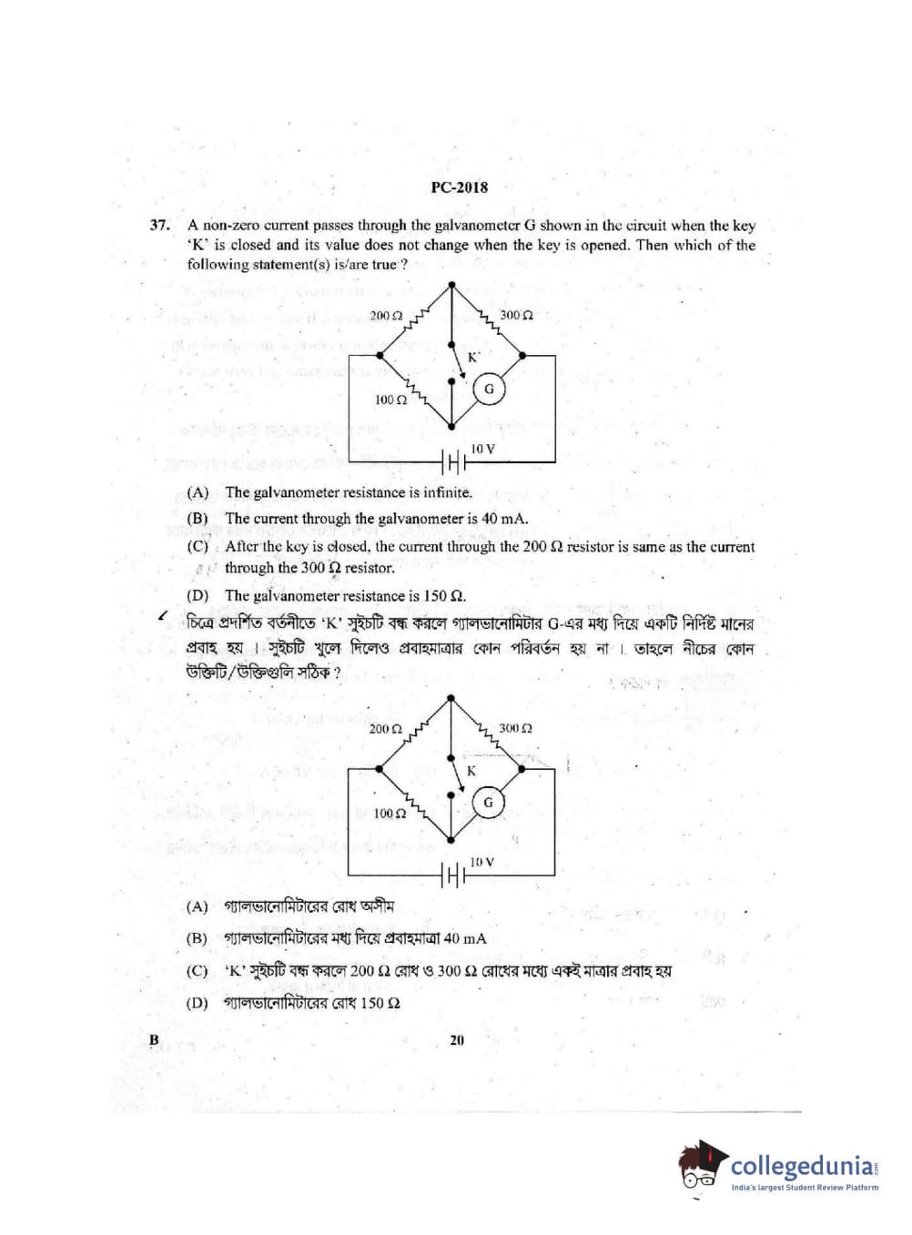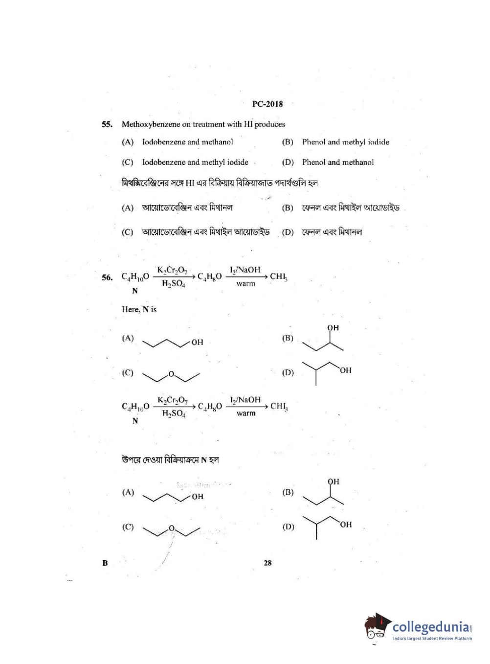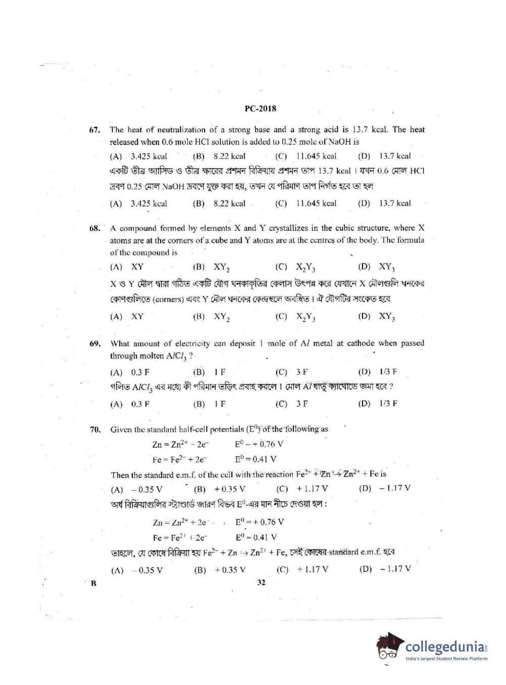 WBJEE 2018 Physics & Chemistry Question Paper with Answer Key PDF for Afternoon Session