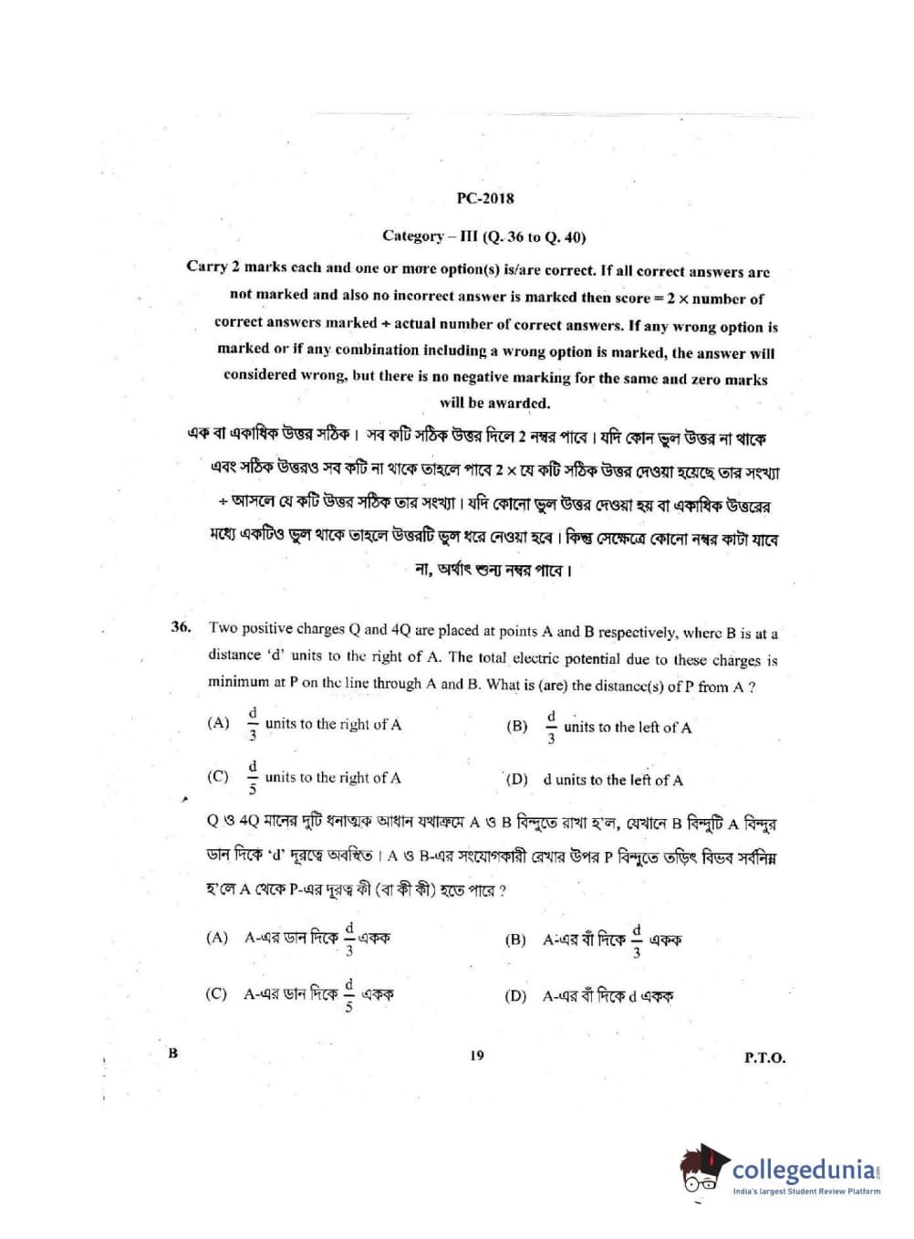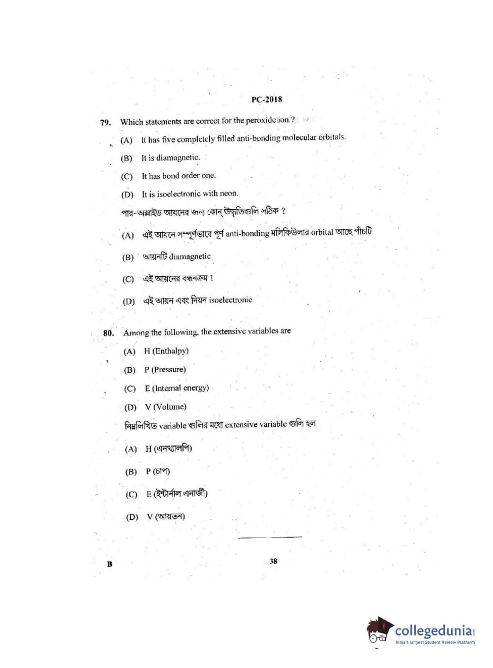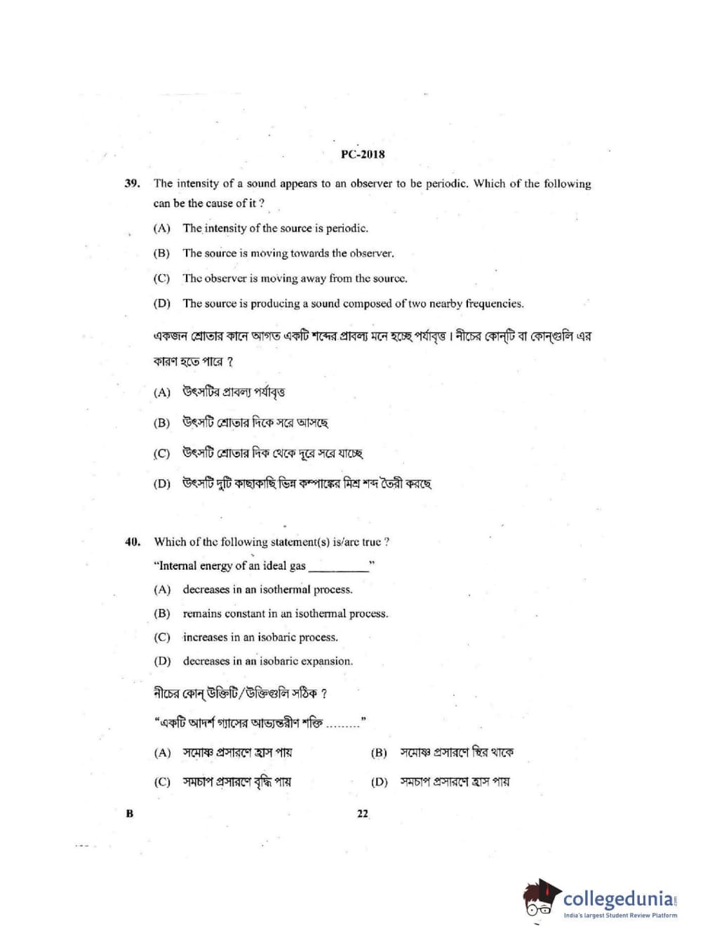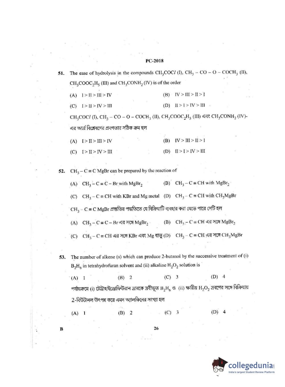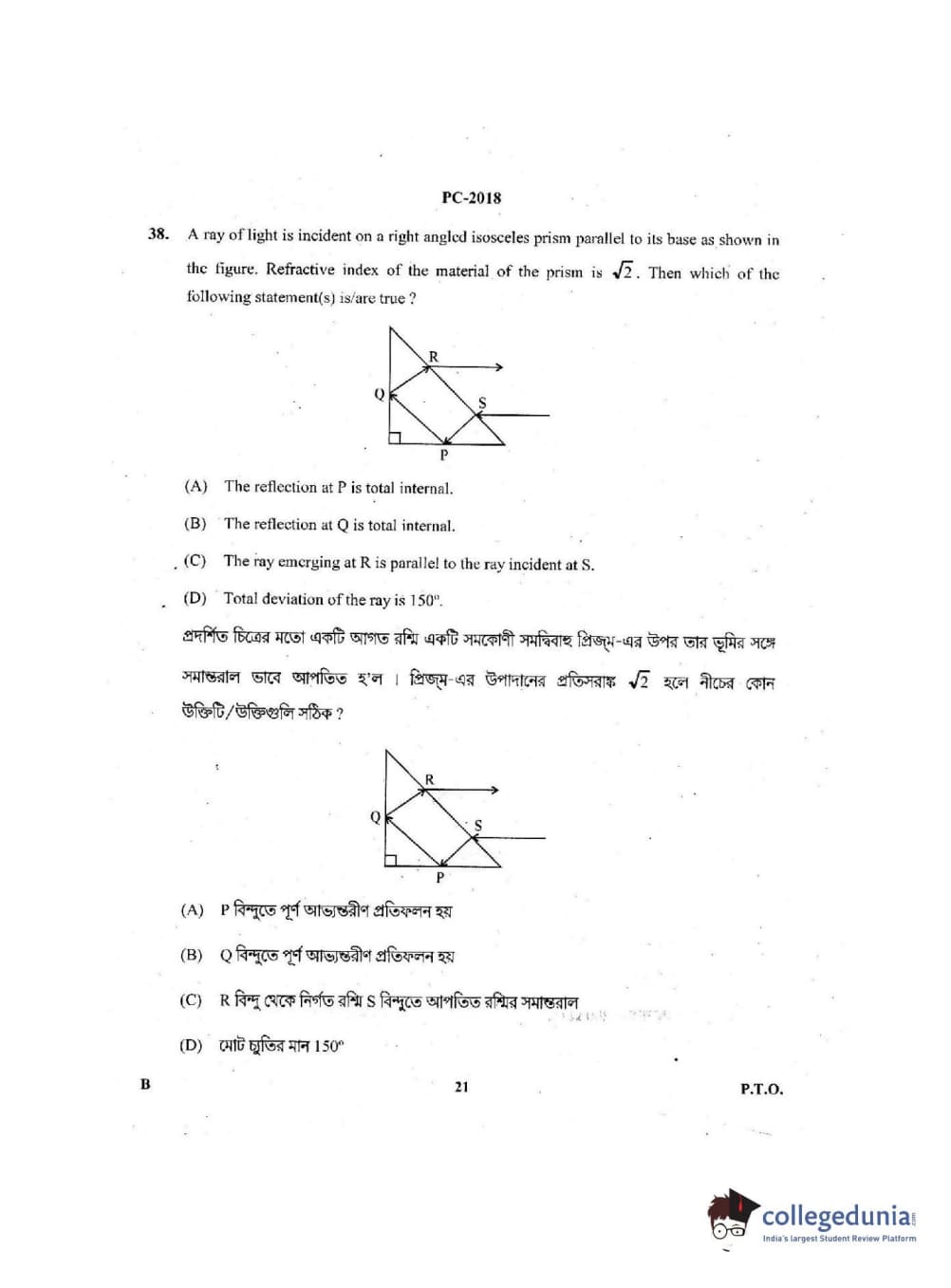 WBJEE 2018 Physics & Chemistry Question Paper with Answer Key PDF for Afternoon Session