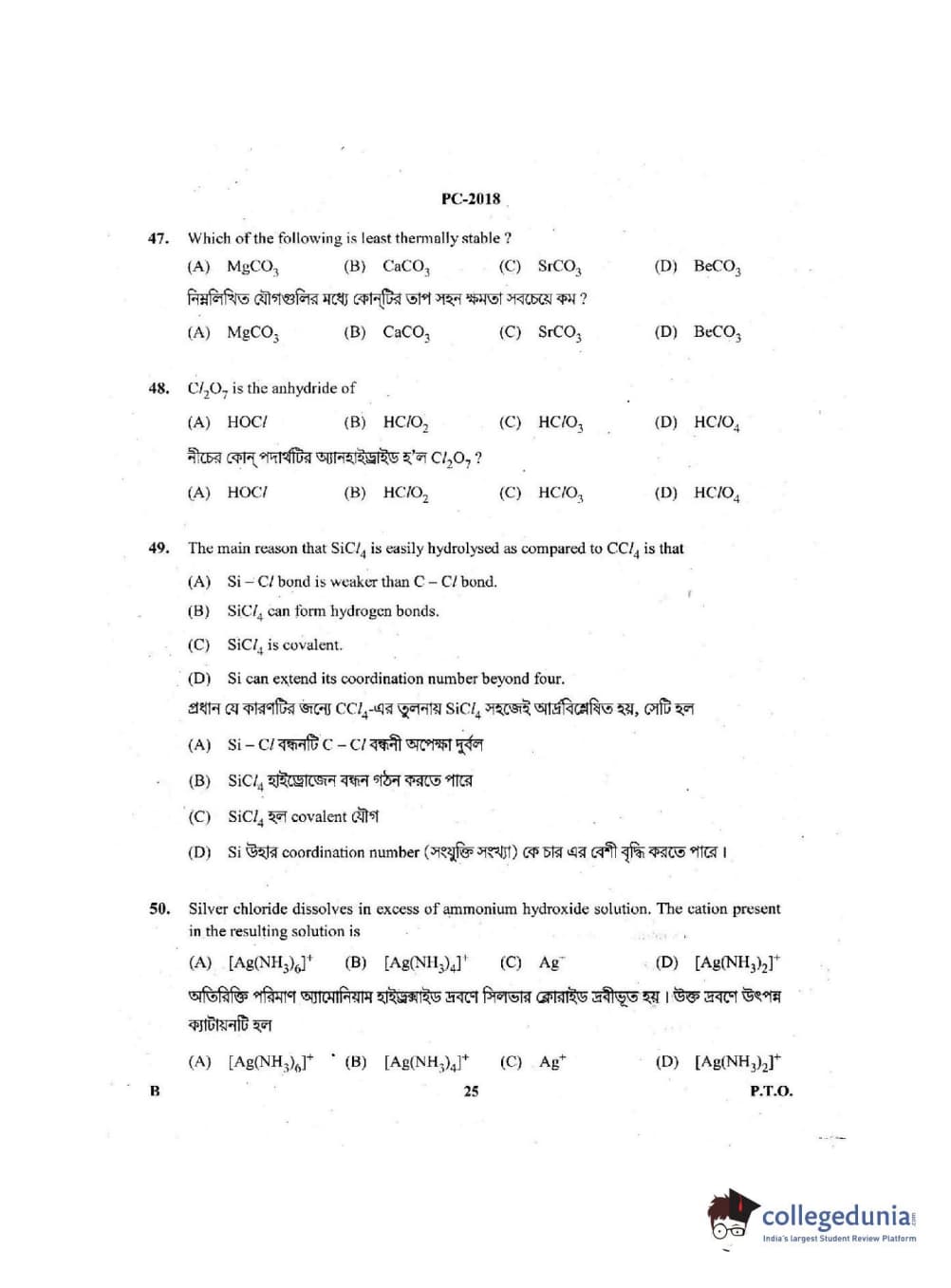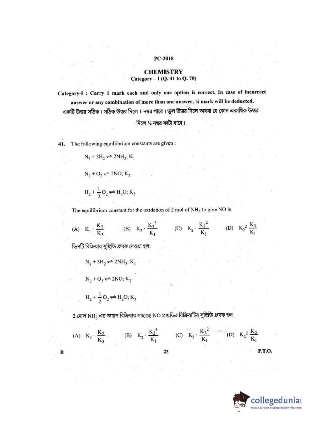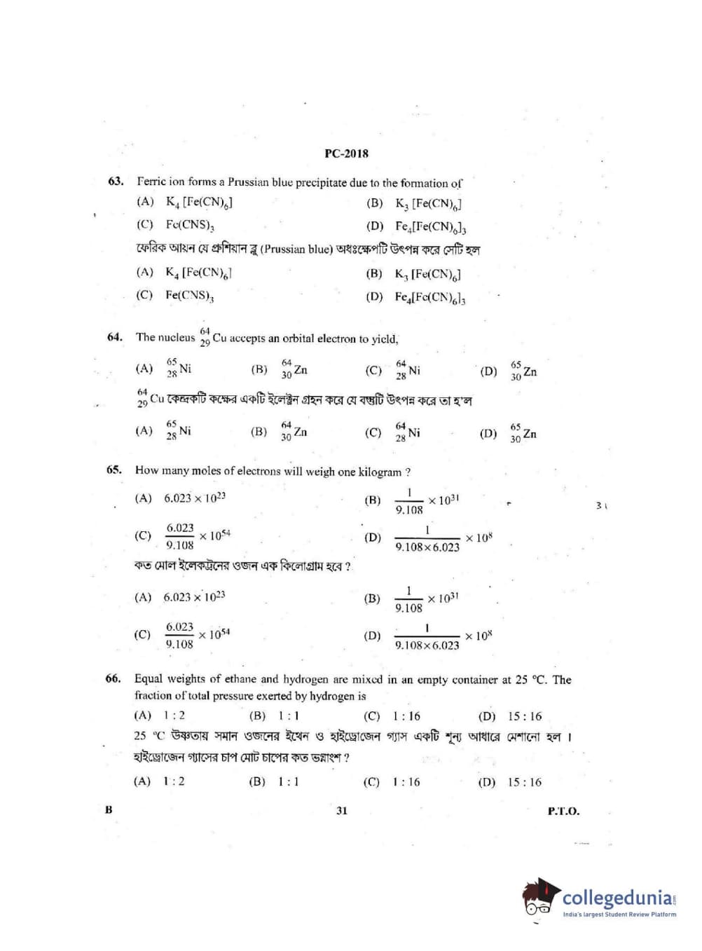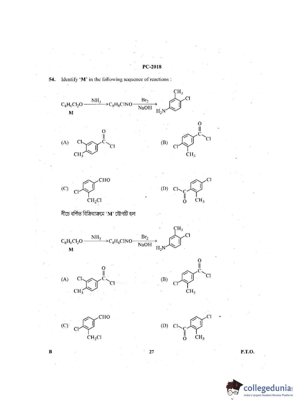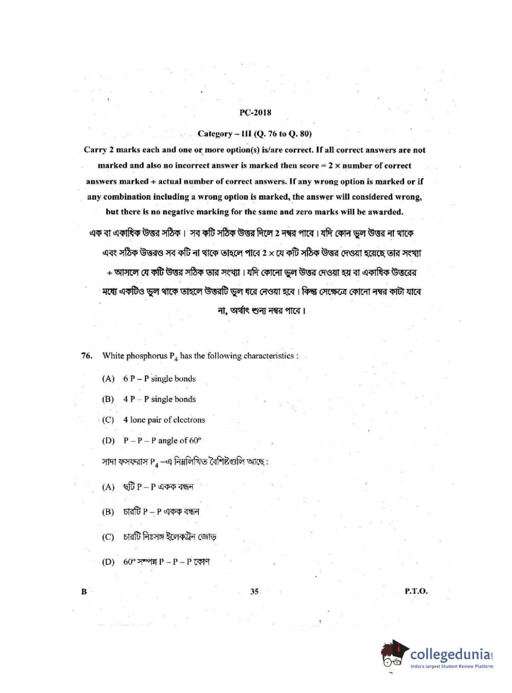 WBJEE 2018 Physics & Chemistry Question Paper with Answer Key PDF for Afternoon Session