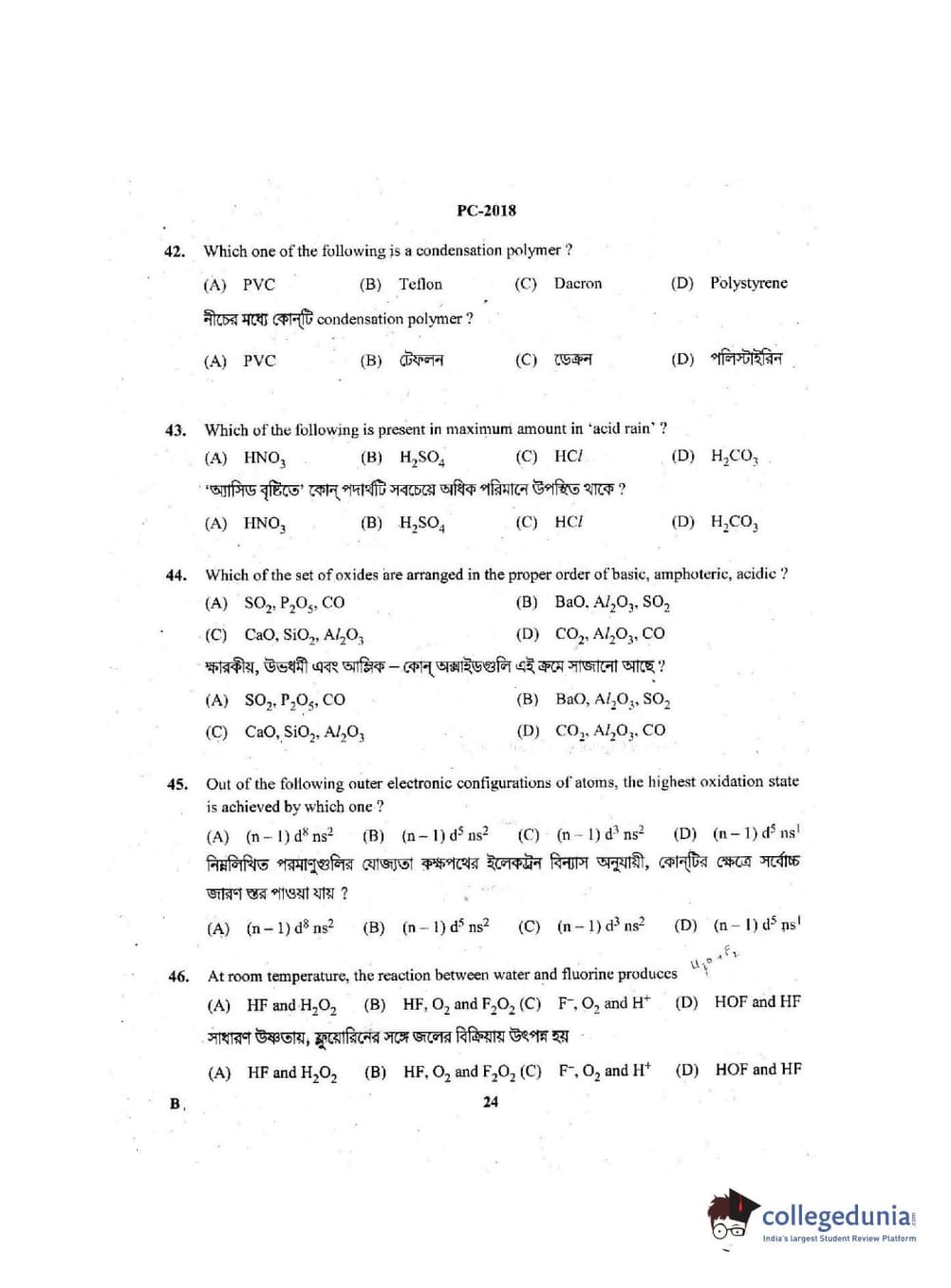 Collegedunia has provided WBJEE Previous Year Question paper pdf with answer key in the links given below: