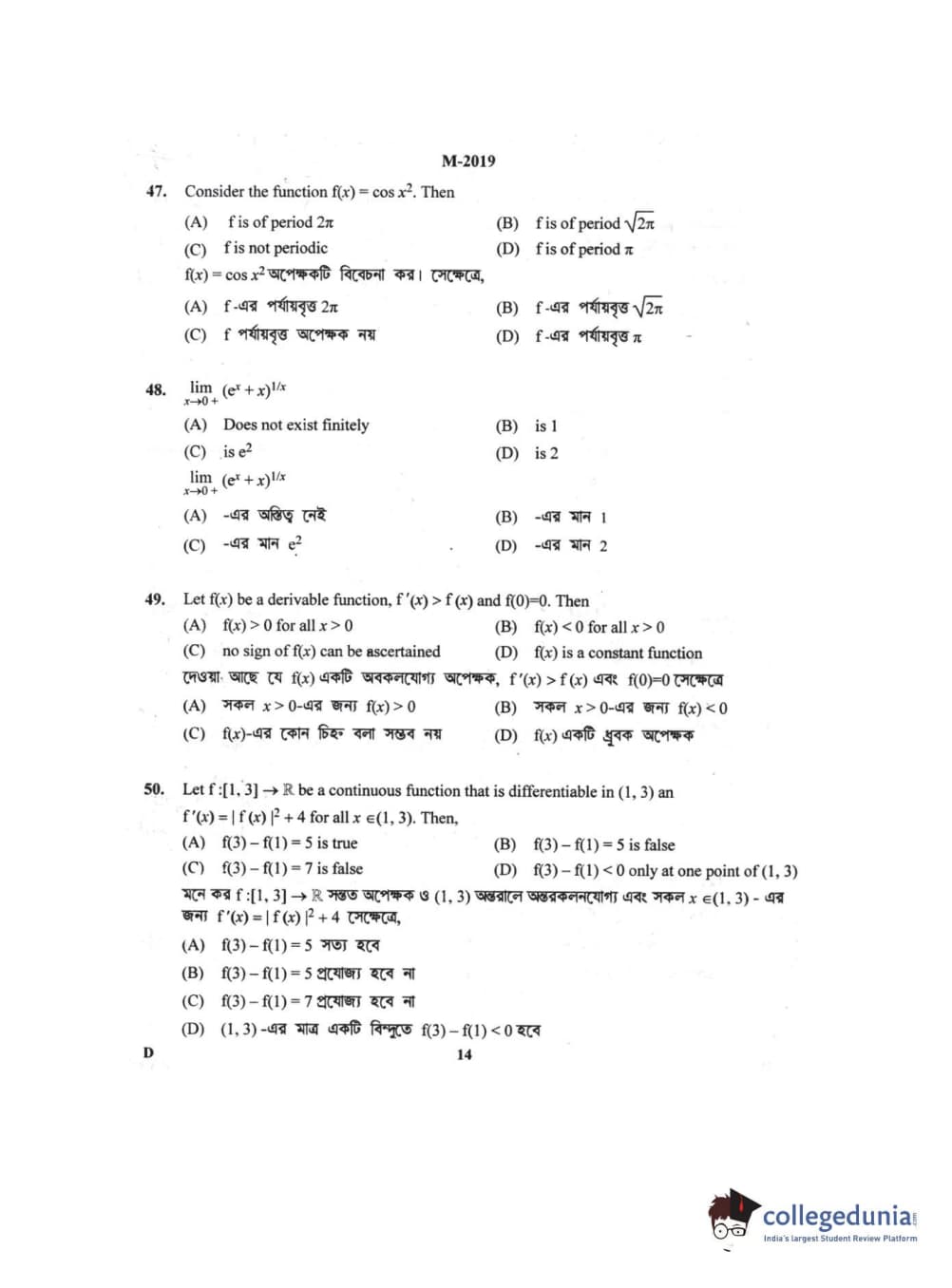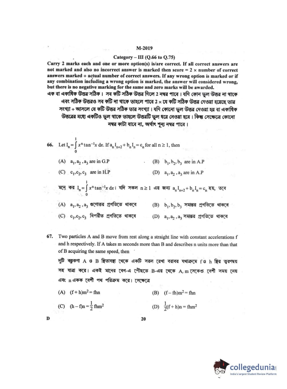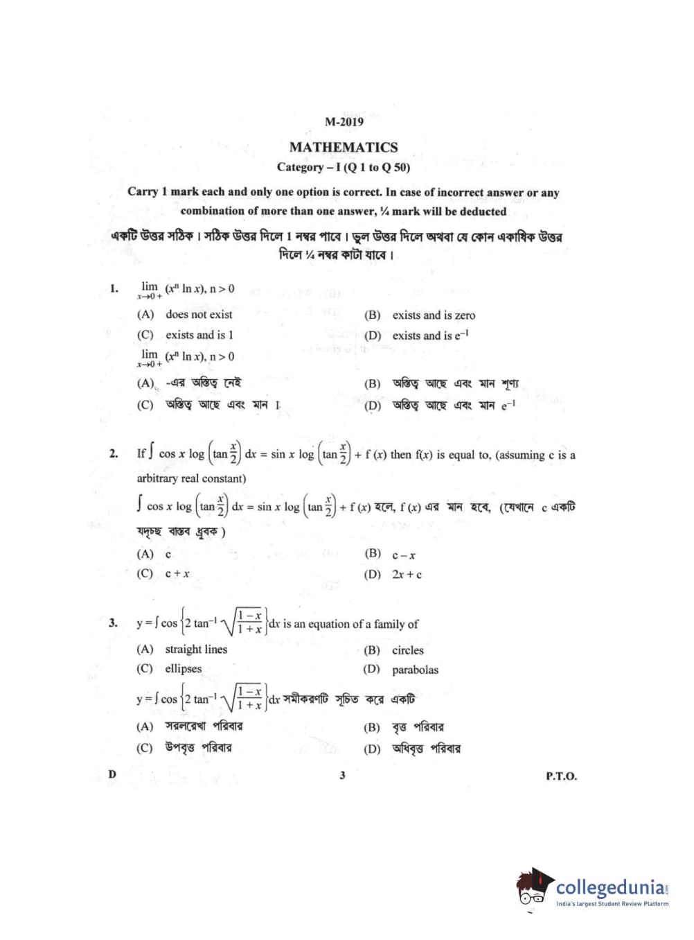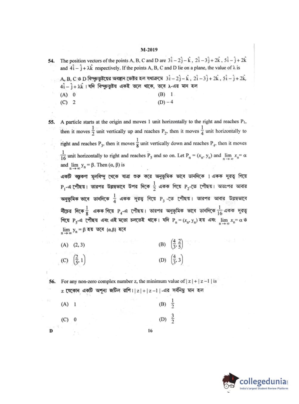 | WBJEE 2019 Question Paper | WBJEE 2018 Question Paper | WBJEE 2017 Question Paper |