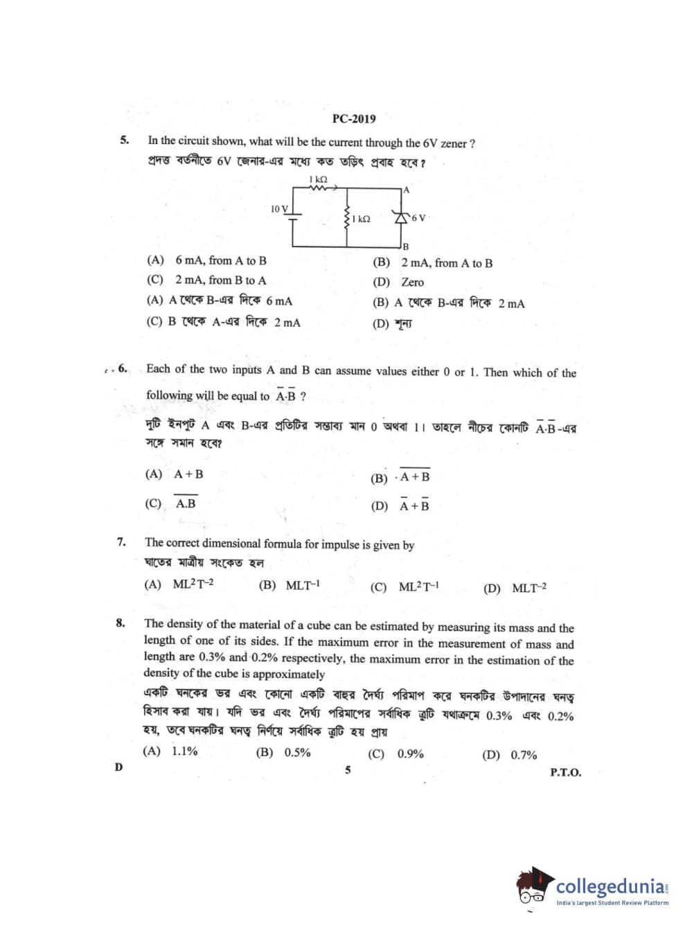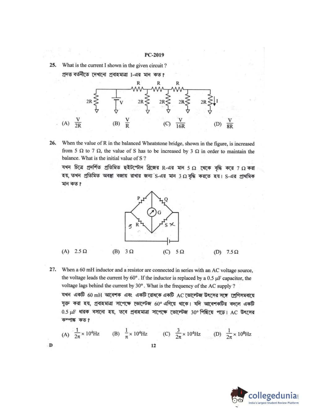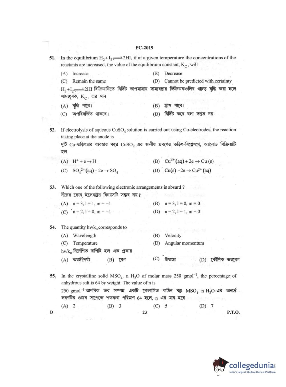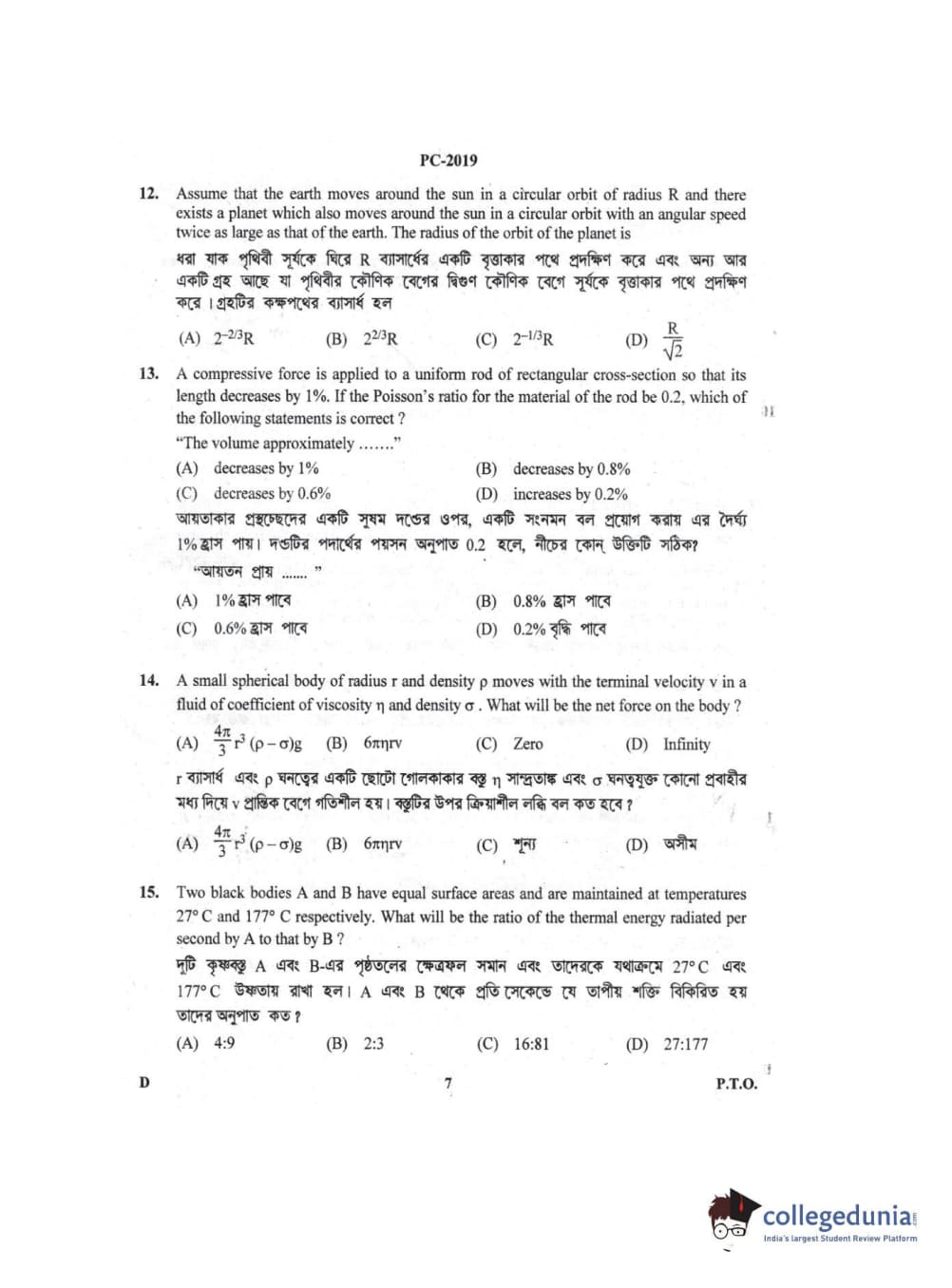 | WBJEE 2019 Question Paper | WBJEE 2018 Question Paper | WBJEE 2017 Question Paper |