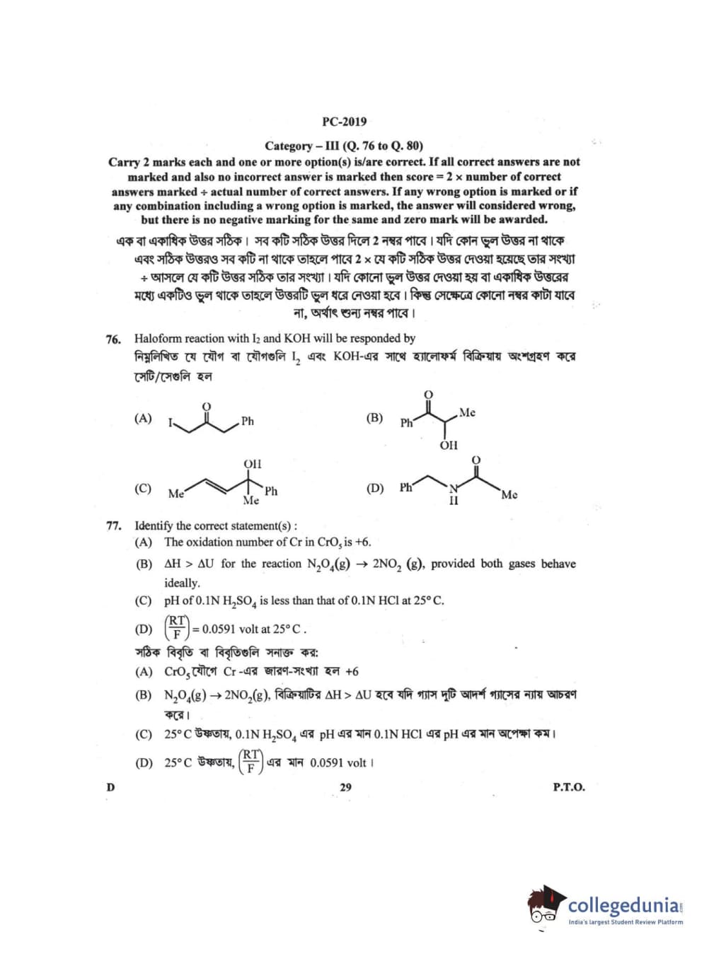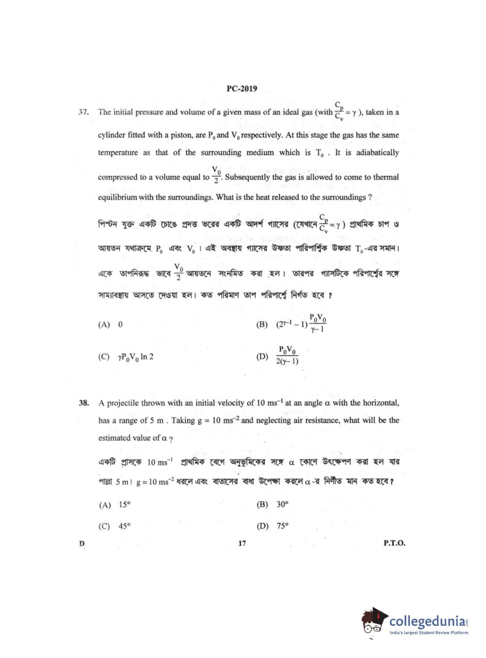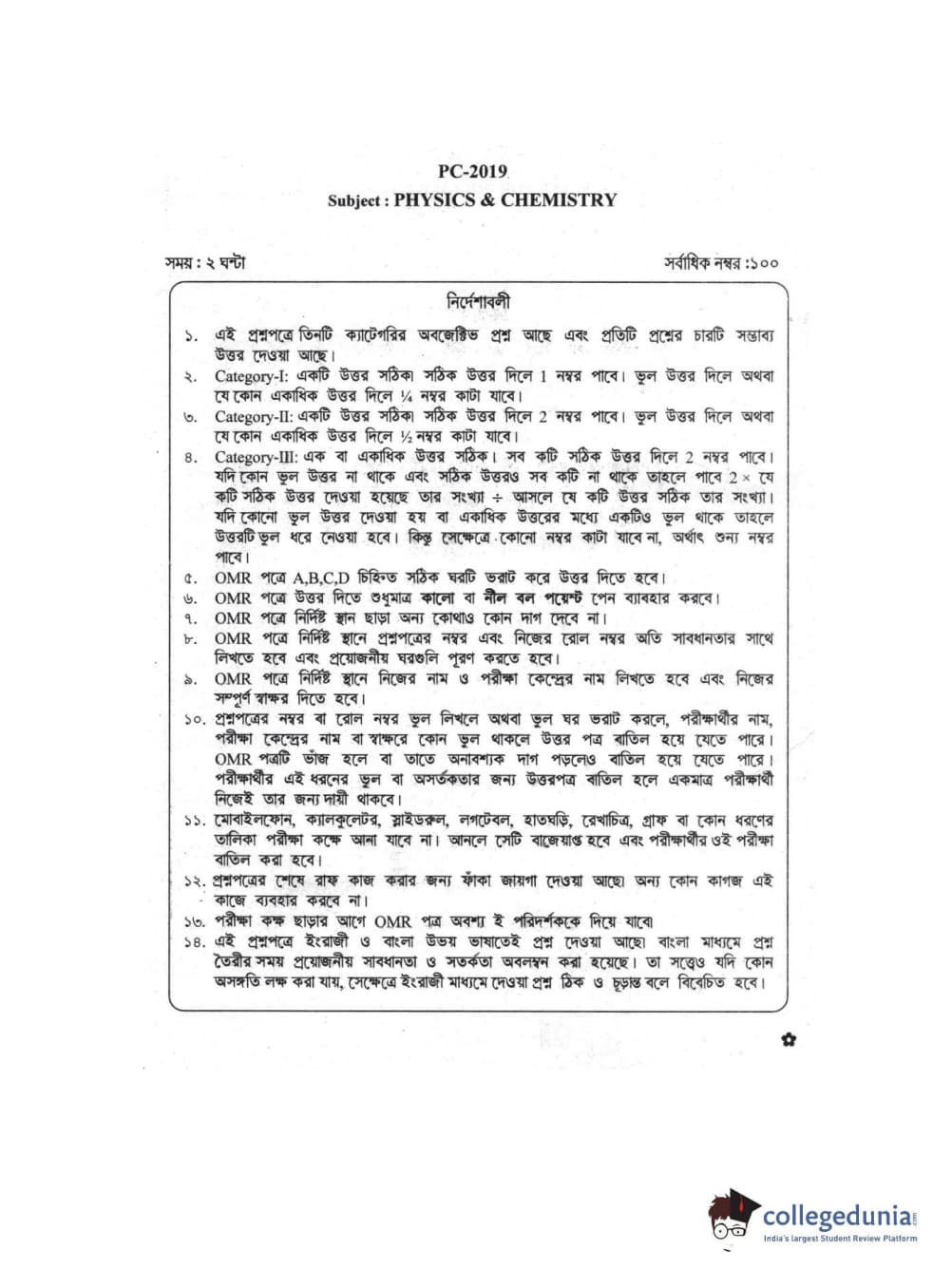 WBJEE 2019 Physics & Chemistry Question Paper with Answer Key PDF for Afternoon Session