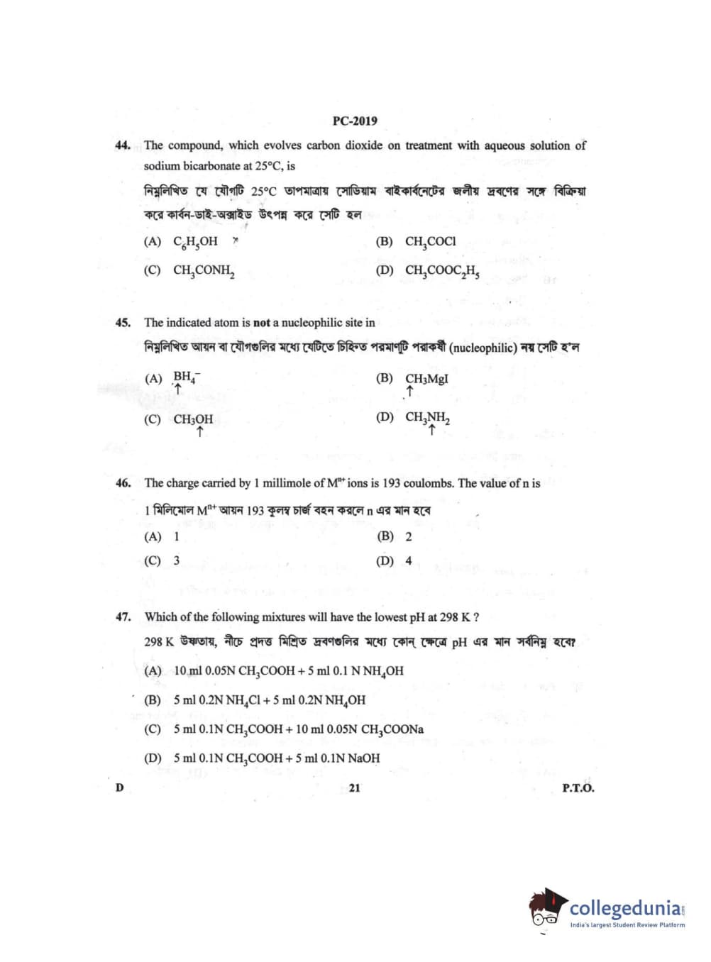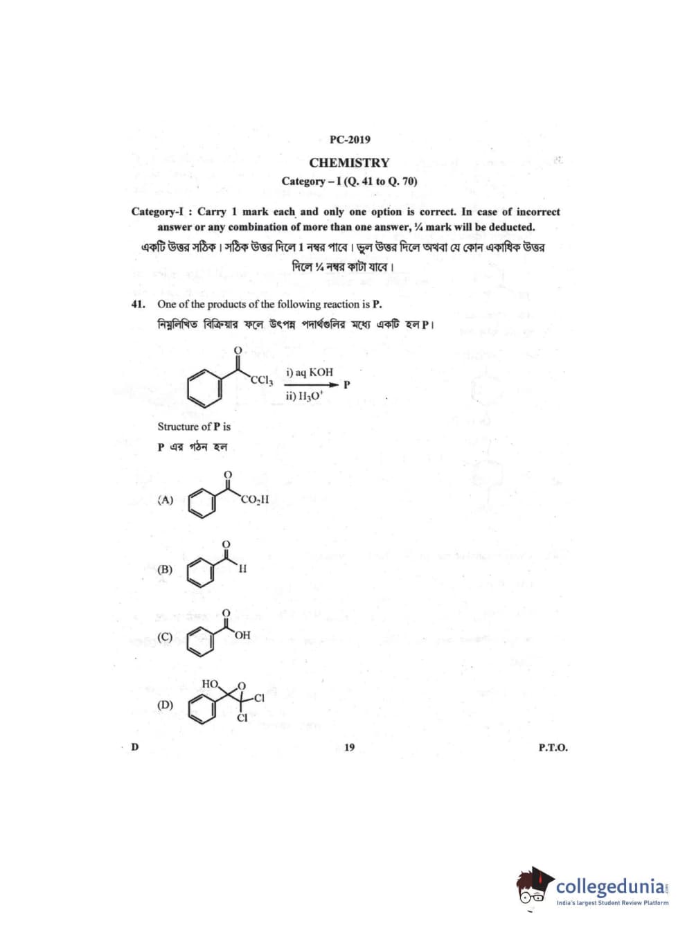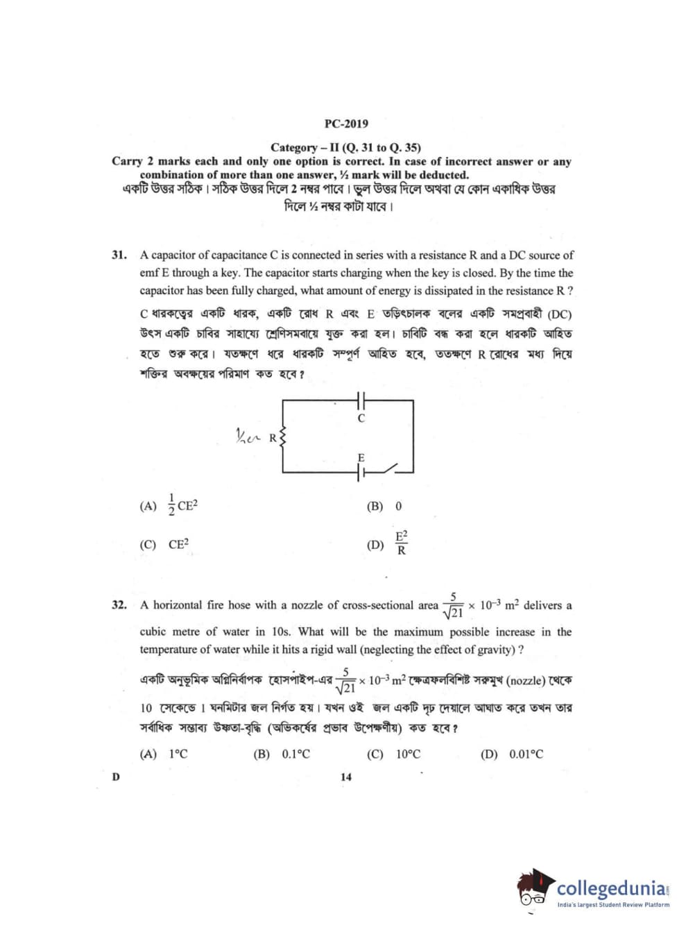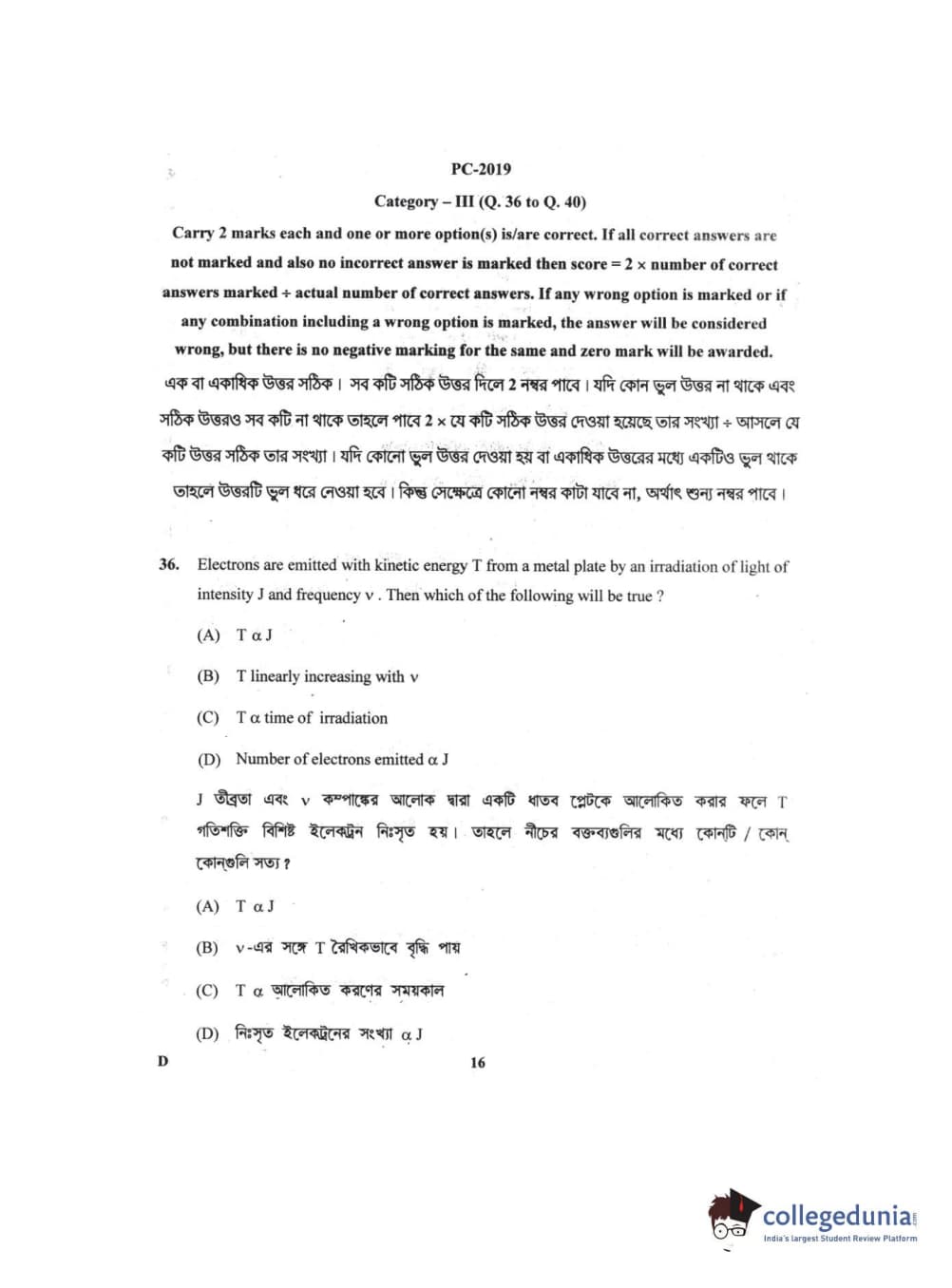 WBJEE 2019 Physics & Chemistry Question Paper with Answer Key PDF for Afternoon Session